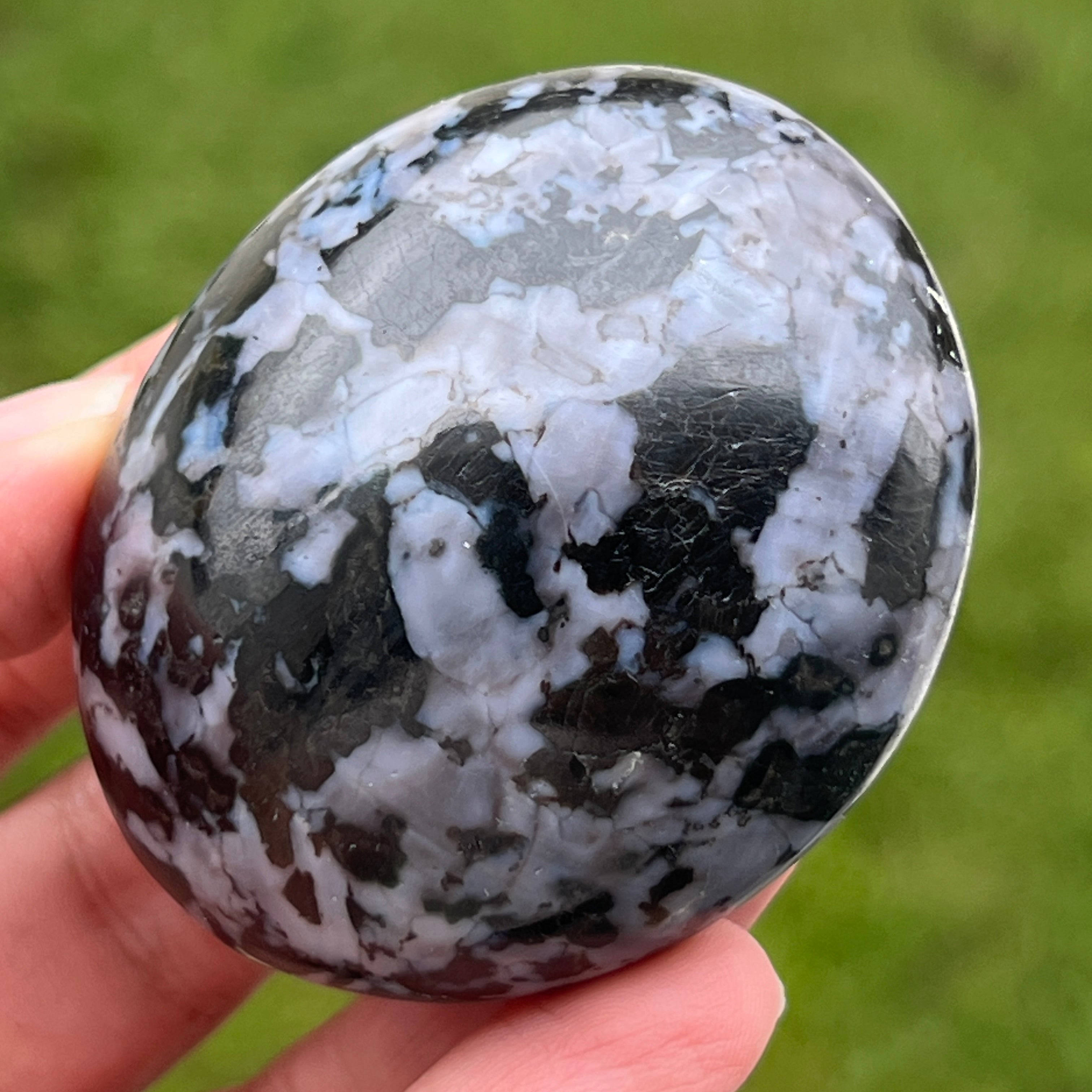 La merlinite est une pierre semi-précieuse rare et fascinante, reconnue pour sa combinaison de couleurs contrastées, noir et blanc, lui conférant un aspect unique. Elle est considérée comme une variété d'opale dendritique ou un mélange de quartz et d'autres minéraux, et sa structure complexe la rend prisée tant pour sa beauté que pour ses supposées propriétés énergétiques. La merlinite est connue dans le monde de la cristallothérapie pour ses énergies mystiques et son association avec l'intuition, la clairvoyance et la connaissance spirituelle.