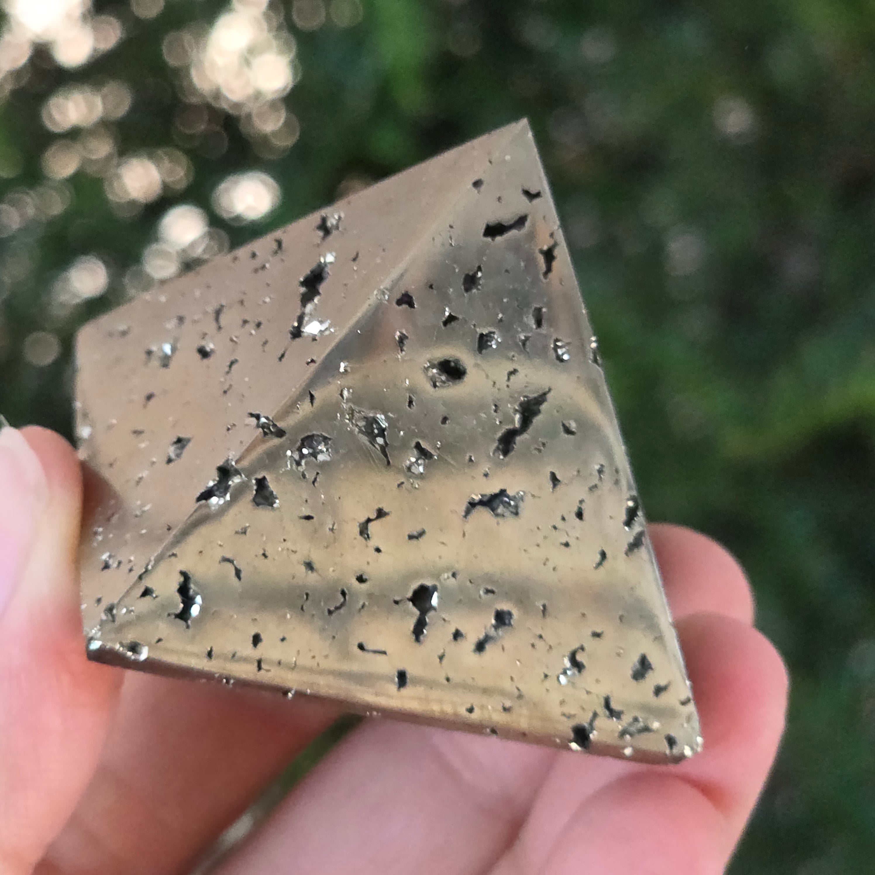 Piramida din pirita peruviană emană putere, abundență și claritate mentală. Fiecare reflex auriu amintește de lumina conștienței și de forța interioară care transformă intențiile în realitate. O piesă spectaculoasă, potrivită atât pentru colecționari, cât și ca obiect decorativ cu energie vibrantă.