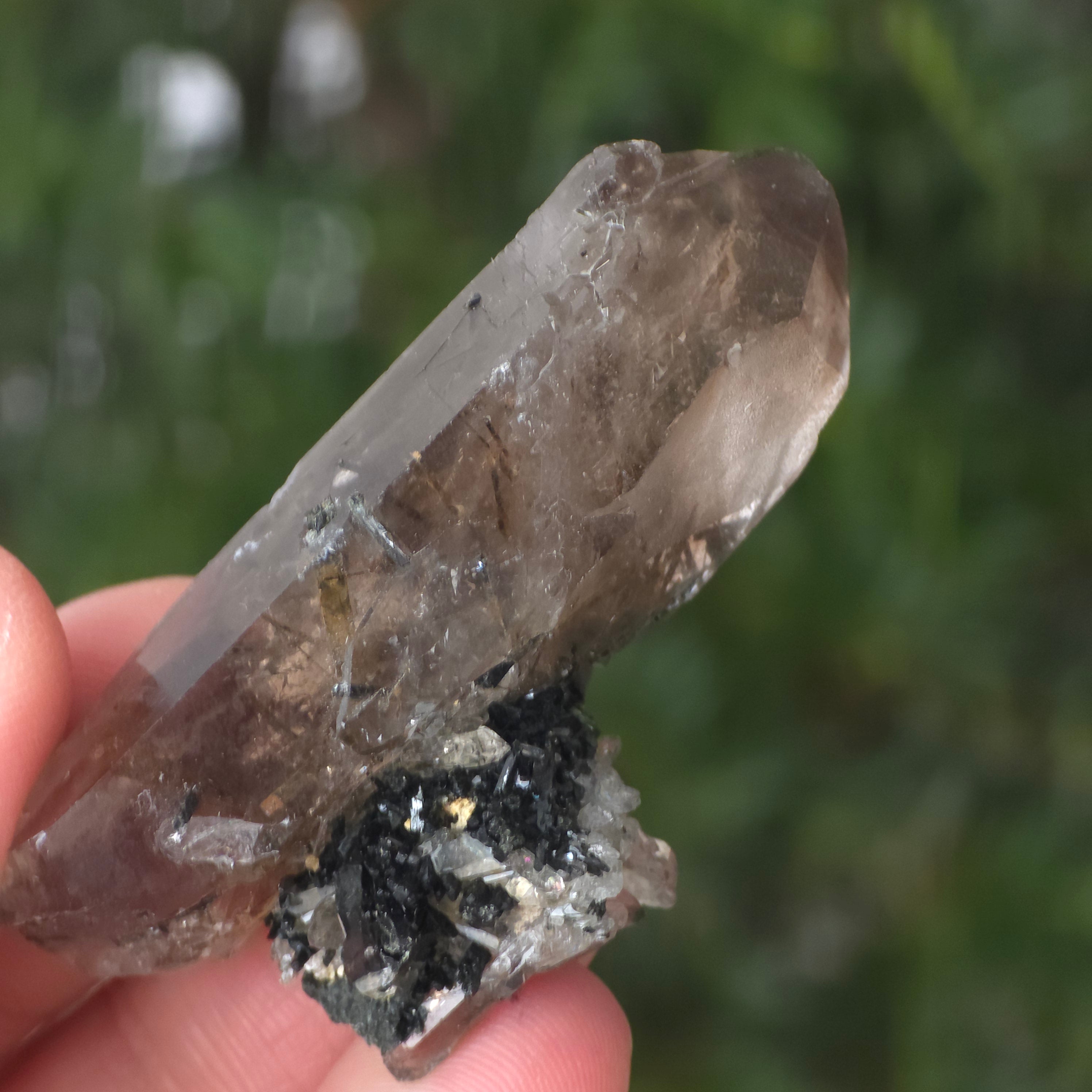Le quartz fumé est l'une des variétés de quartz naturel les plus élégantes et mystérieuses, reconnu pour ses nuances chaudes – du gris translucide au brun foncé, parfois avec des teintes presque noires. Sa formation se déroule dans les profondeurs de la croûte terrestre, où les radiations naturelles modifient la structure du cristal de quartz transparent, donnant naissance à cette teinte fumée distinctive. Chaque exemplaire est un témoignage de la patience géologique, un cristal formé lentement, dans des conditions de pression et de température parfaitement équilibrées.