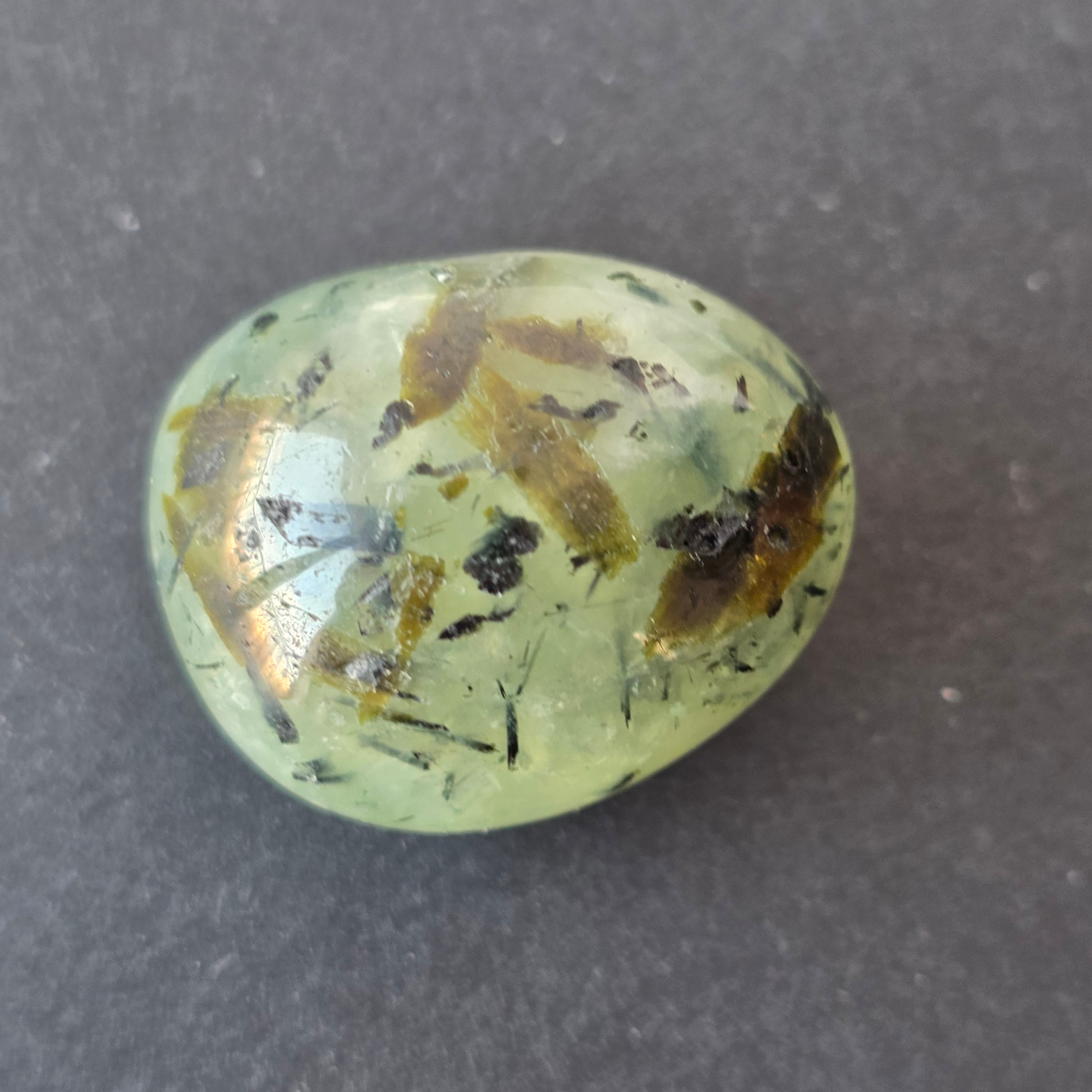 Guérison émotionnelle : On croit que la préhnite aide à libérer les émotions non résolues et les traumatismes du passé, facilitant le processus de guérison émotionnelle.