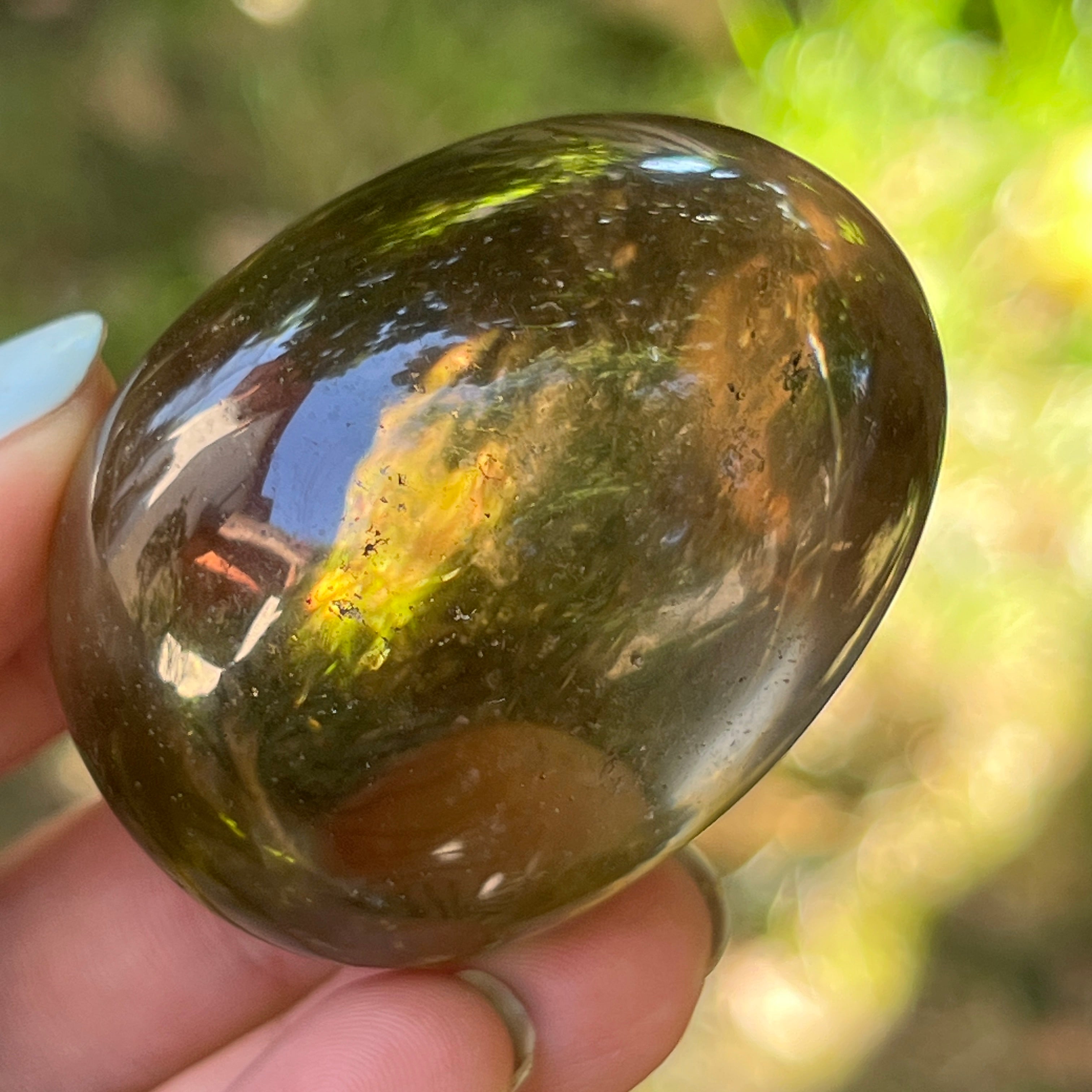 Soigneusement modélisé pour s'adapter parfaitement dans la paume, cette pierre de palmier de quartz fumée n'est pas seulement une pierre - c'est un point de soutien au milieu de l'agitation quotidienne. Avec ses nuances de terre, de bruns translucides à des tons plus profonds, le quartz fumé y porte le calme des vieilles rochers et la patience des montagnes.