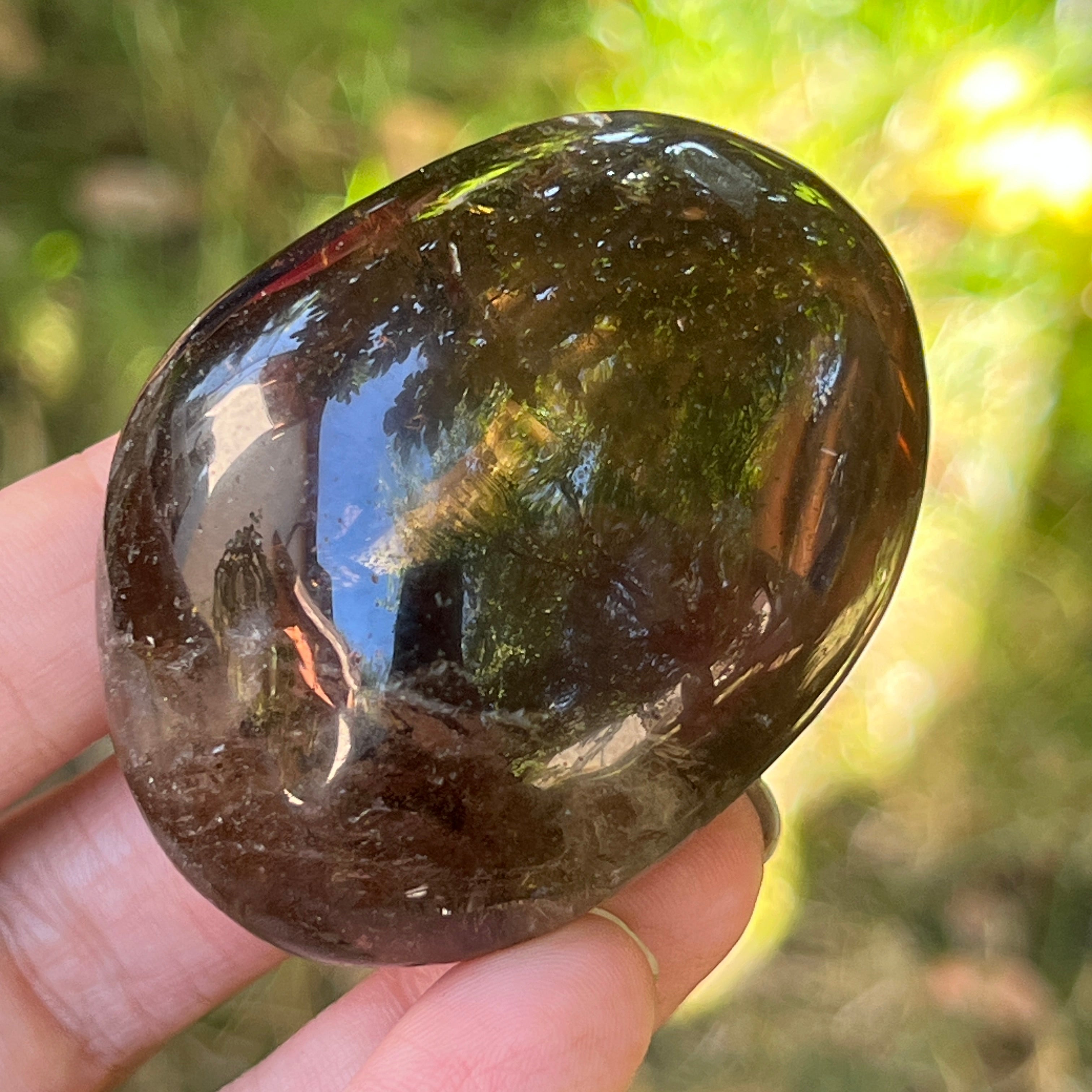 Soigneusement modélisé pour s'adapter parfaitement dans la paume, cette pierre de palmier de quartz fumée n'est pas seulement une pierre - c'est un point de soutien au milieu de l'agitation quotidienne. Avec ses nuances de terre, de bruns translucides à des tons plus profonds, le quartz fumé y porte le calme des vieilles rochers et la patience des montagnes.