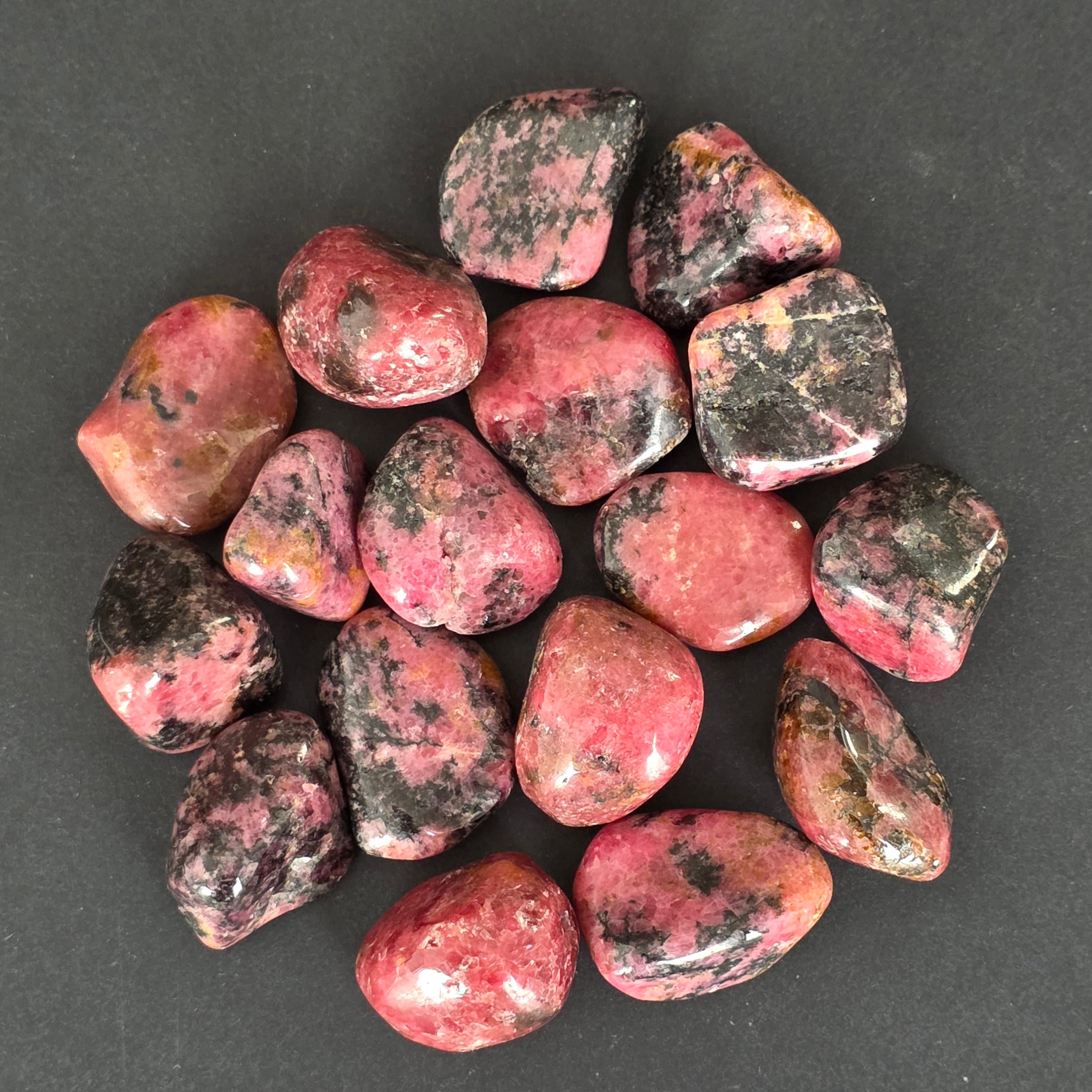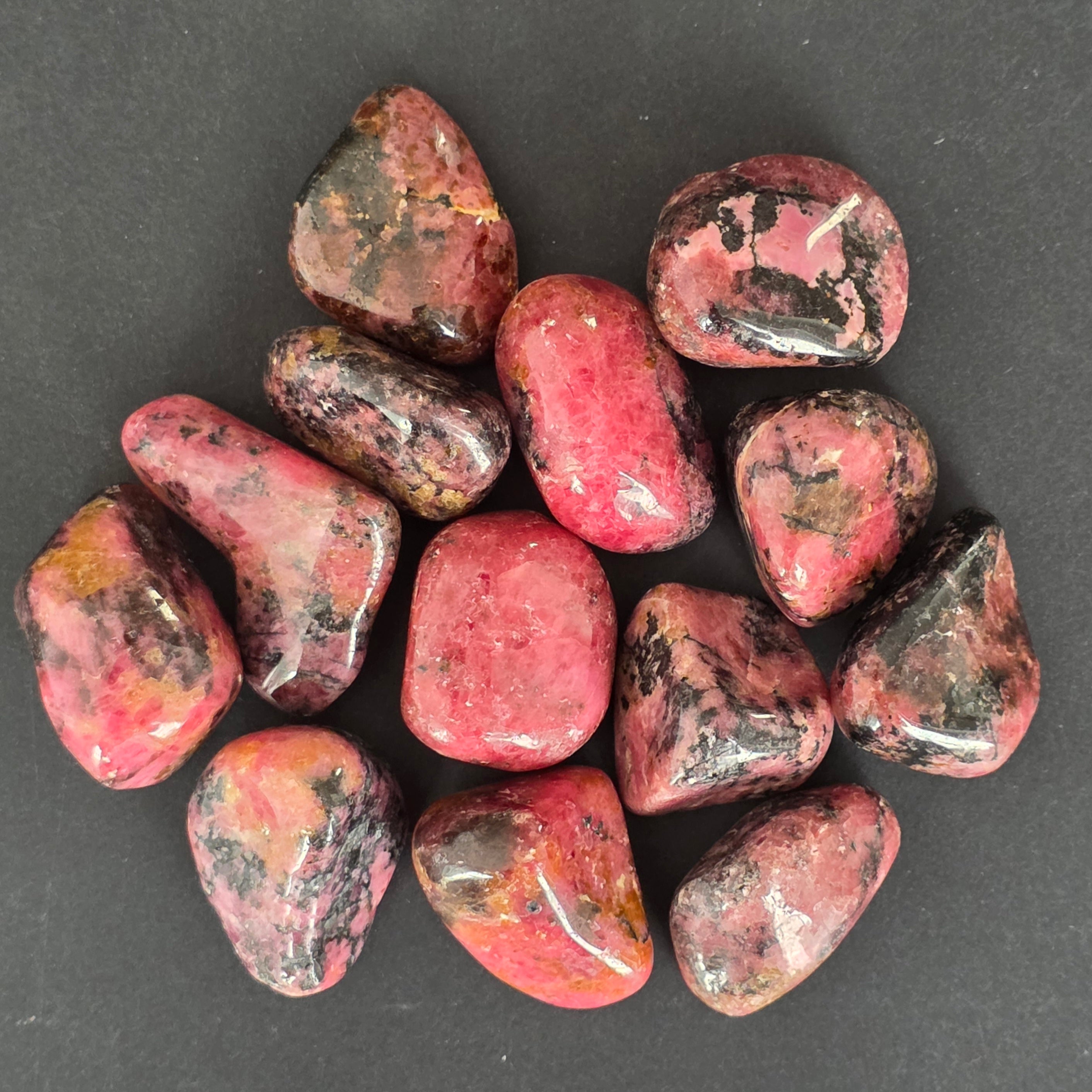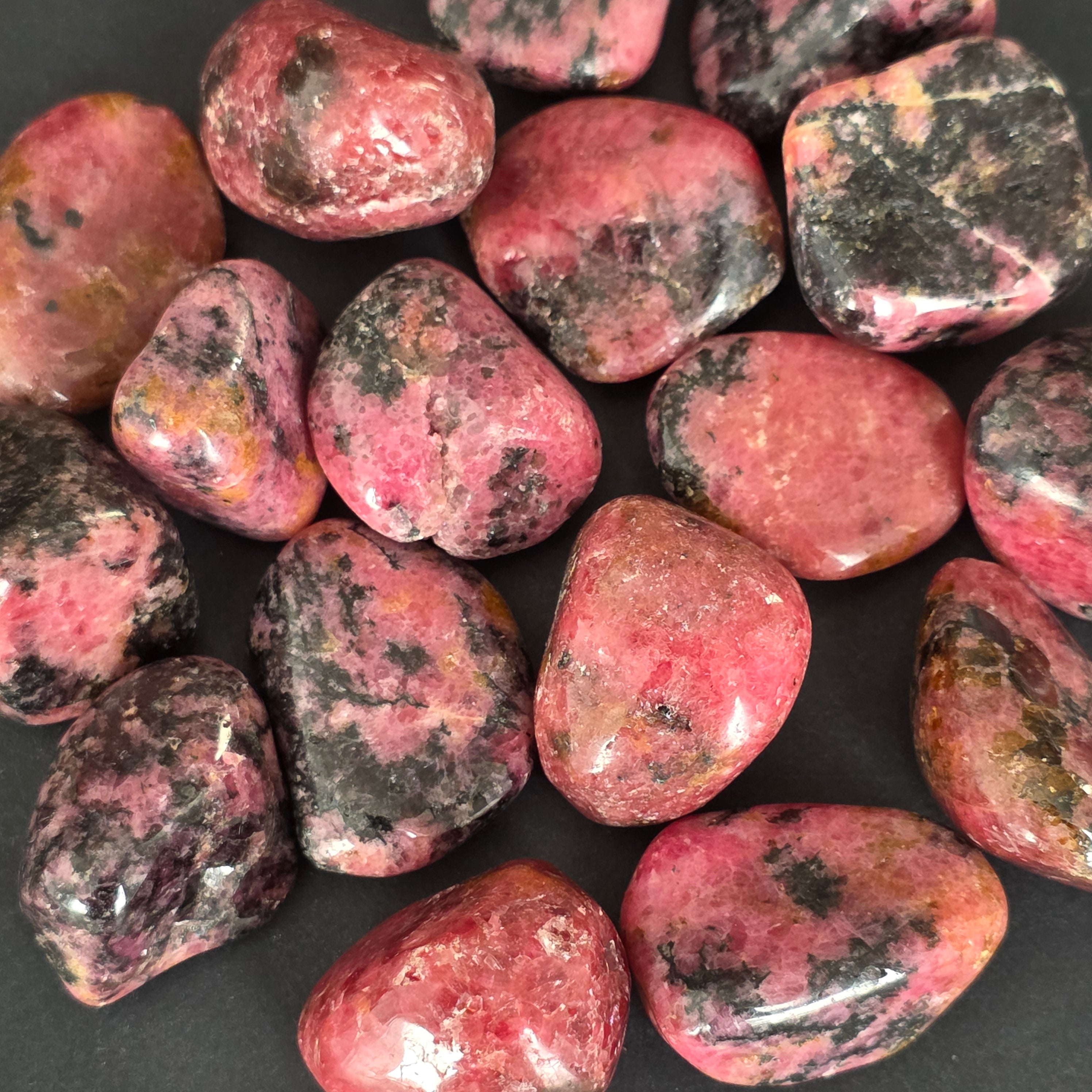 Pierre roulée rhodonite, tailles entre 2-3 cm. Le prix diffère selon la taille de la pierre, veuillez sélectionner la taille souhaitée. Le prix se réfère à une pièce.