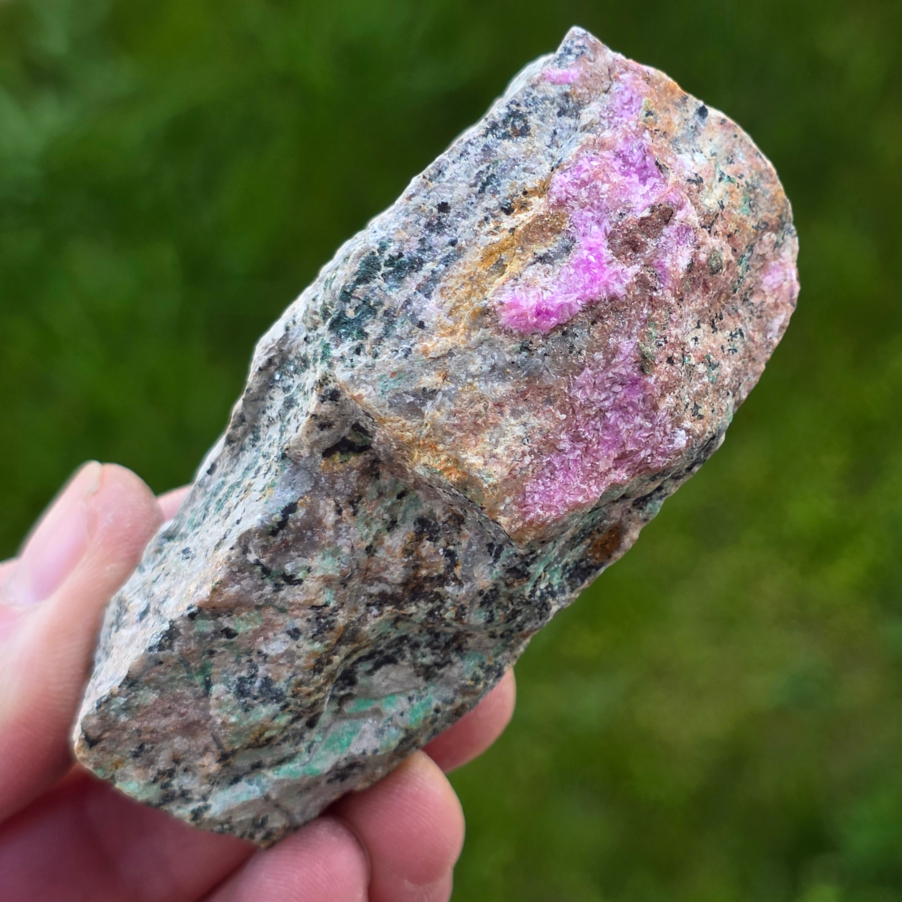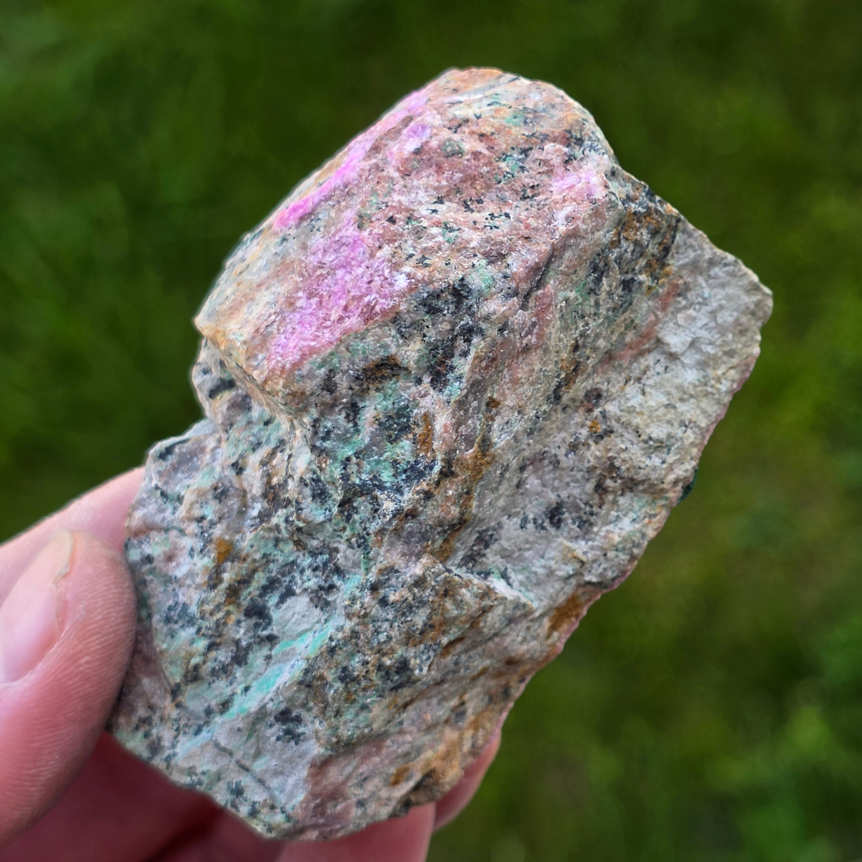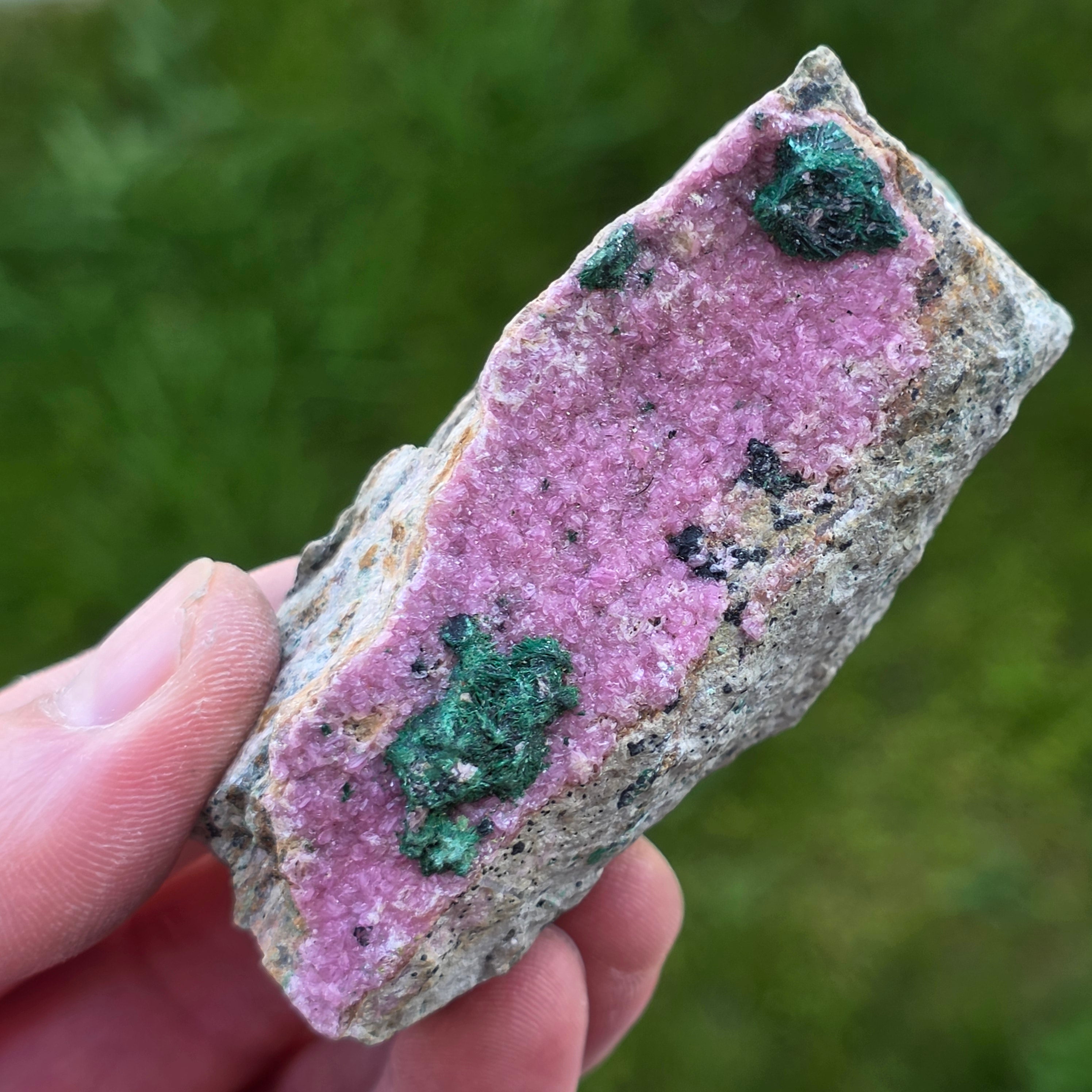 Dolomite rose Salrose avec incrustations de malachite pierre brute m23, dimensions : 5,5 x 5 x 2,5 cm