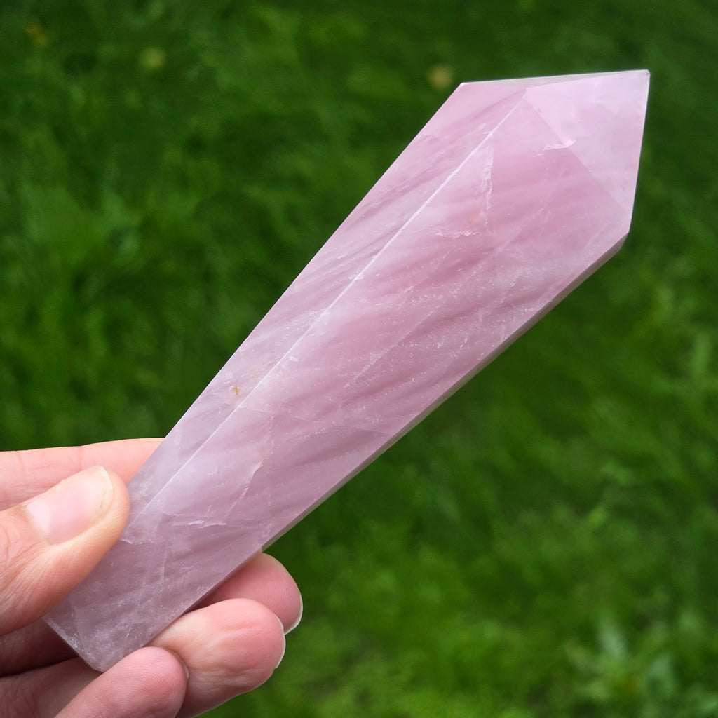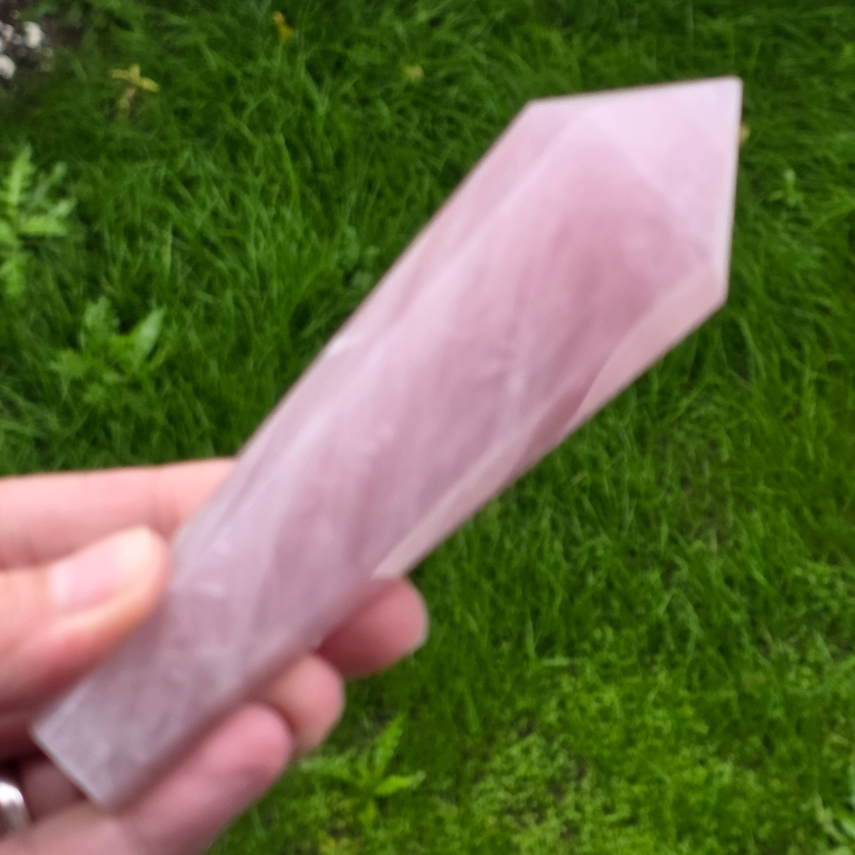 Sceptrul din cuart roz este un instrument folosit în special în practici energetice, masaj holistic și meditație. Forma sa alungită și vârful bine definit permit direcționarea intenției, echilibrarea fluxului energetic și focalizarea atenției în zonele în care ai nevoie de calm sau claritate. Este utilizat deseori pentru masaj energetic, fiind ideal pentru trasee lungi pe meridiane, pentru relaxarea zonei umerilor, spatelui sau palmelor. În meditație, poate fi ținut în mână pentru a amplifica starea de liniște și conectare interioară.