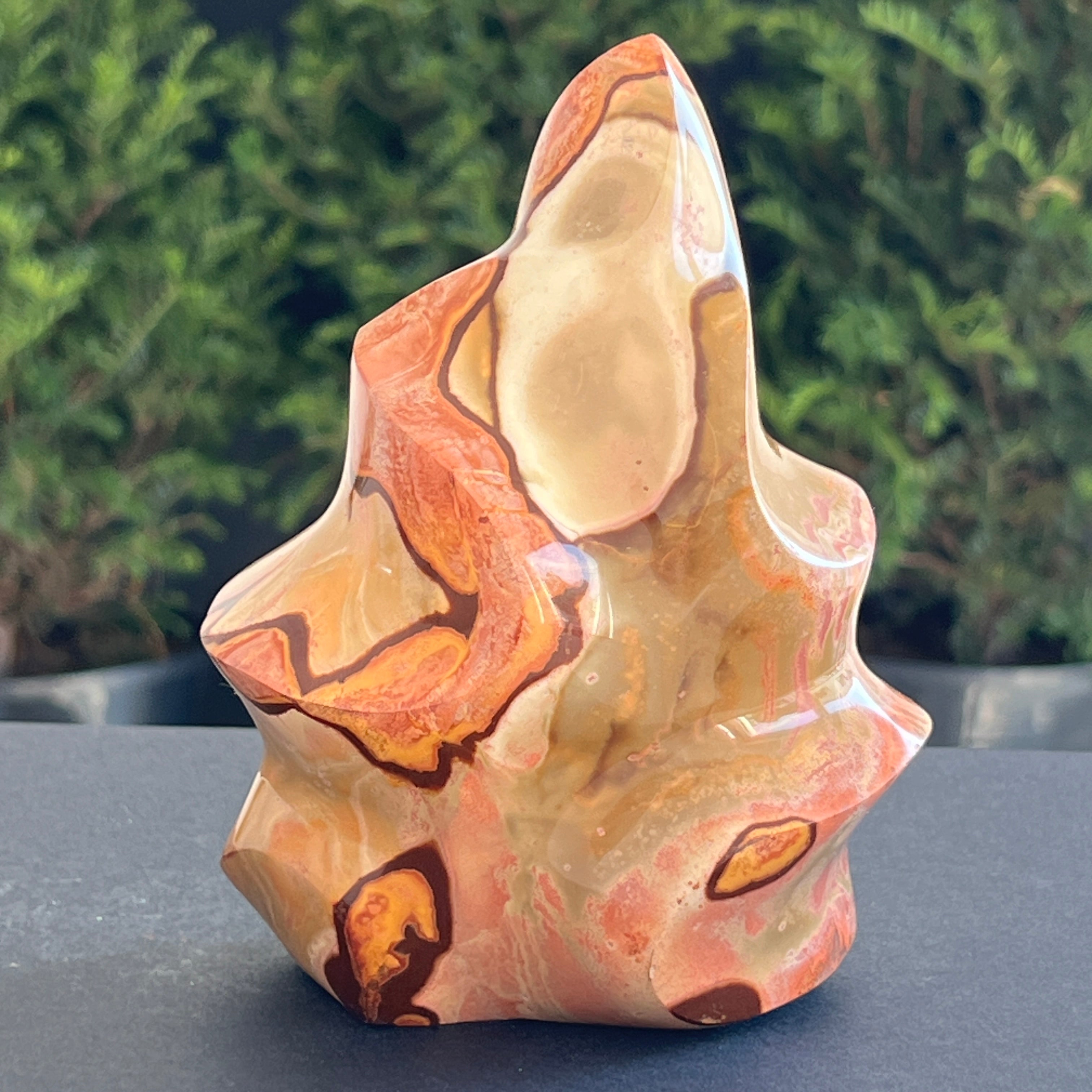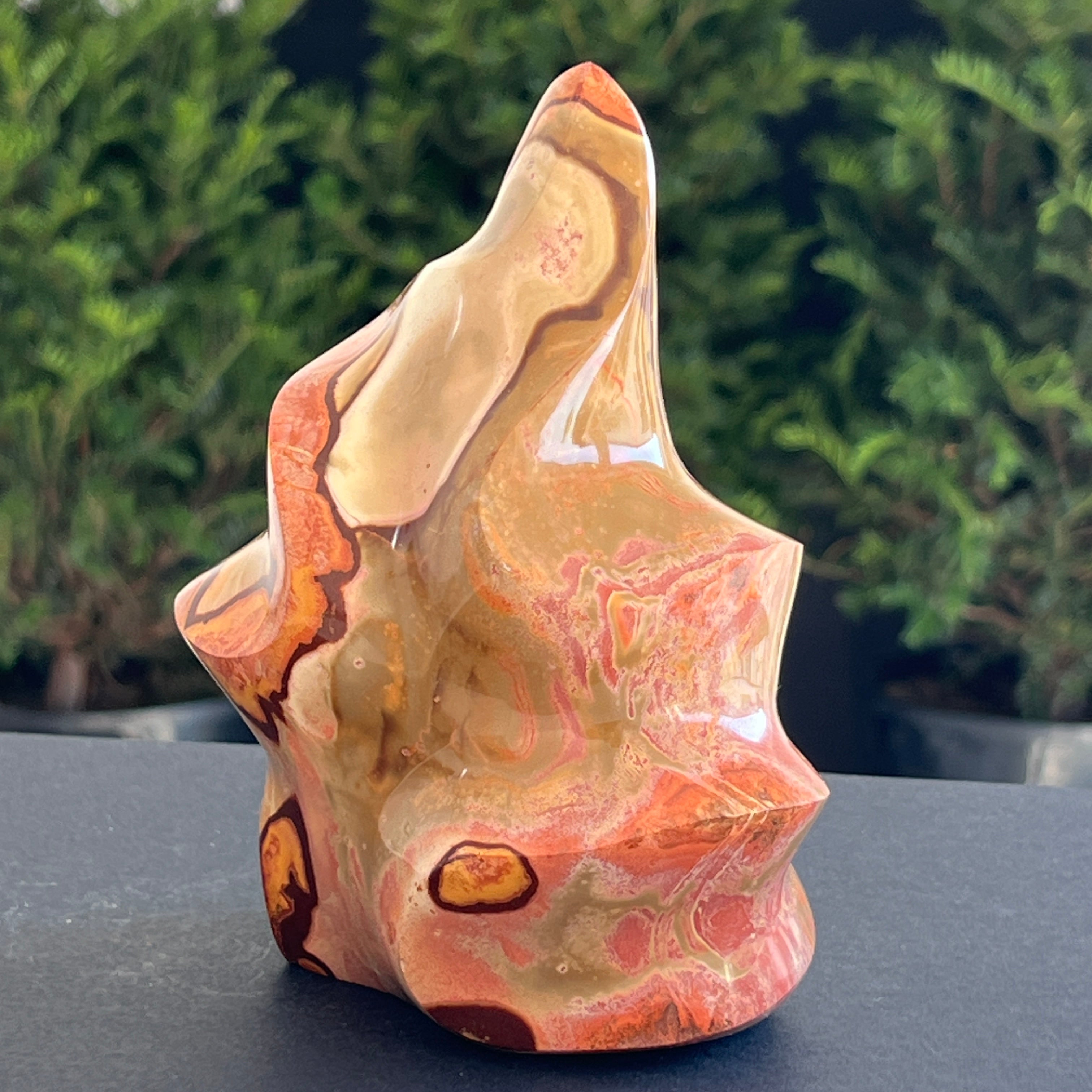 Description - Sculptura jasp policrom forma flacara | Model 5