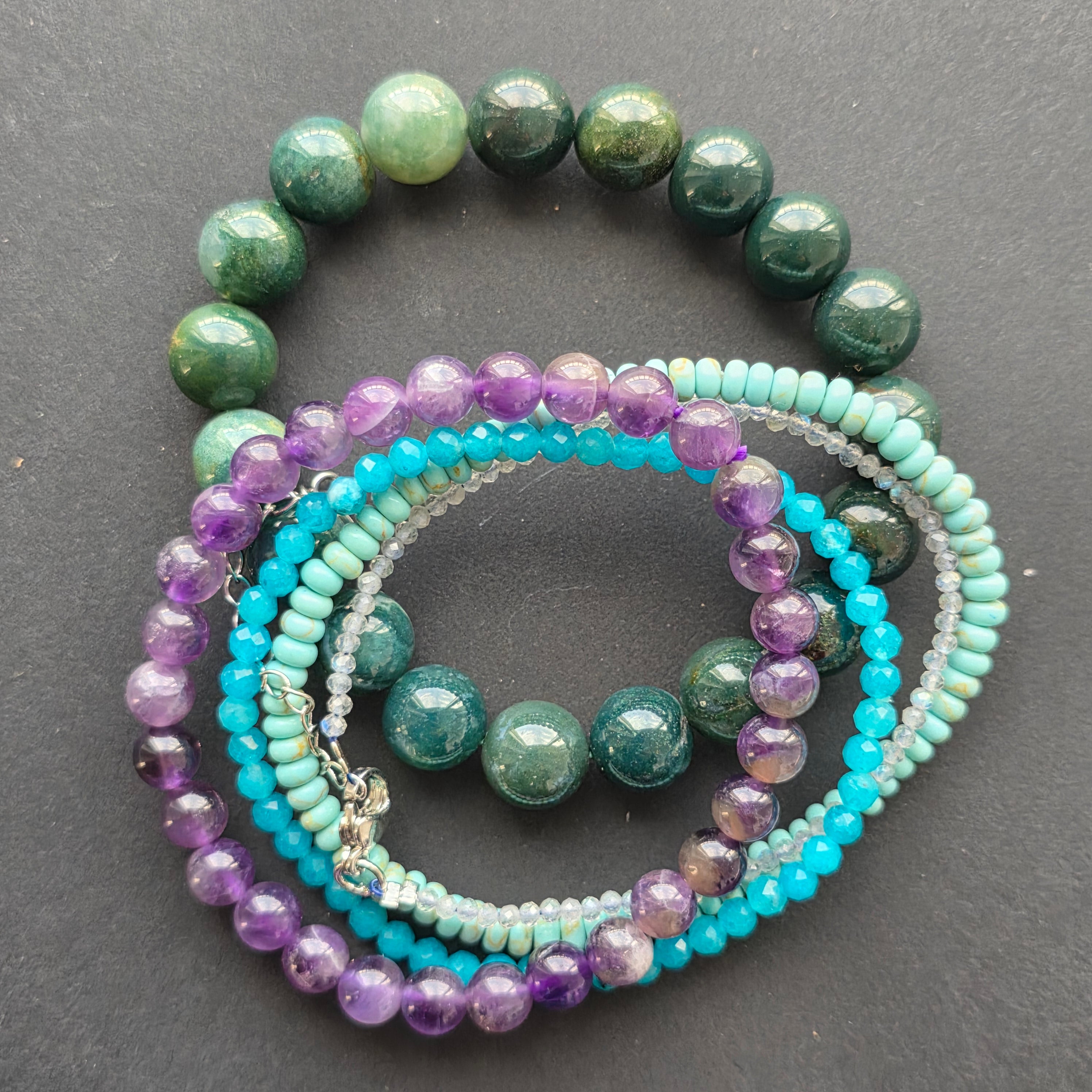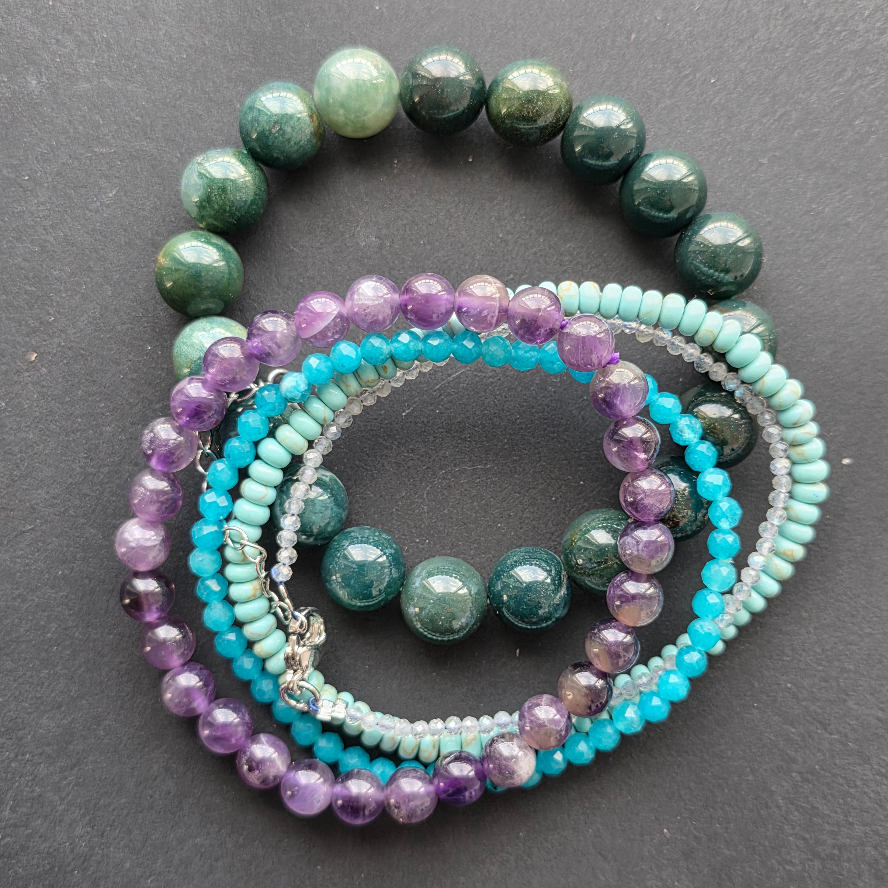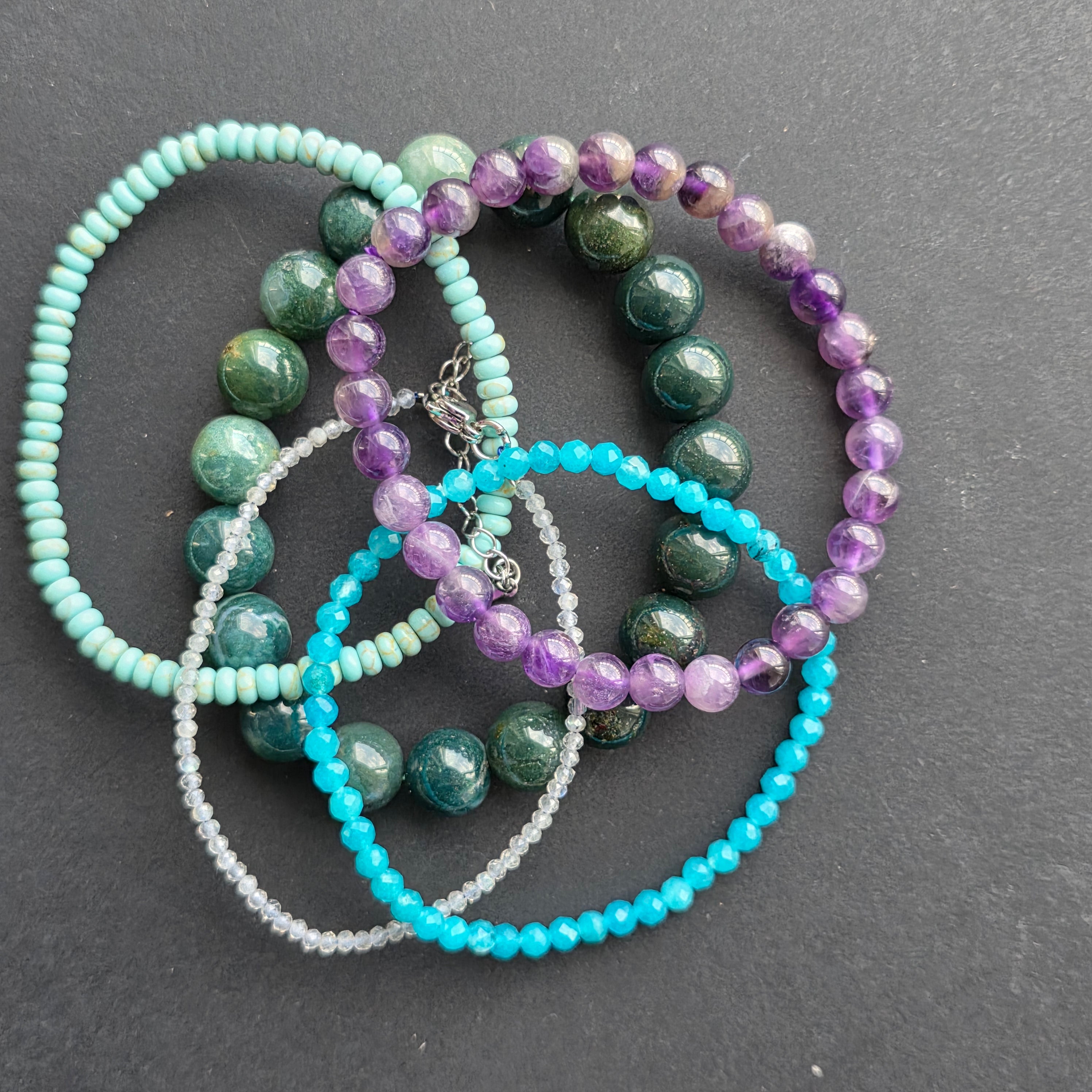 L’améthyste de 4 mm offre calme, intuition et équilibre, tempérant les impulsions et ouvrant un espace pour la clarté.