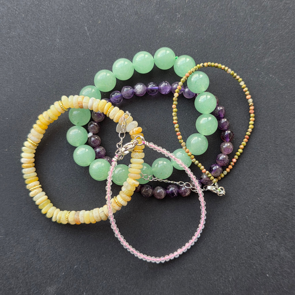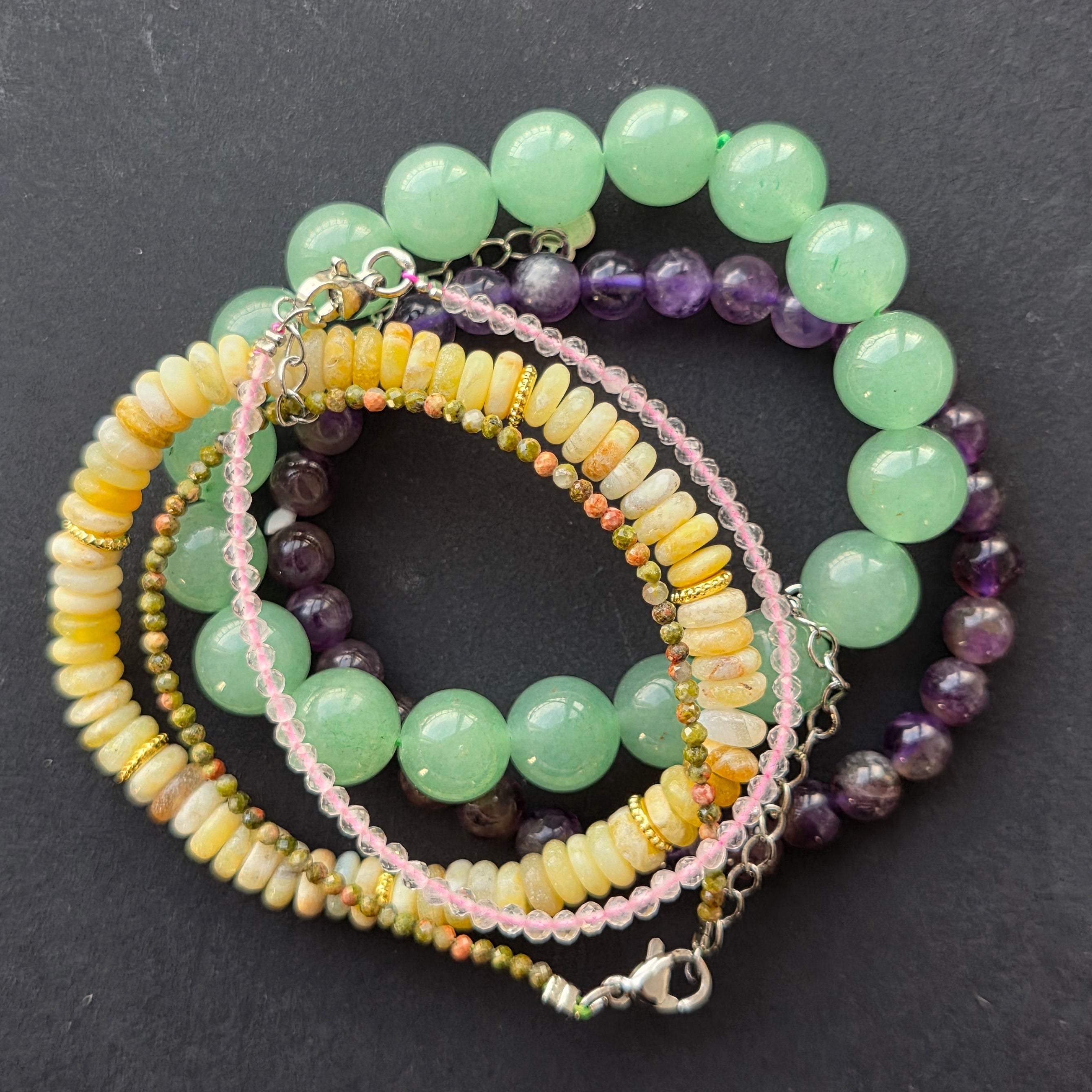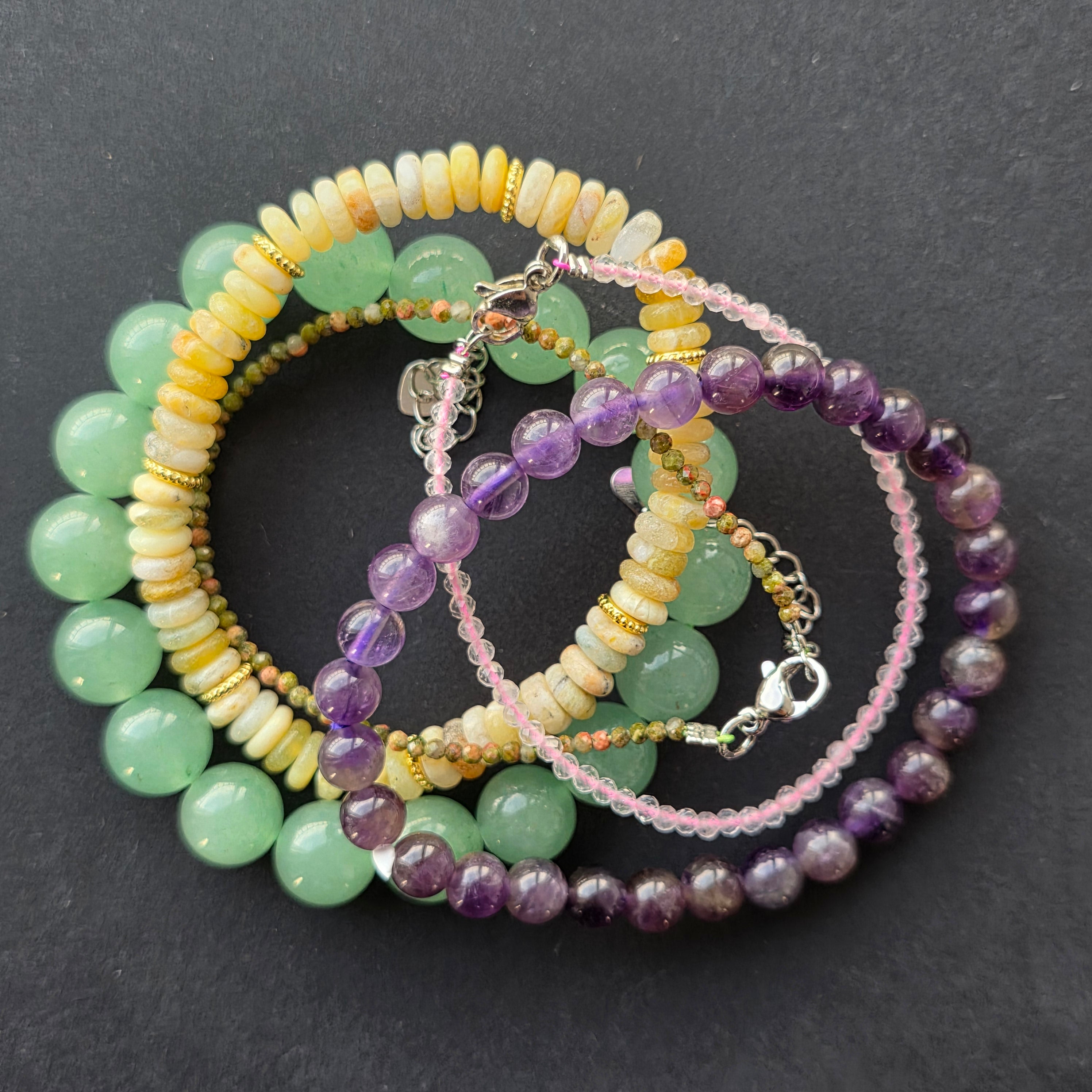 L'améthyste de 4 mm offre calme, intuition et équilibre, tempérant les impulsions et ouvrant un espace pour la clarté.