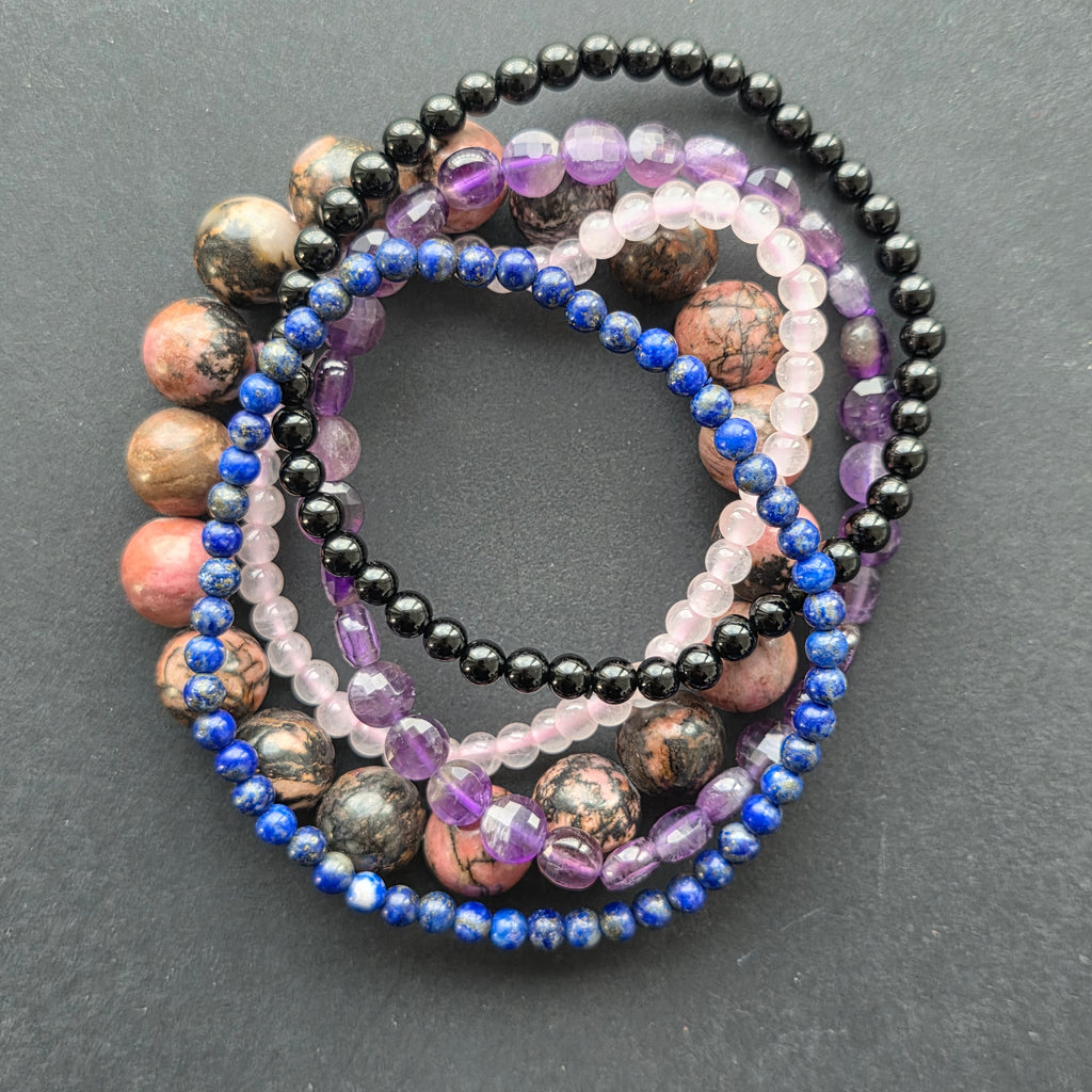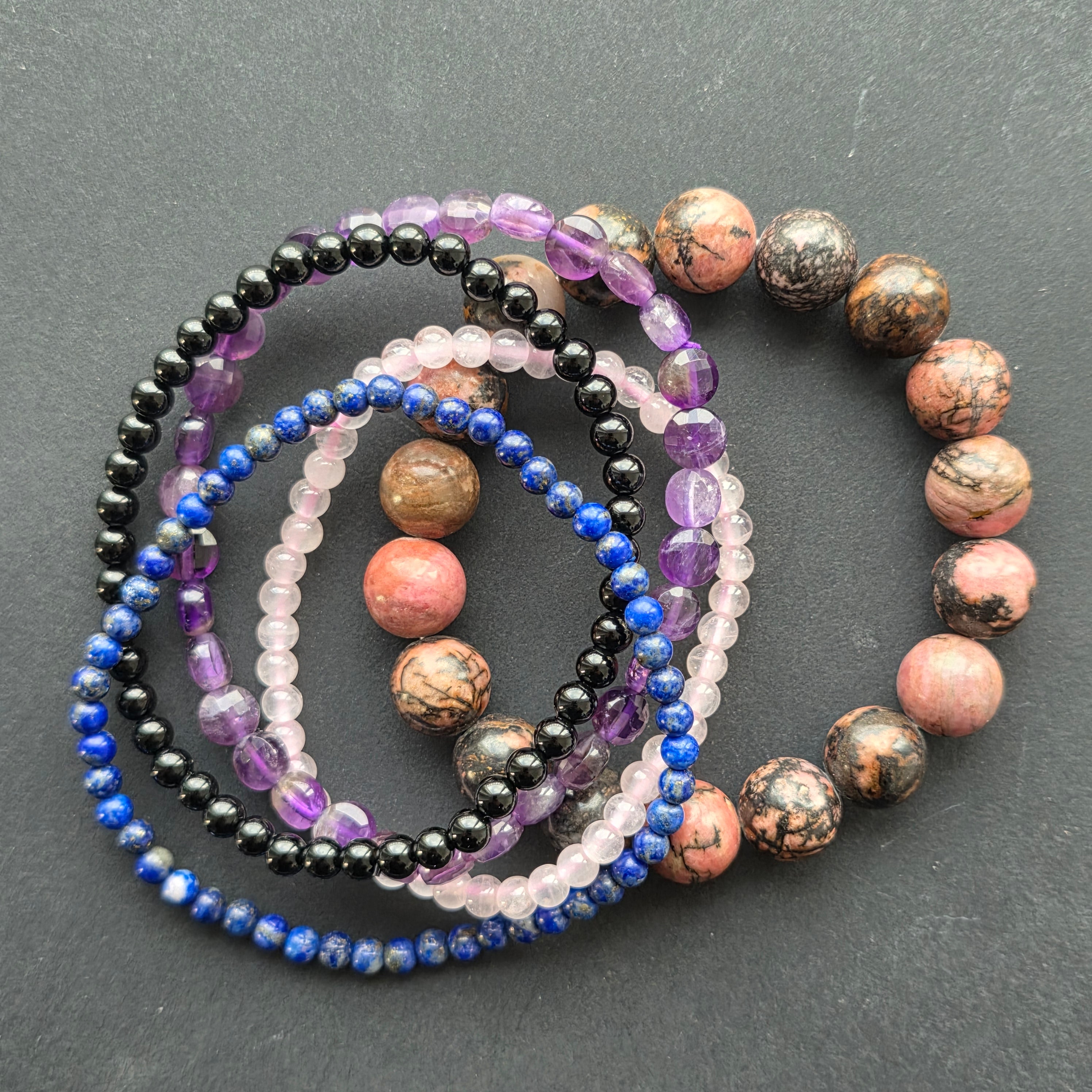 L’améthyste de 4 mm offre calme, intuition et équilibre, tempérant les impulsions et ouvrant un espace pour la clarté.