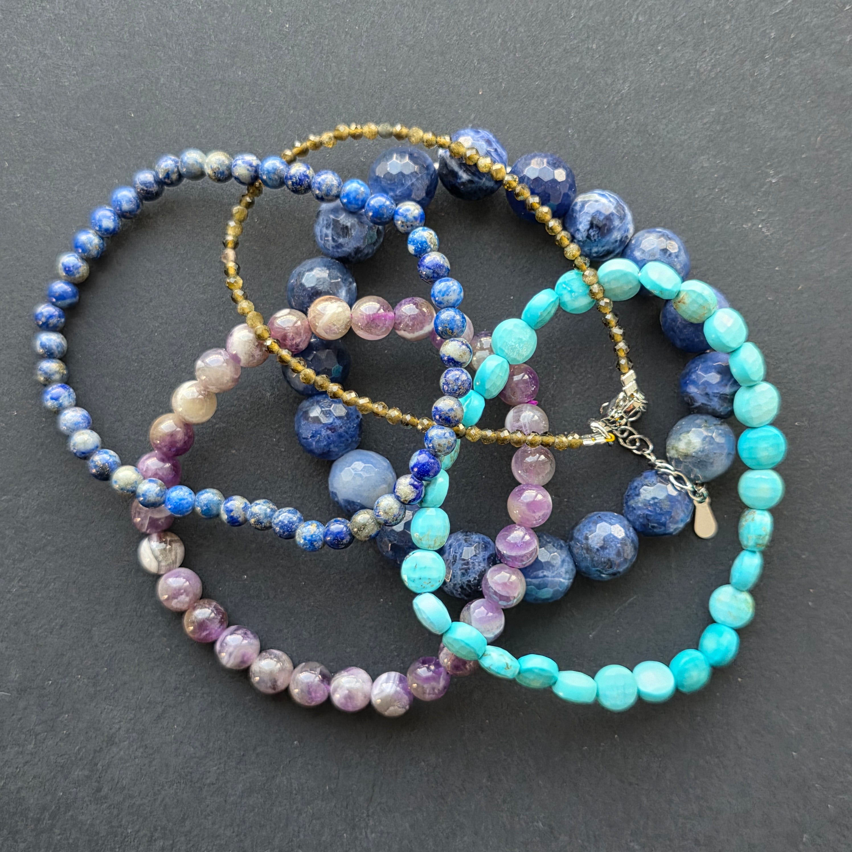 L’améthyste de 4 mm offre calme, intuition et équilibre, tempérant les impulsions et ouvrant l’espace à la clarté.
