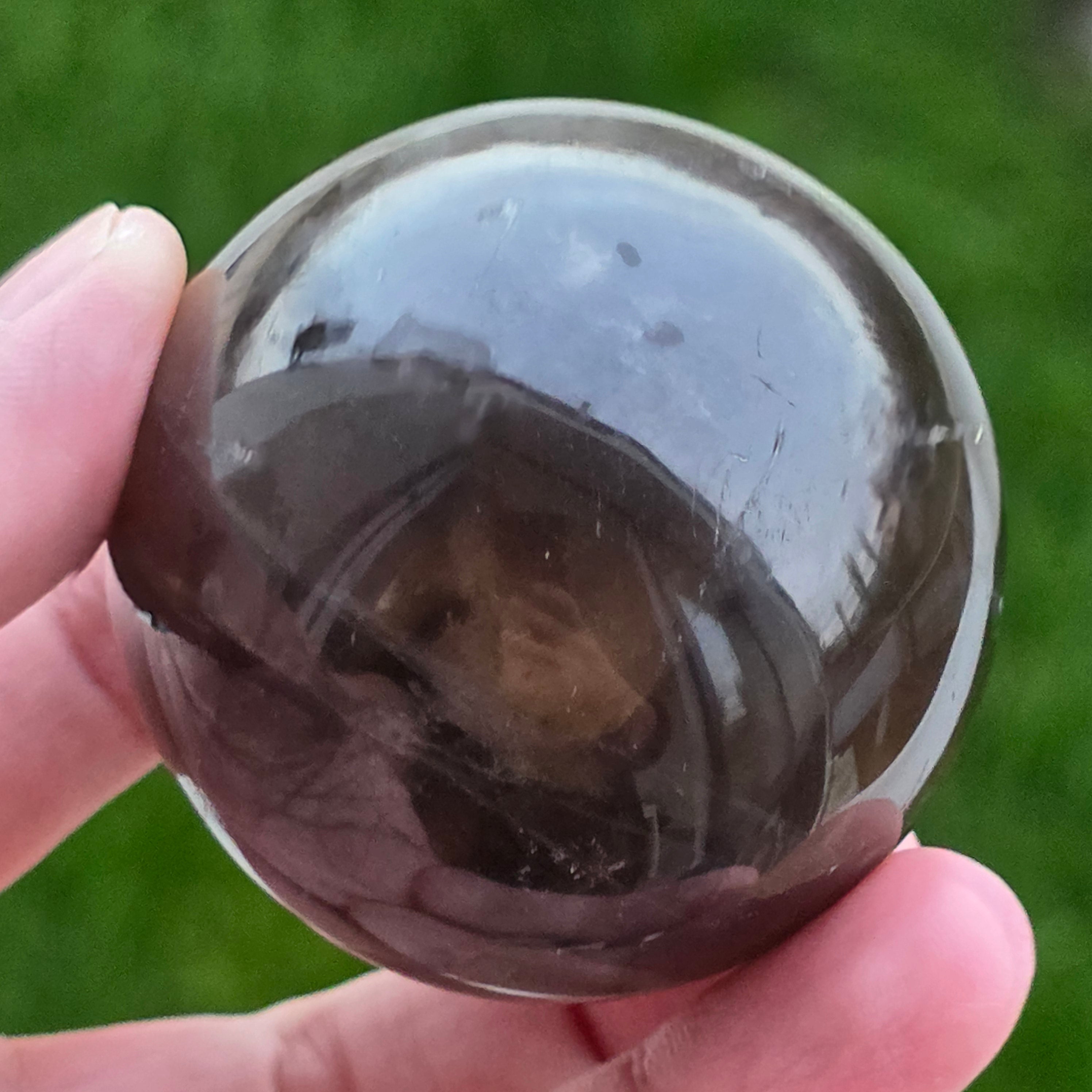 Sfera din cuarț morion este o piesă puternică și elegantă, cunoscută pentru nuanța sa profundă, asemănătoare fumului dens sau obsidianului transparent. Morionul este cea mai închisă varietate de cuarț fumuriu, iar în această formă perfect rotundă dezvăluie reflexii discrete, detalii interne fine și o prezență vizuală cu adevărat sofisticată.