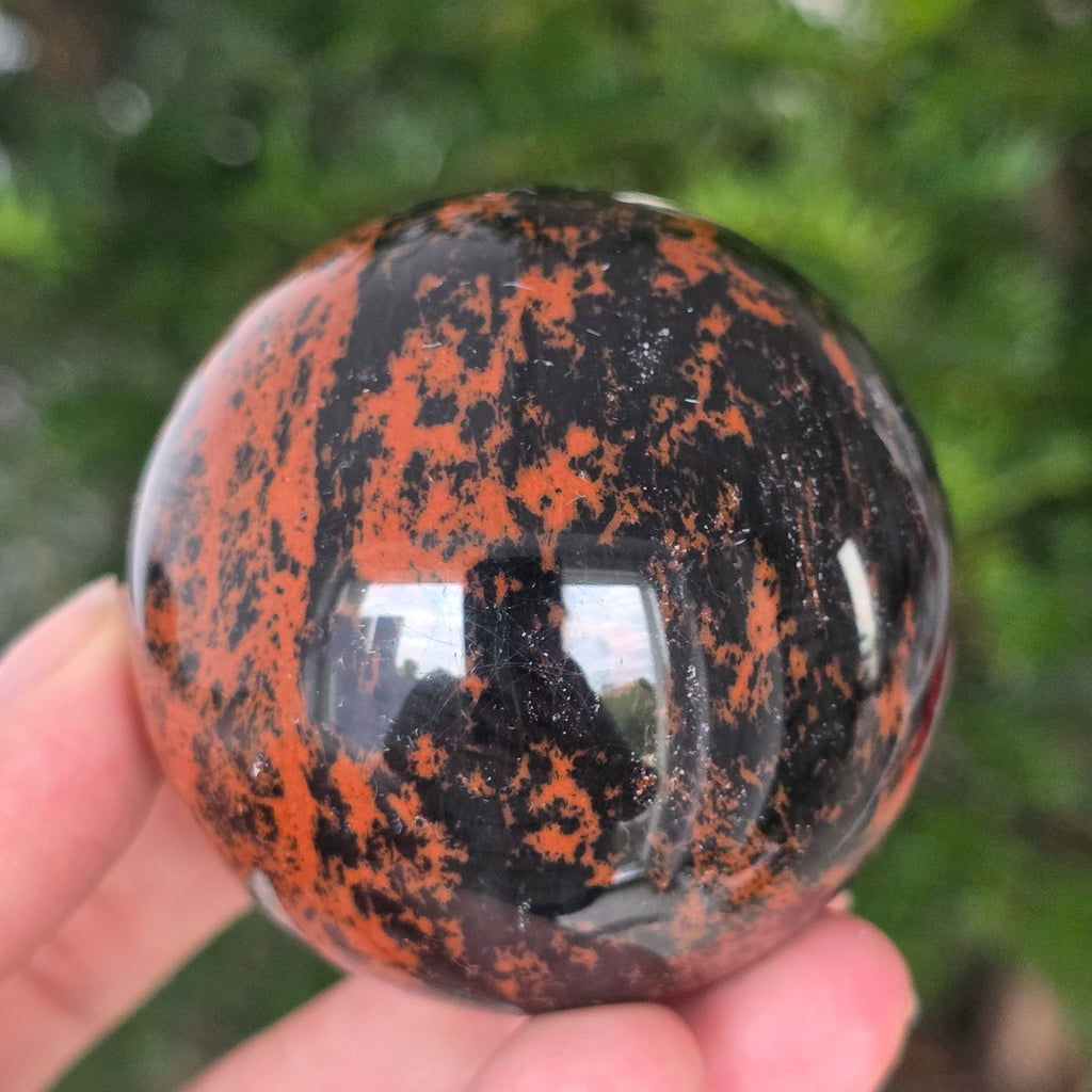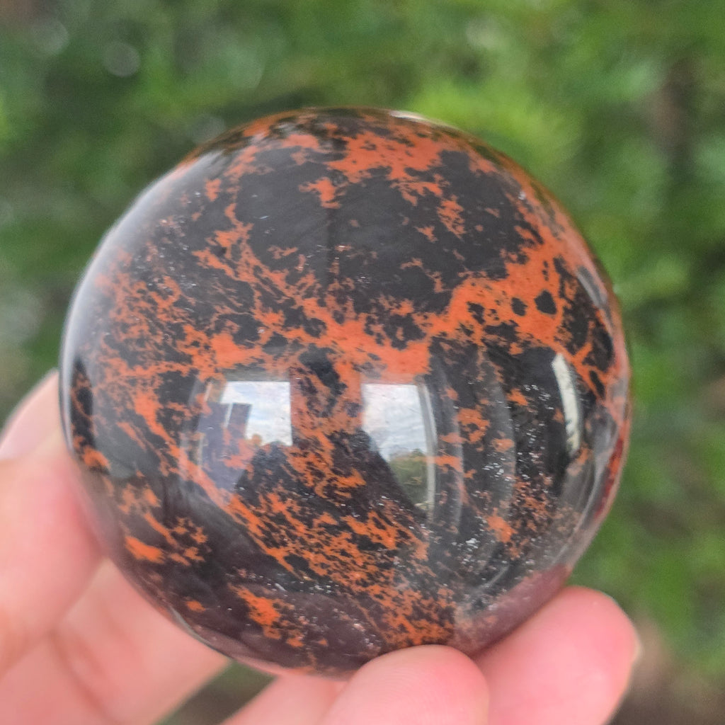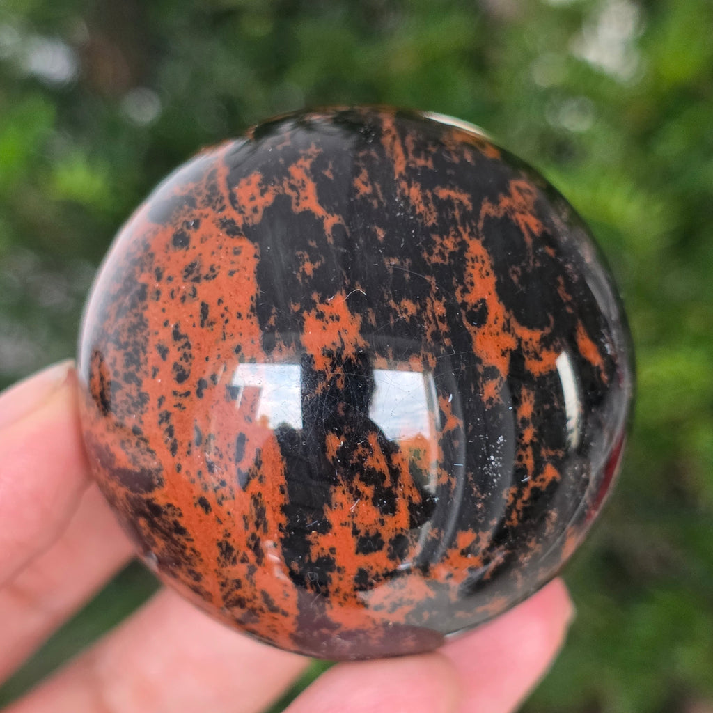 Lasă-te inspirat de forța liniștită a Pământului prin această sferă din obsidian mahon.