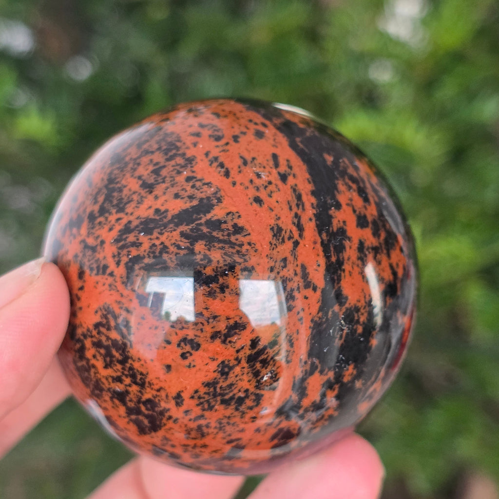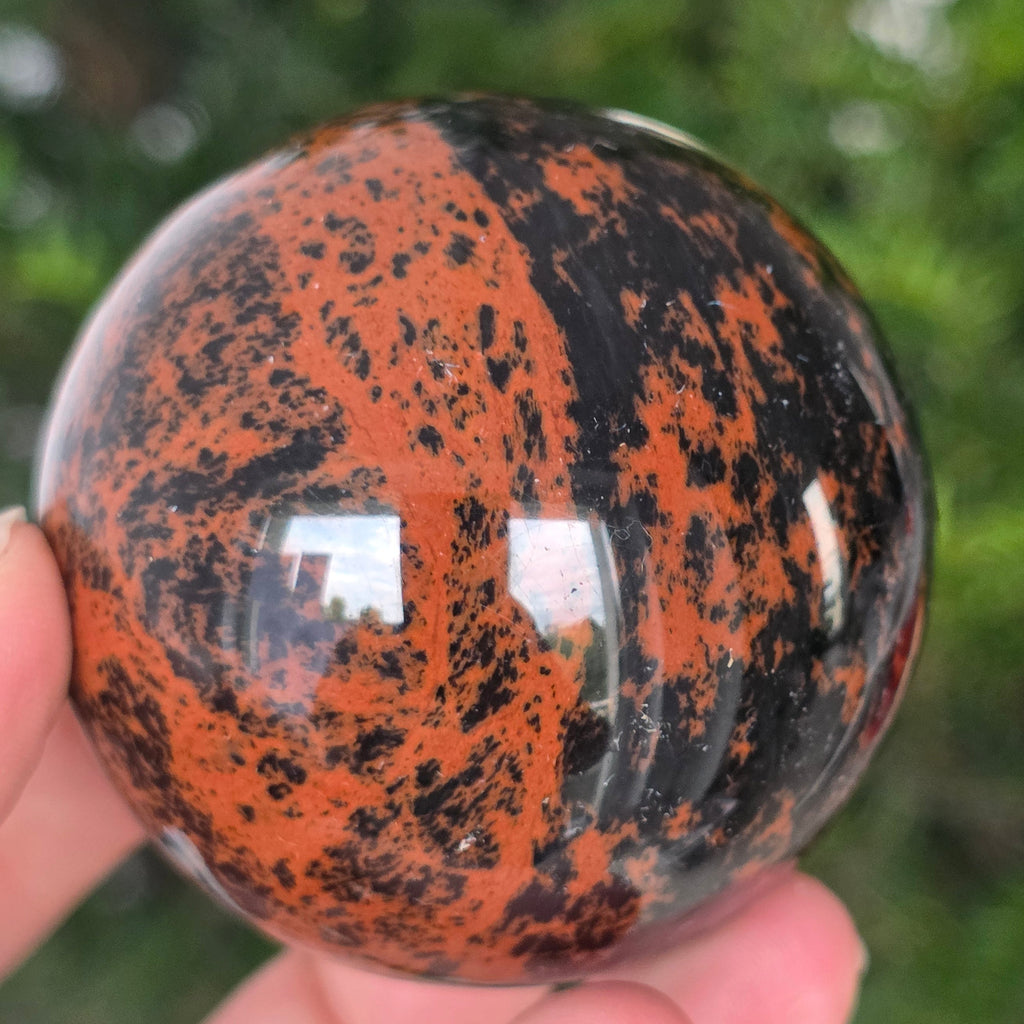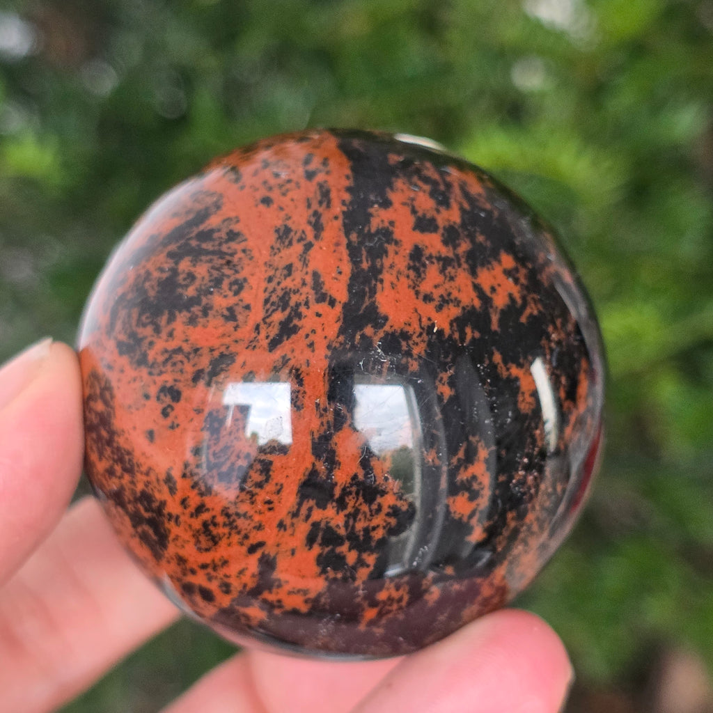 Lasă-te inspirat de forța liniștită a Pământului prin această sferă din obsidian mahon.