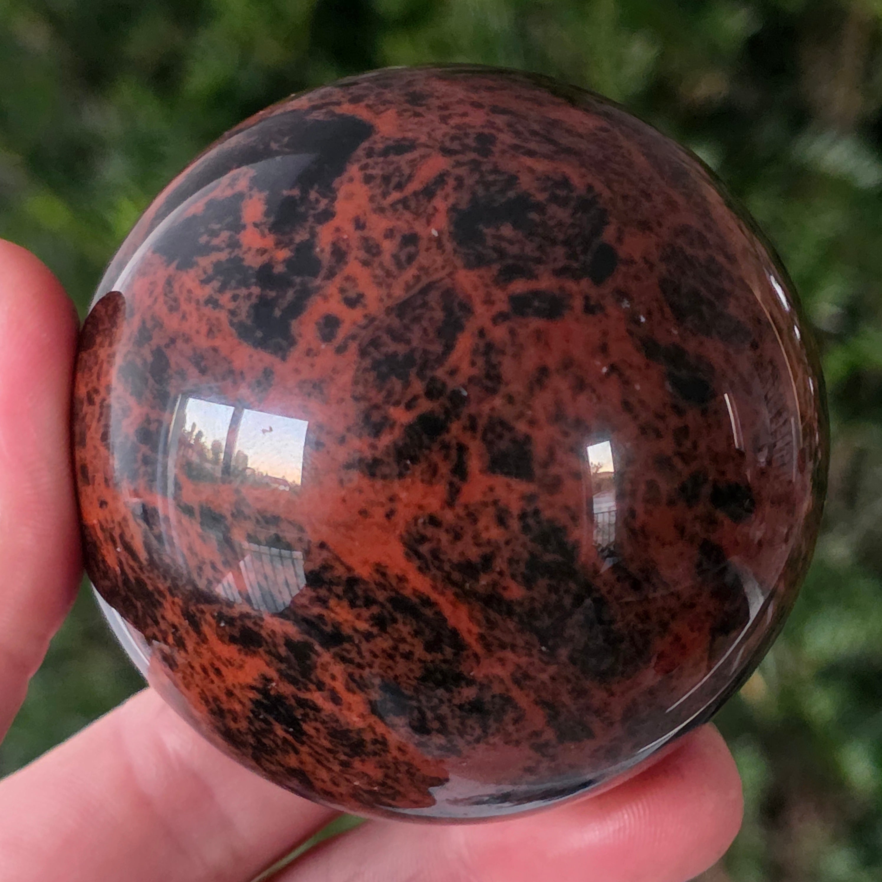 Lasă-te inspirat de forța liniștită a Pământului prin această sferă din obsidian mahon.