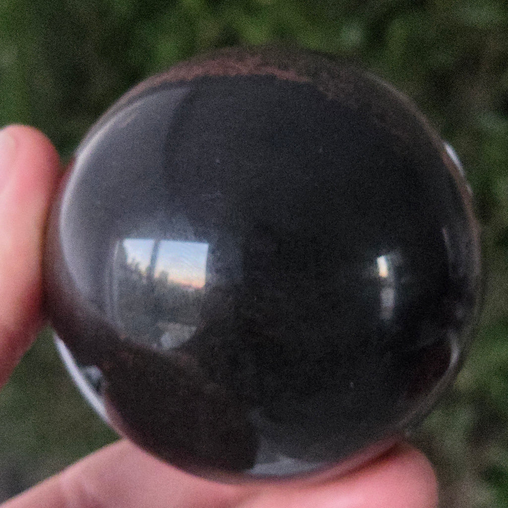 Lasă-te inspirat de forța liniștită a Pământului prin această sferă din obsidian mahon.