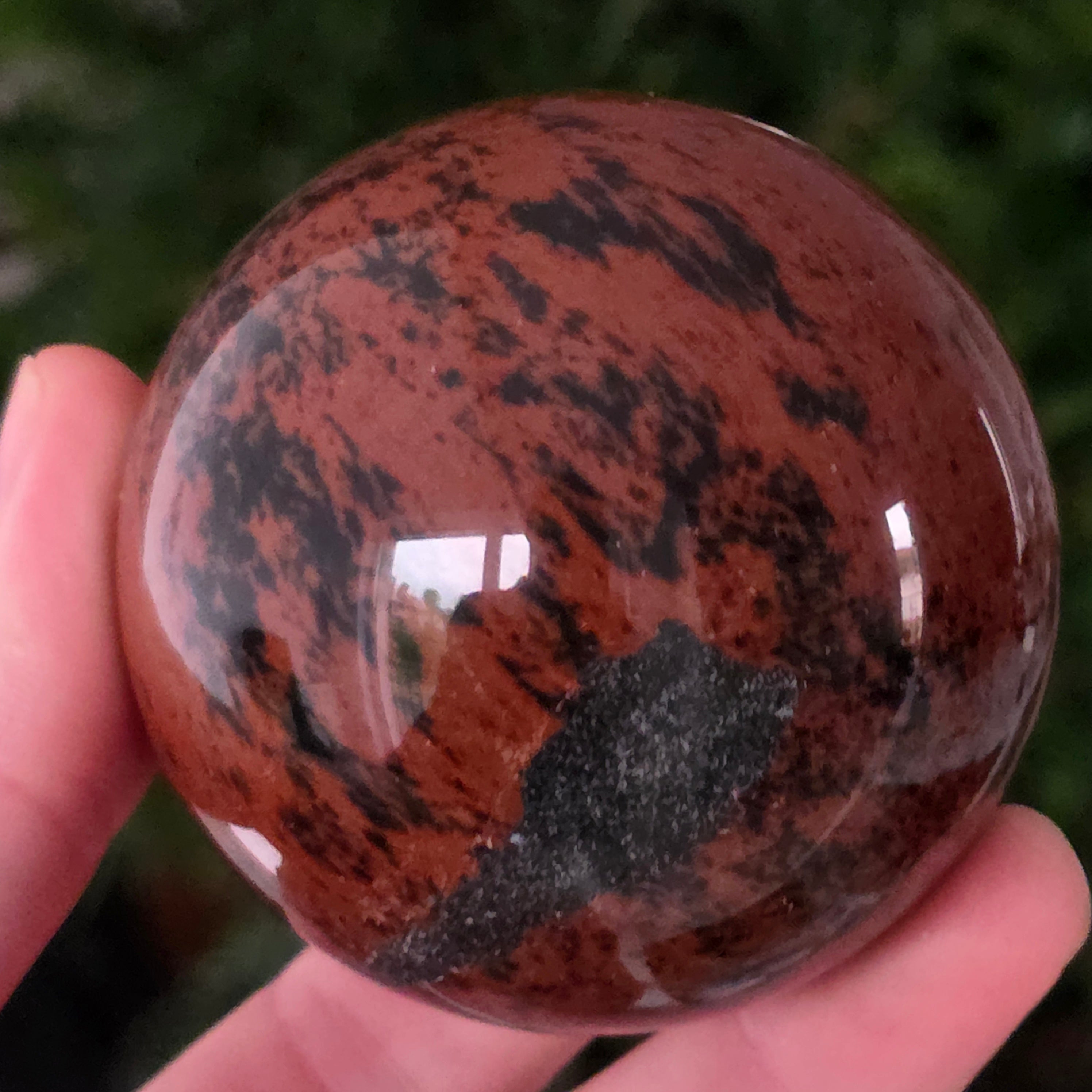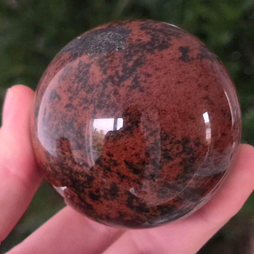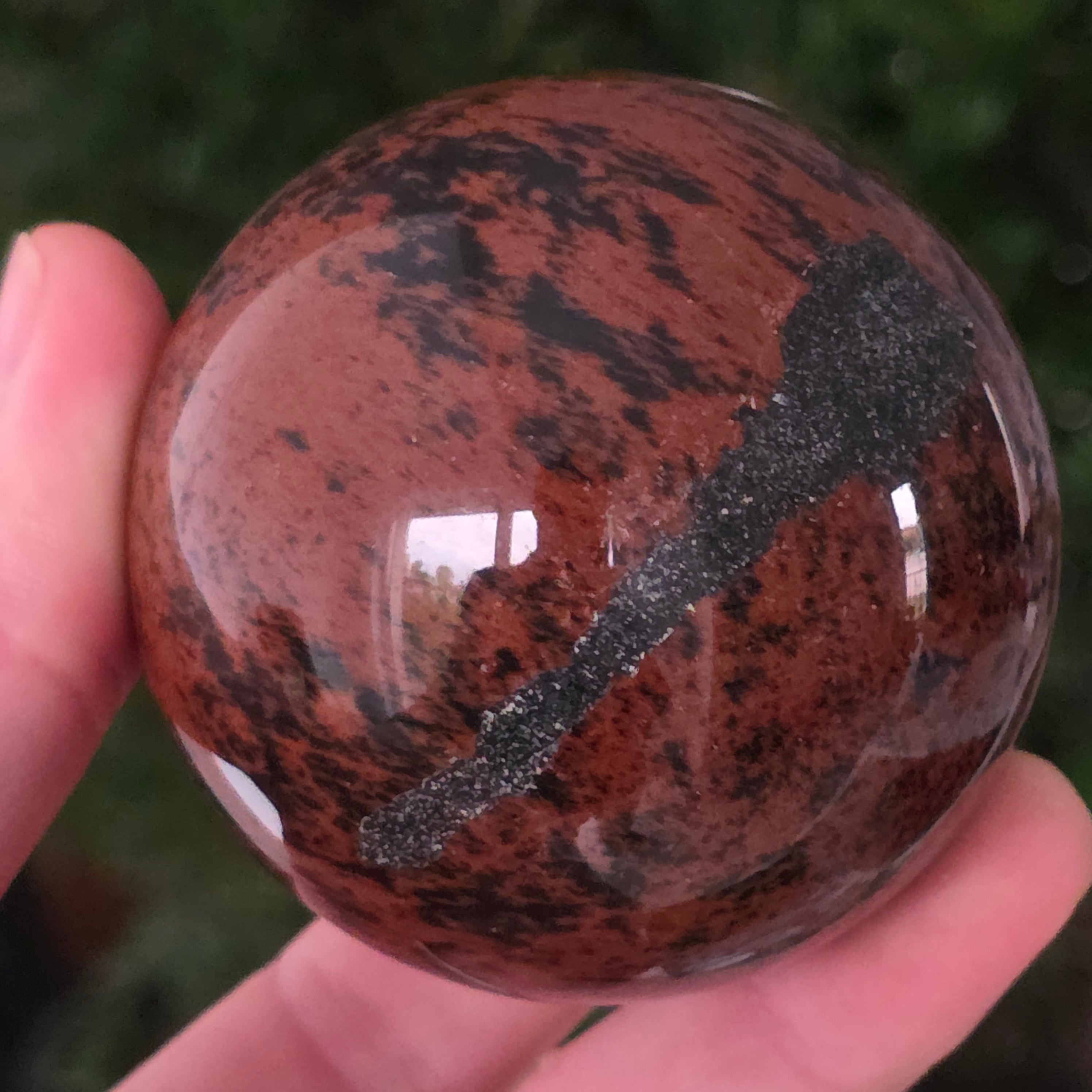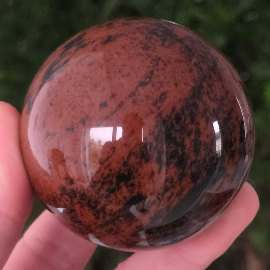Lasă-te inspirat de forța liniștită a Pământului prin această sferă din obsidian mahon.