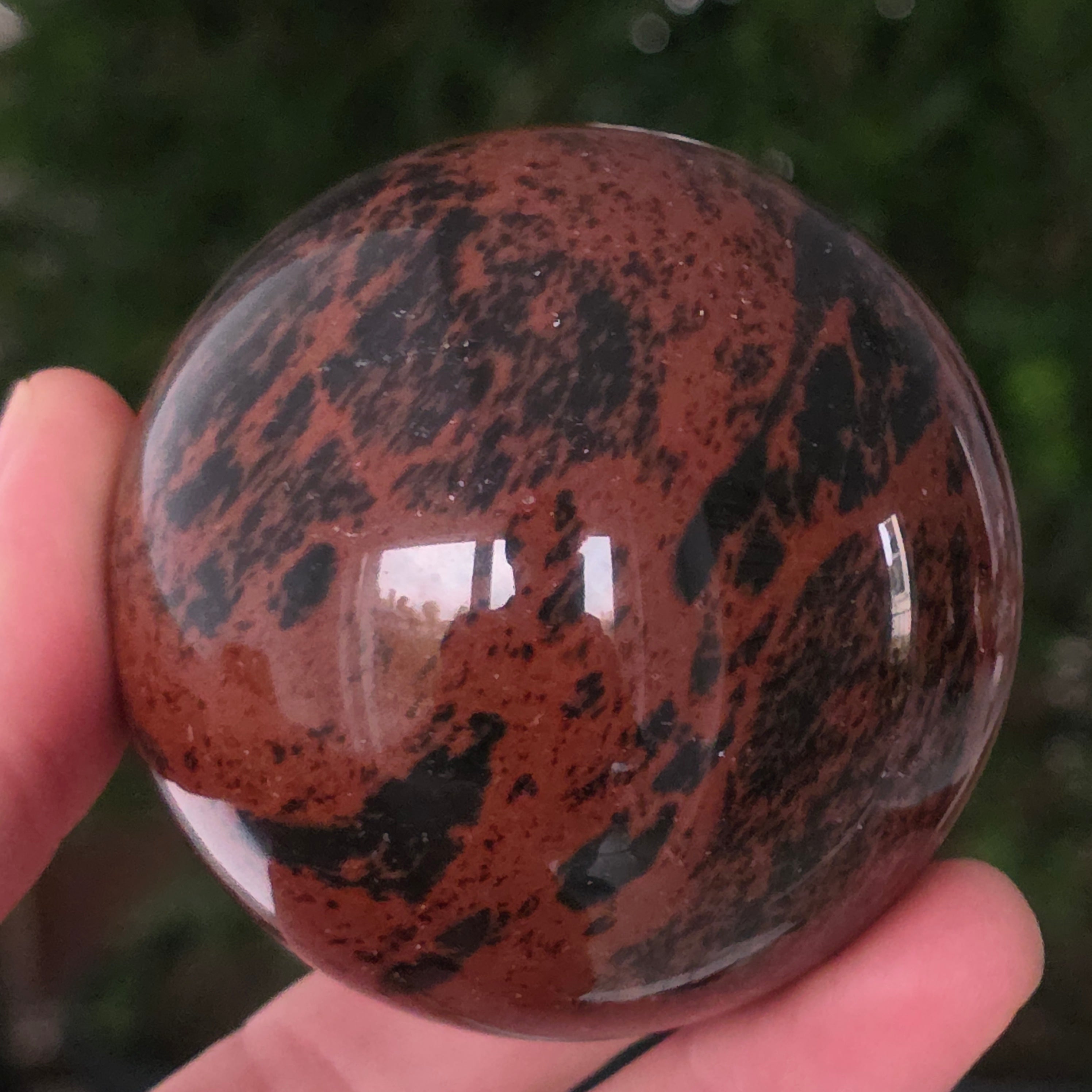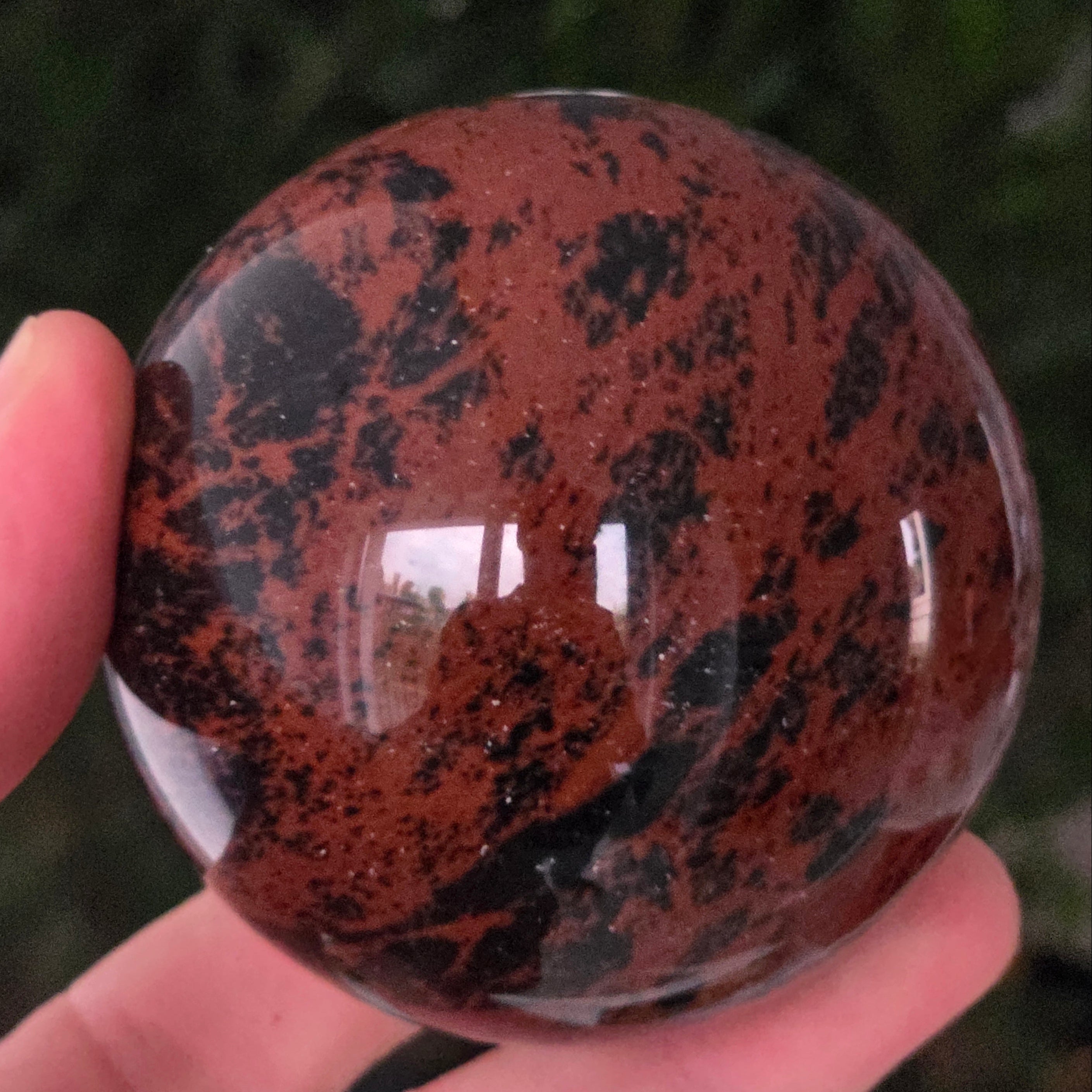 Lasă-te inspirat de forța liniștită a Pământului prin această sferă din obsidian mahon.