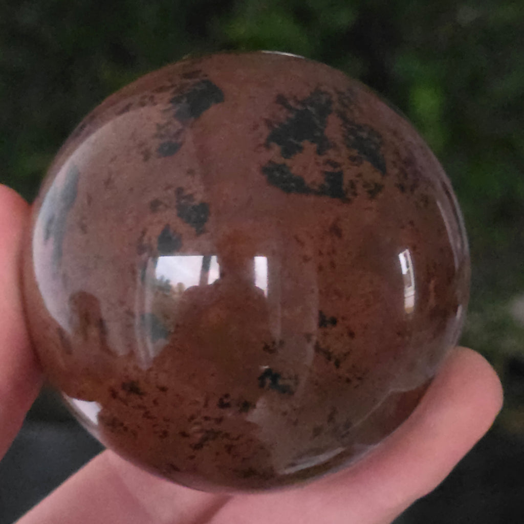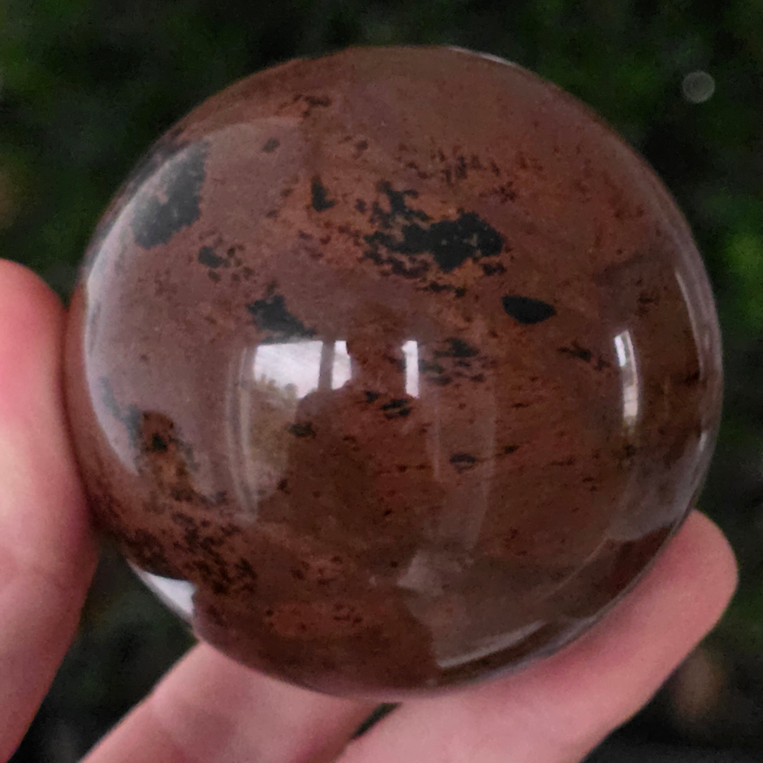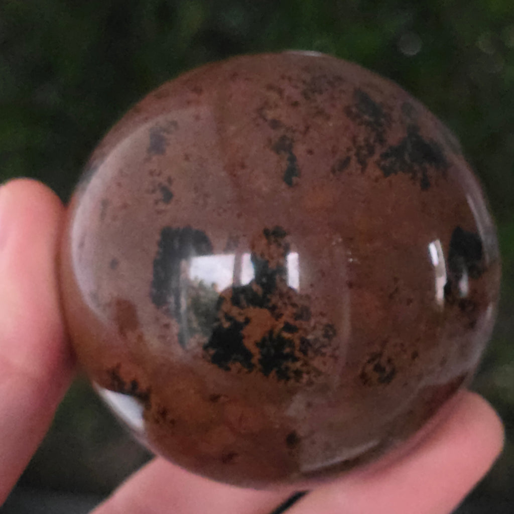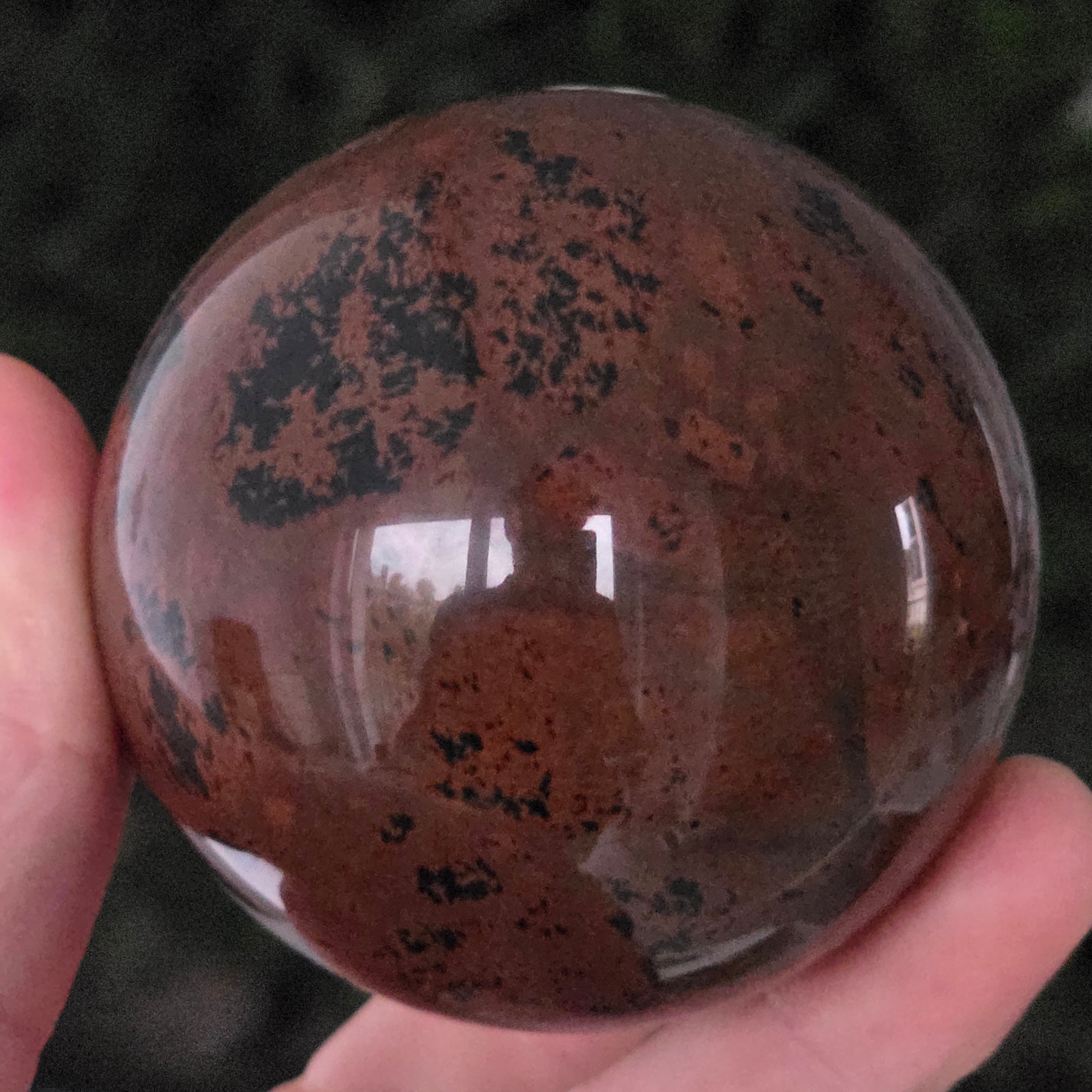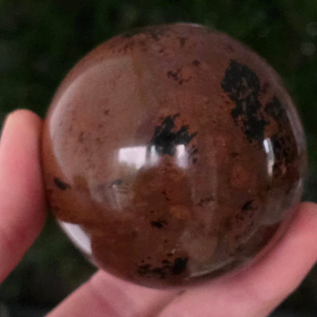 Lasă-te inspirat de forța liniștită a Pământului prin această sferă din obsidian mahon.