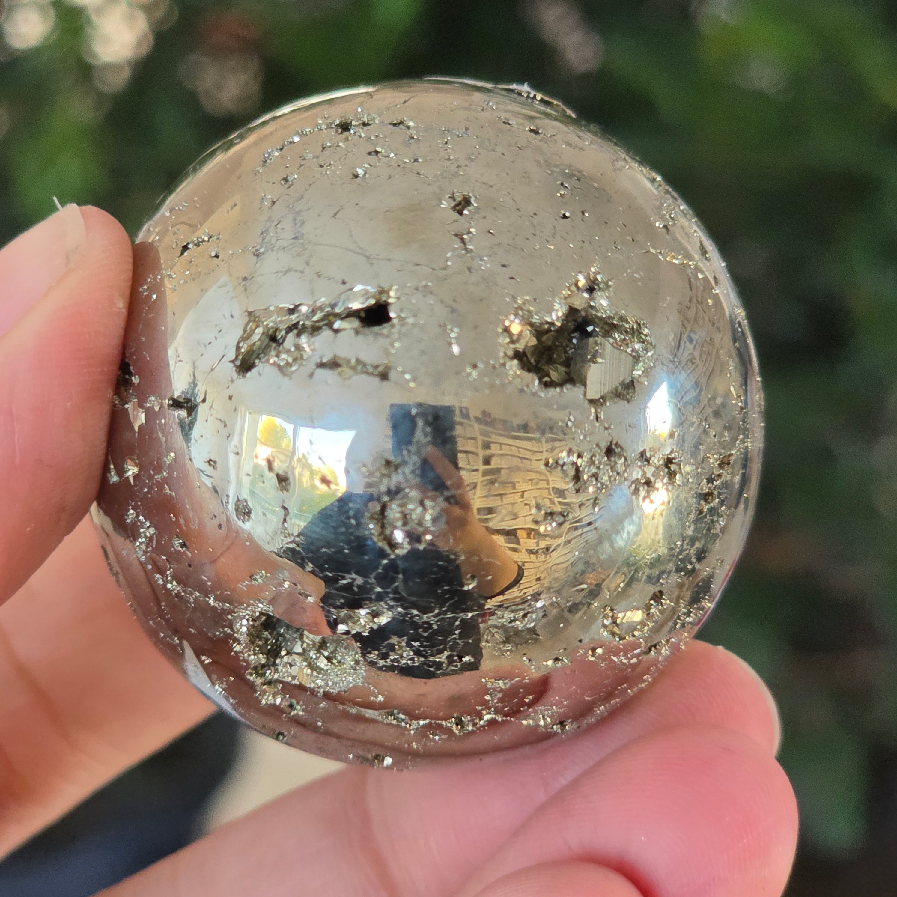 Sfera din pirita peruviană emană putere, abundență și claritate mentală. Fiecare reflex auriu amintește de lumina conștienței și de forța interioară care transformă intențiile în realitate. O piesă spectaculoasă, potrivită atât pentru colecționari, cât și ca obiect decorativ cu energie vibrantă.