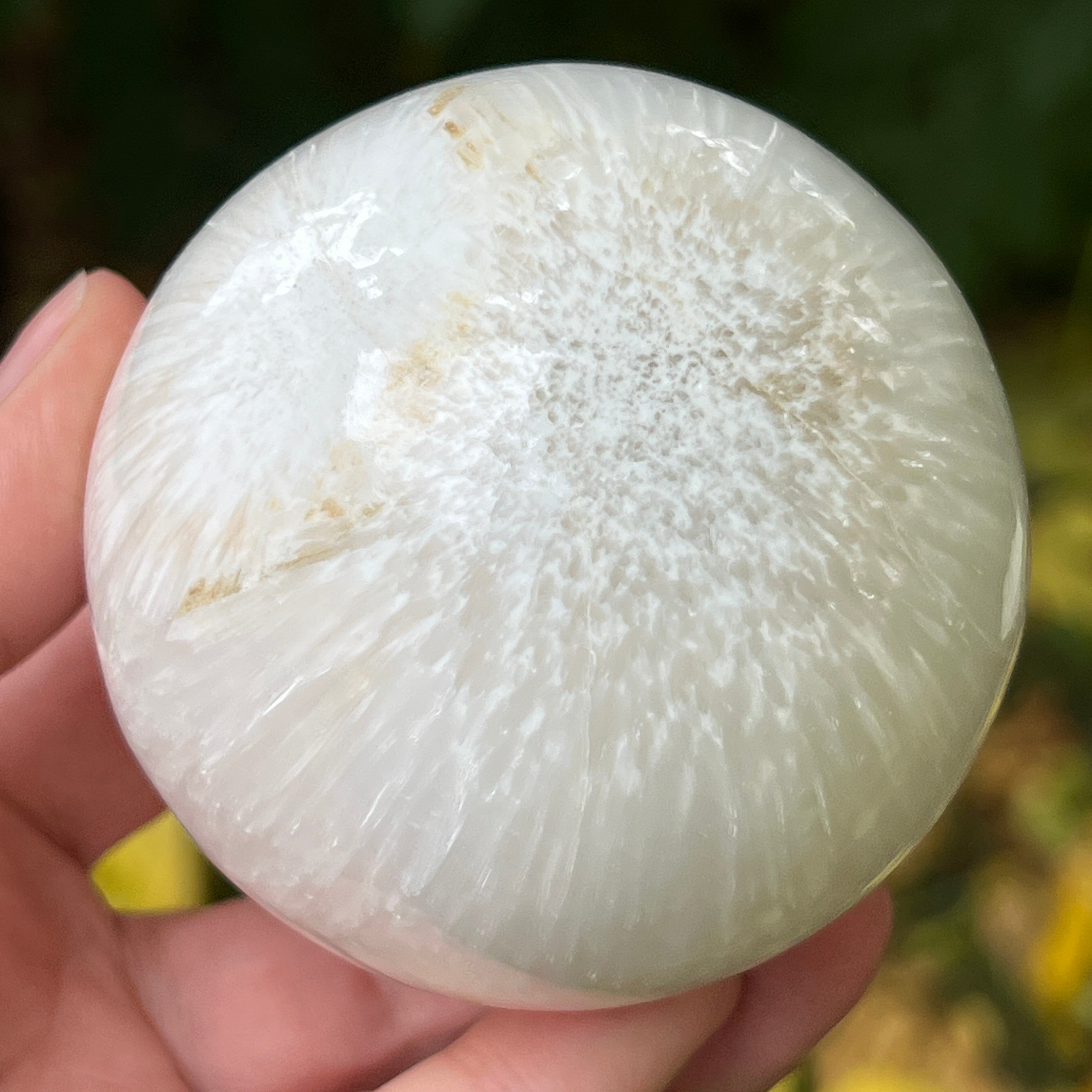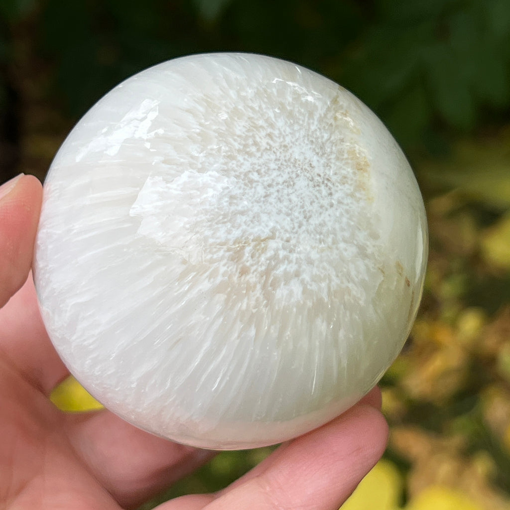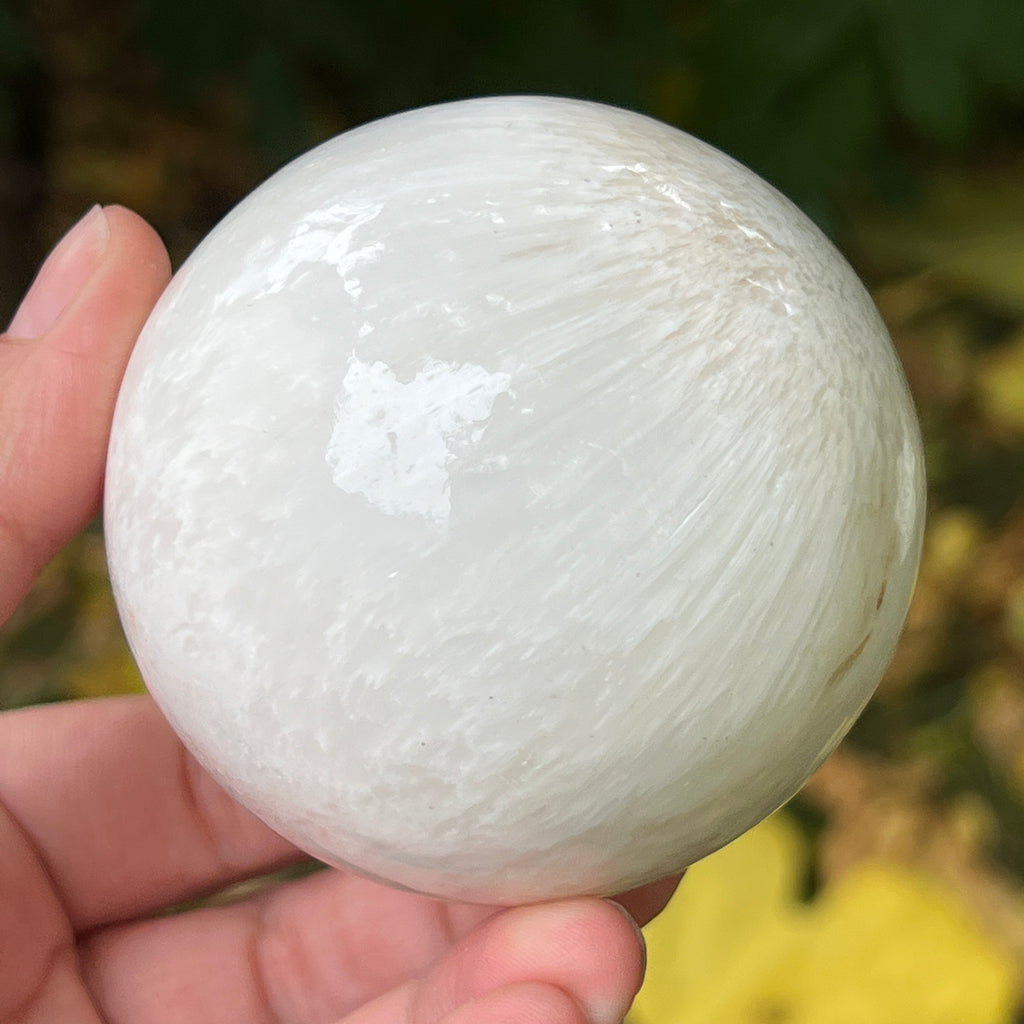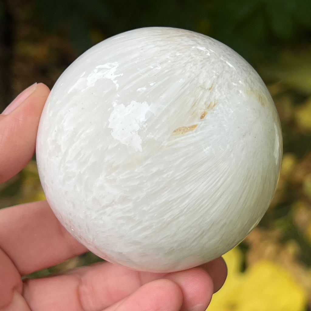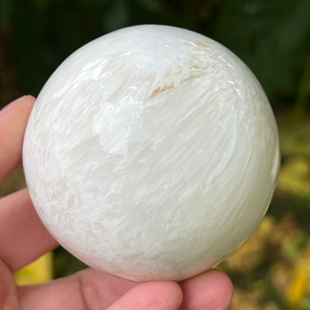 Scolecitul este o piatră delicată și luminoasă, aparținând familiei zeoliților, recunoscută pentru structura sa fină, fibros-radială și strălucirea mătăsoasă. De obicei albă sau crem, uneori cu nuanțe subtile de roz sau bej, această piatră emană o puritate aproape eterică, amintind de calmul lăuntric și de tăcerea din care se naște pacea.