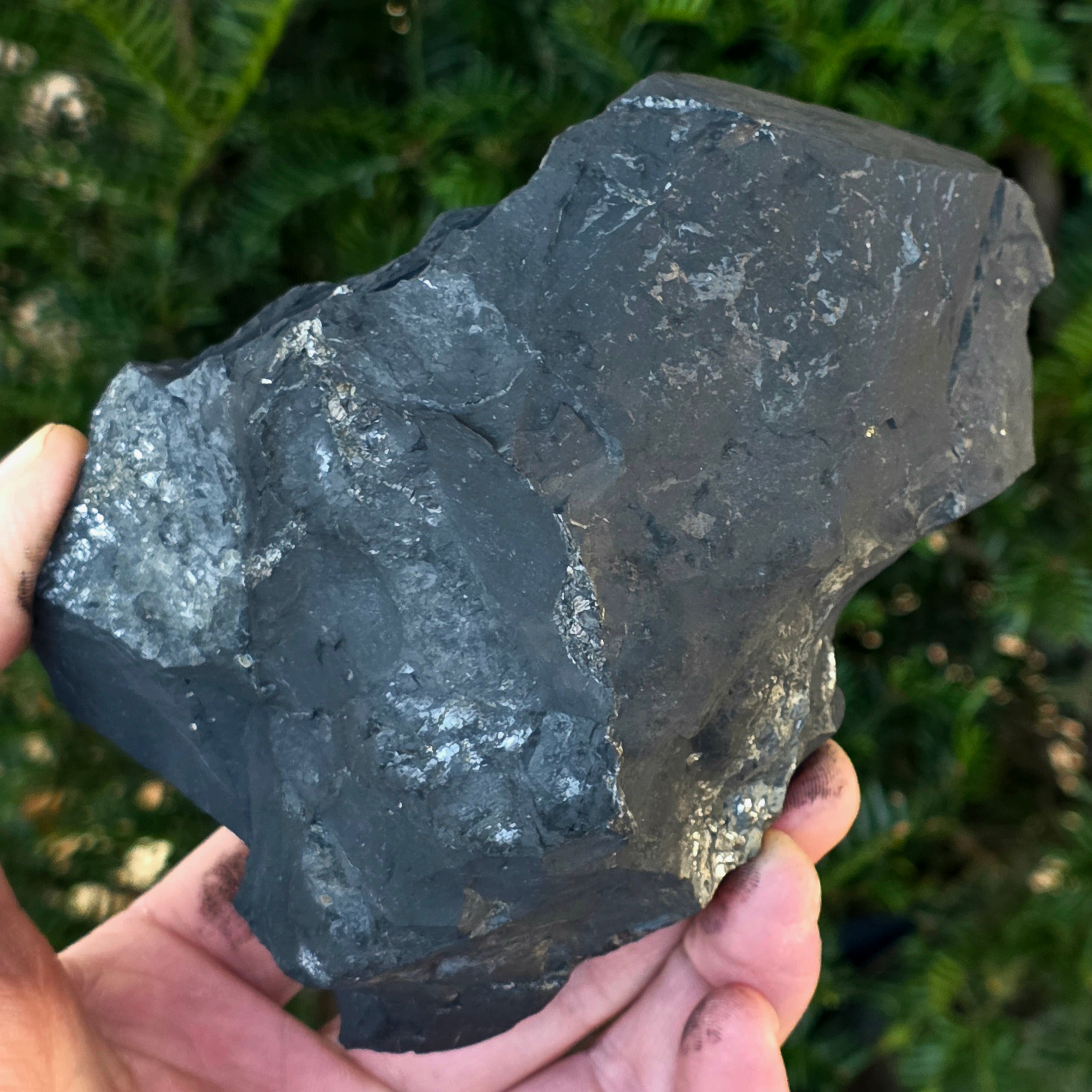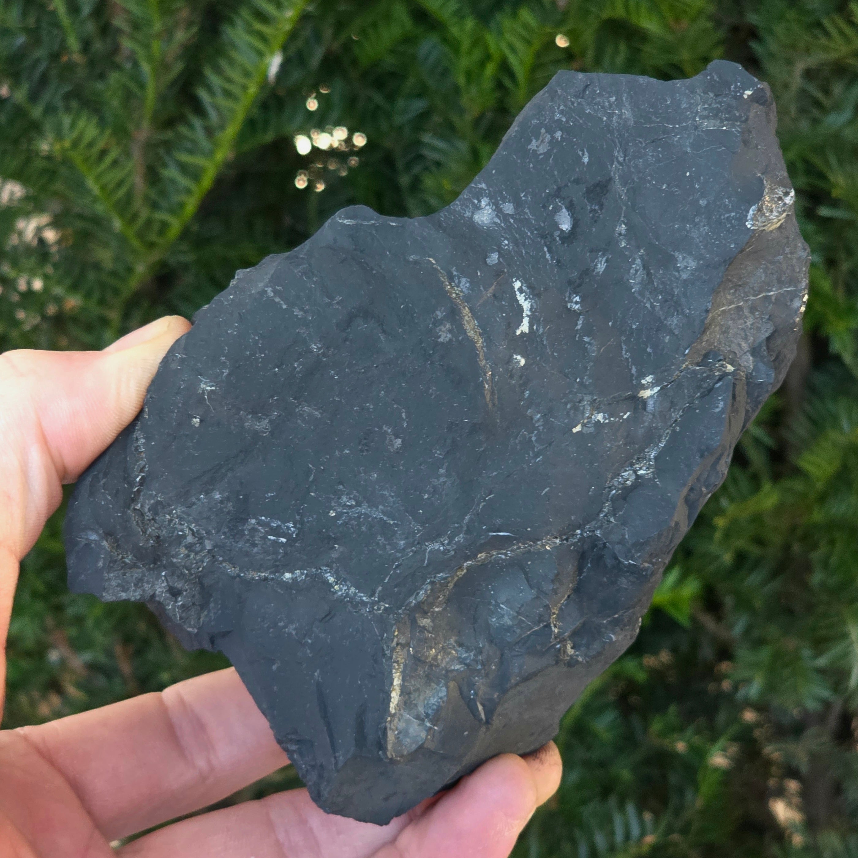 Le shungite est une pierre inhabituelle, originaire de la région de la Commerie en Russie. Il a une composition complexe, contenant du carbone, du silicate d'aluminium, de l'oxyde de fer, du magnésium, du calcium et d'autres minéraux.