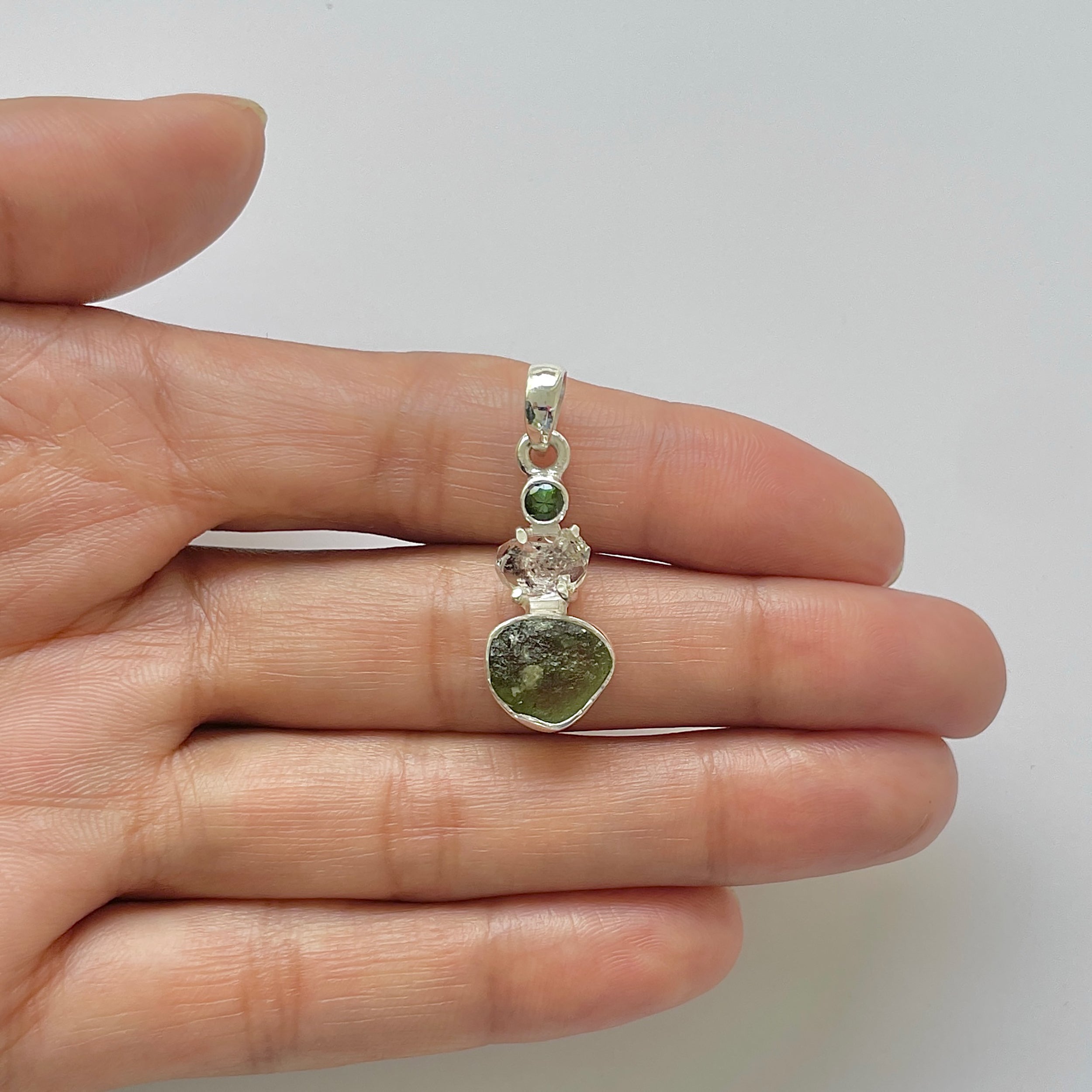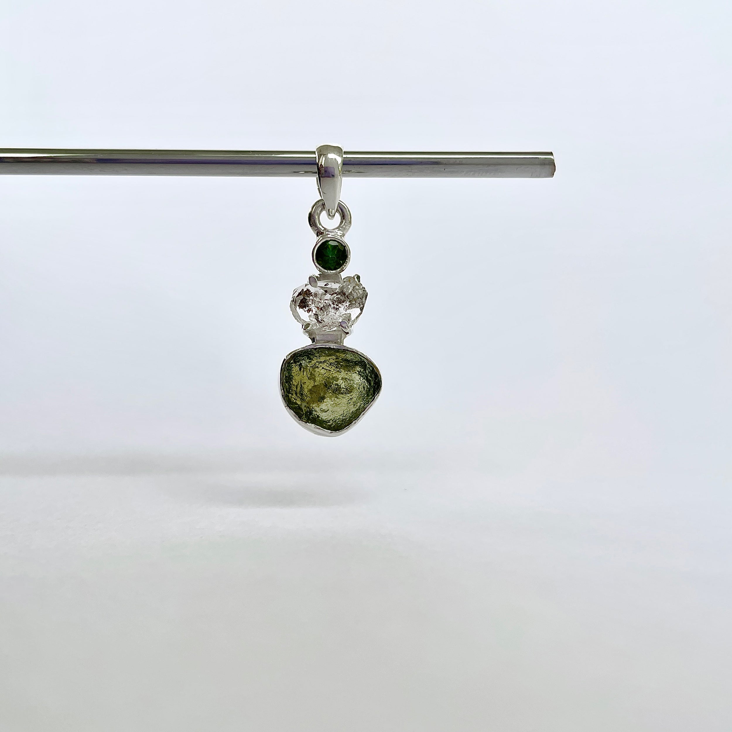 Taille de la pierre : Moldavite ~ 1 x 0,6 cm, Herkimer ~ 1 x 0,6 cm