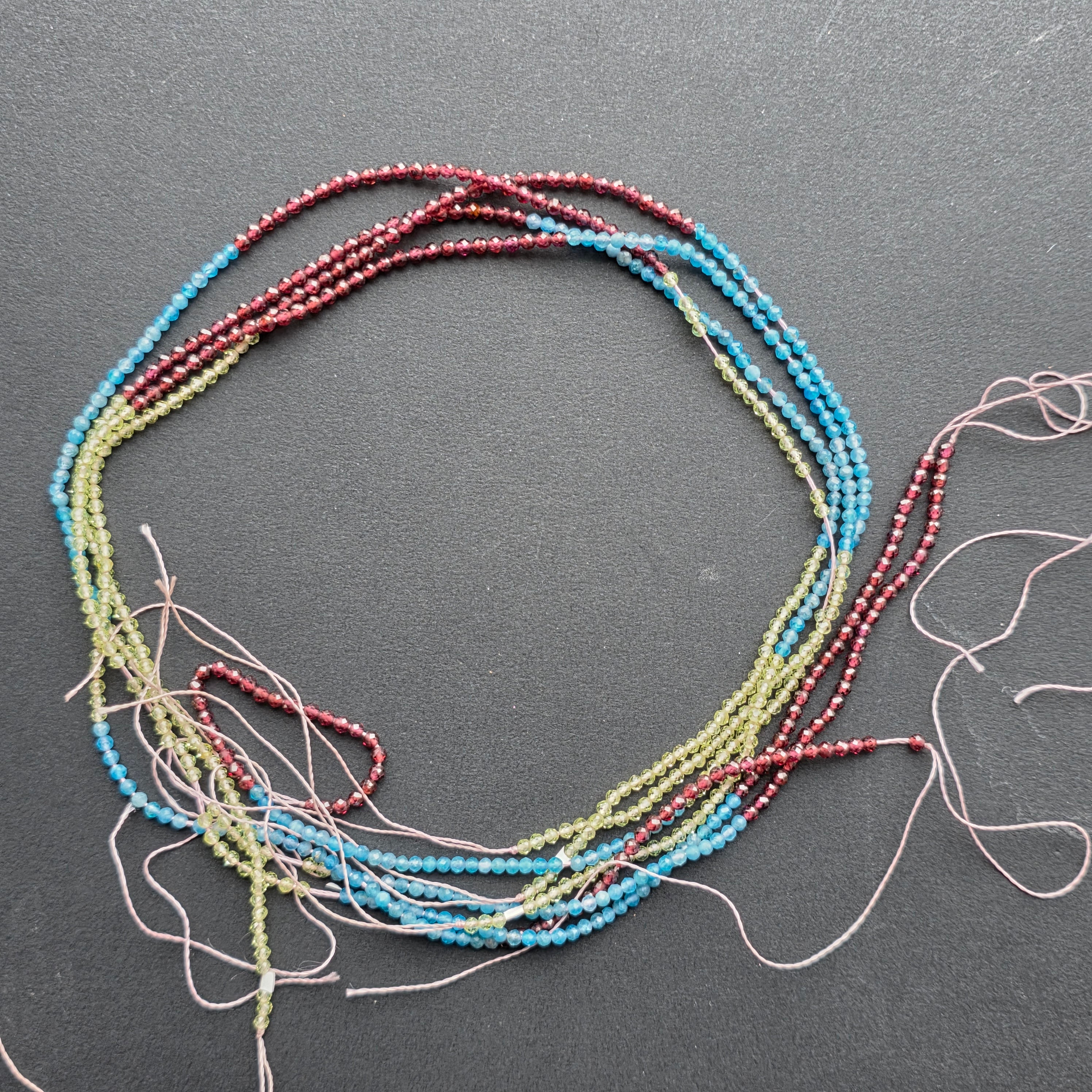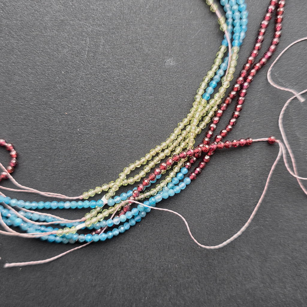Sirag margele fatetate pietre semipretioase mix PERIDOT, APATIT, GRANAT