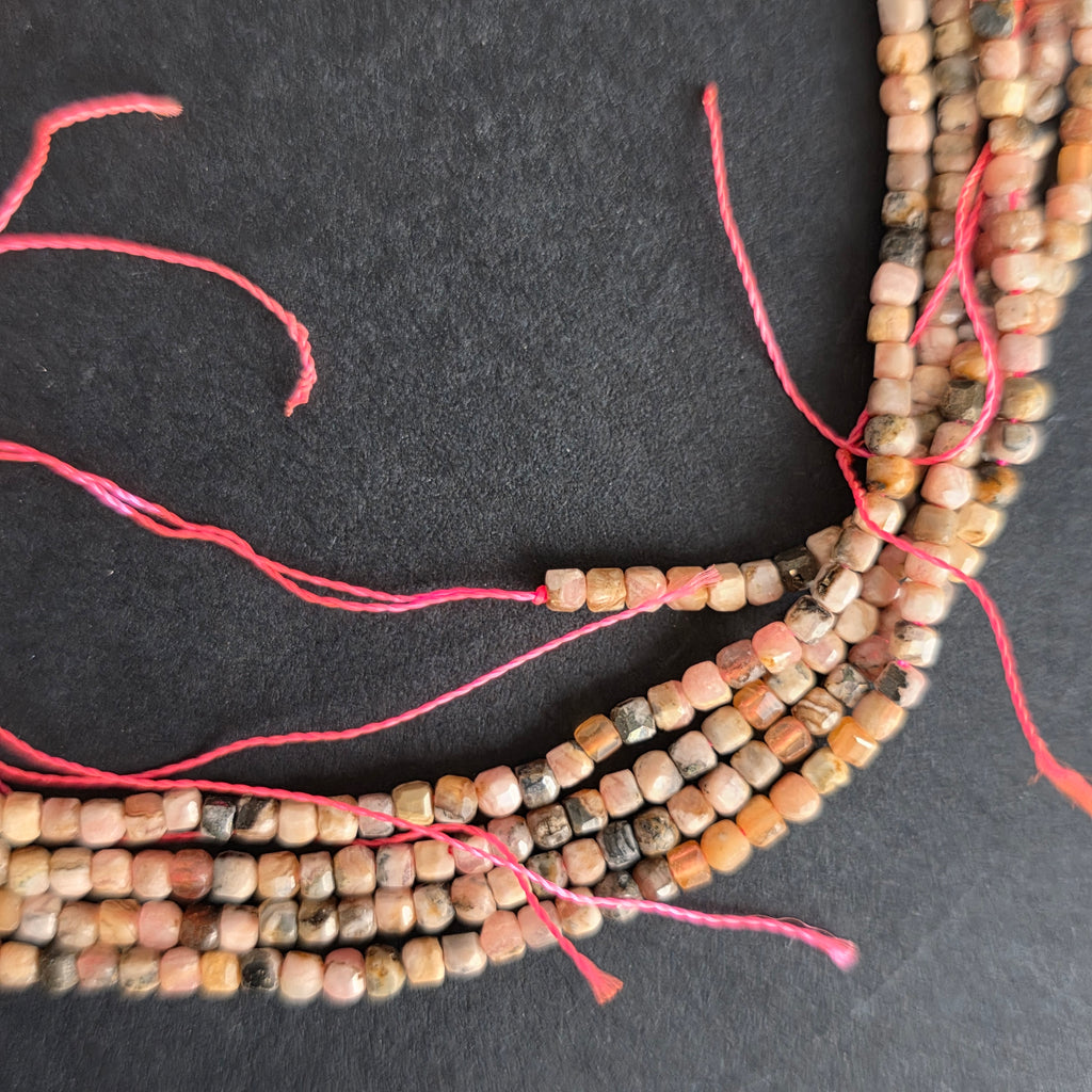 Sirag de RODOCROZIT, alcătuit din cuburi fatetate naturale, perfect pentru coliere, brățări sau alte bijuterii handmade.