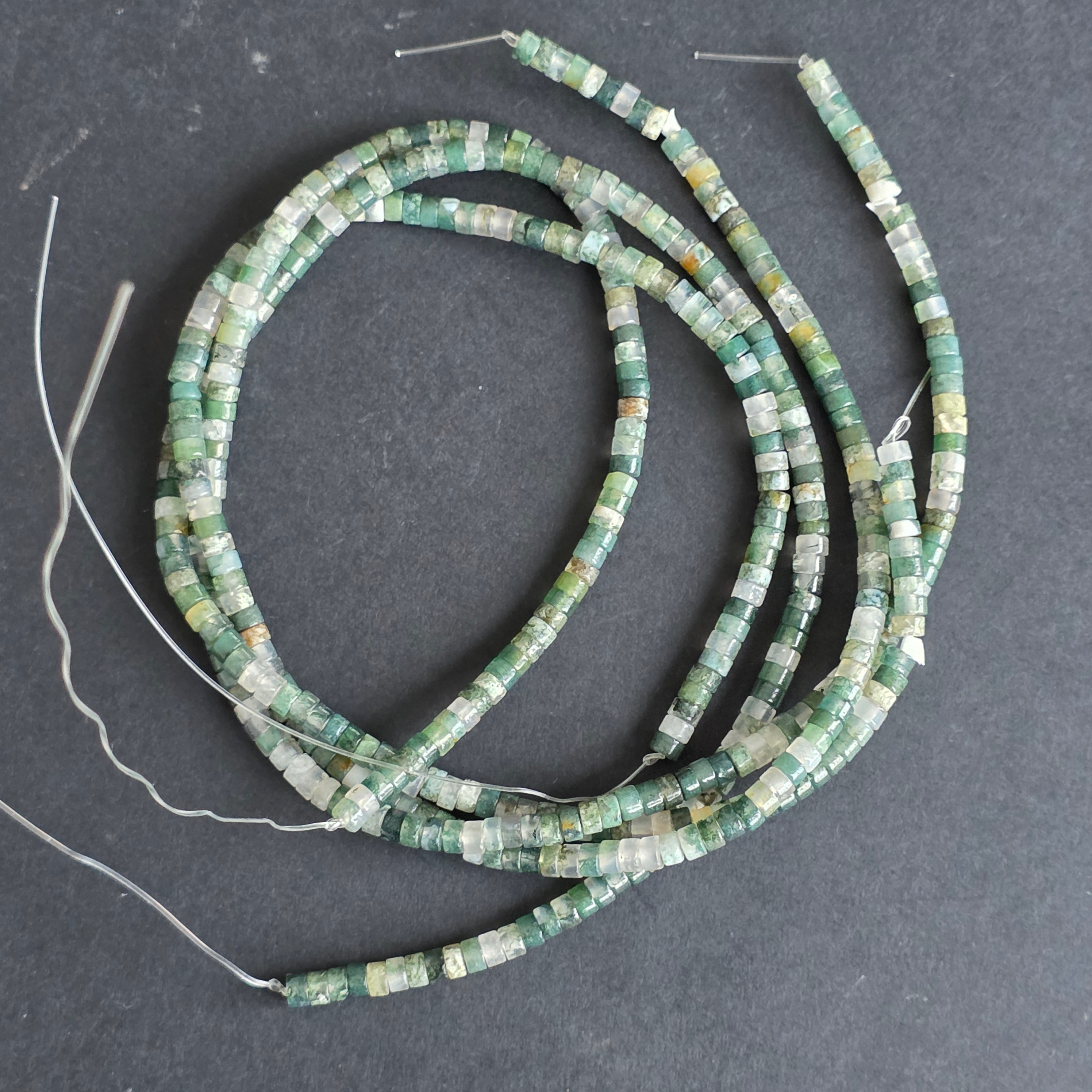 Sirag de AGAT MOSS, alcătuit din discuri naturale, perfect pentru coliere, brățări sau alte bijuterii handmade.
