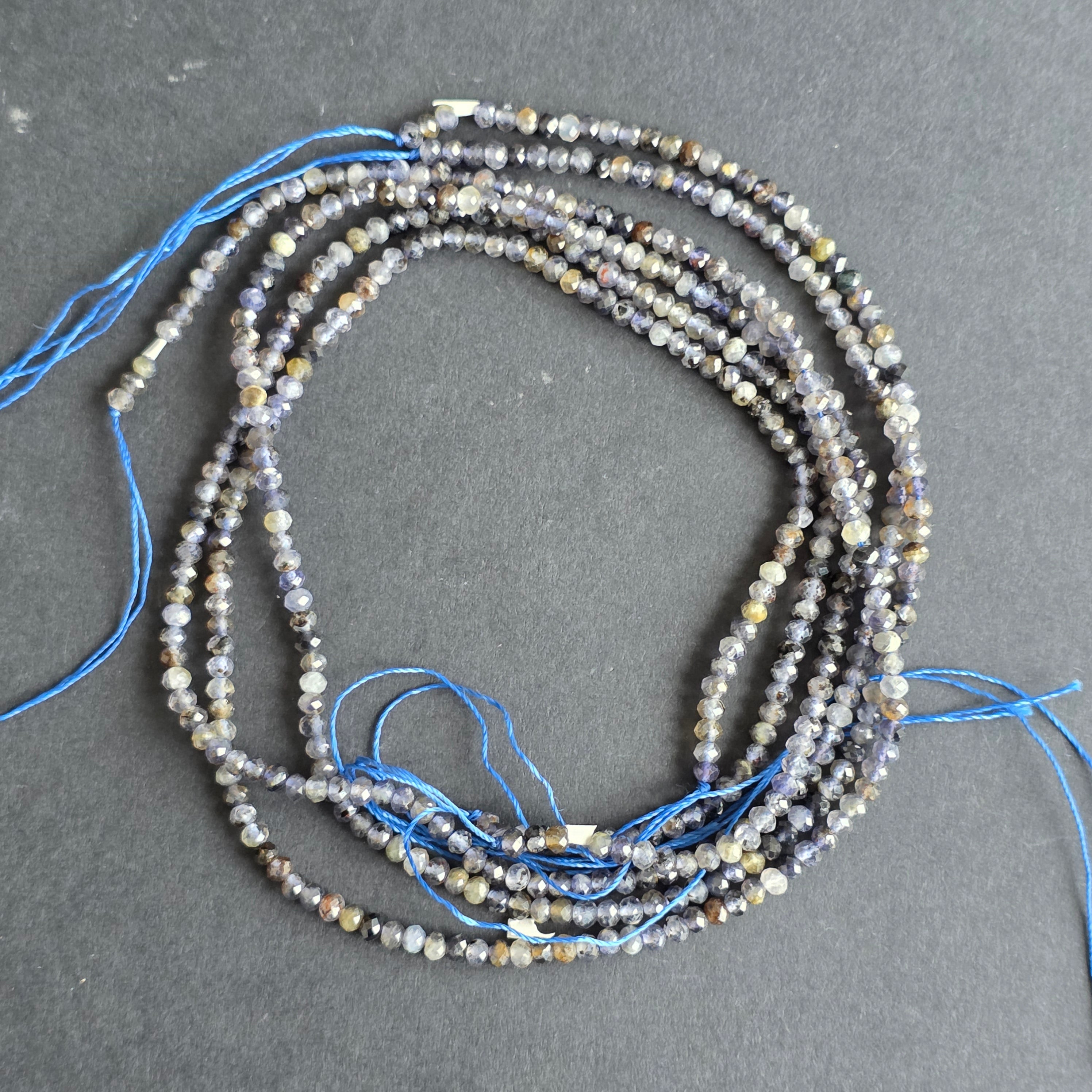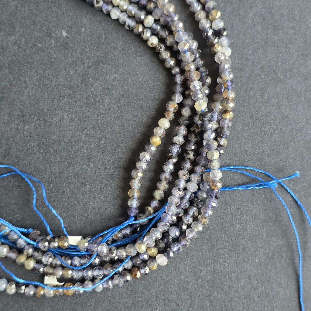 Sirag de sfere iolit, alcătuit din discuri fatetate naturale, perfect pentru coliere, brățări sau alte bijuterii handmade.