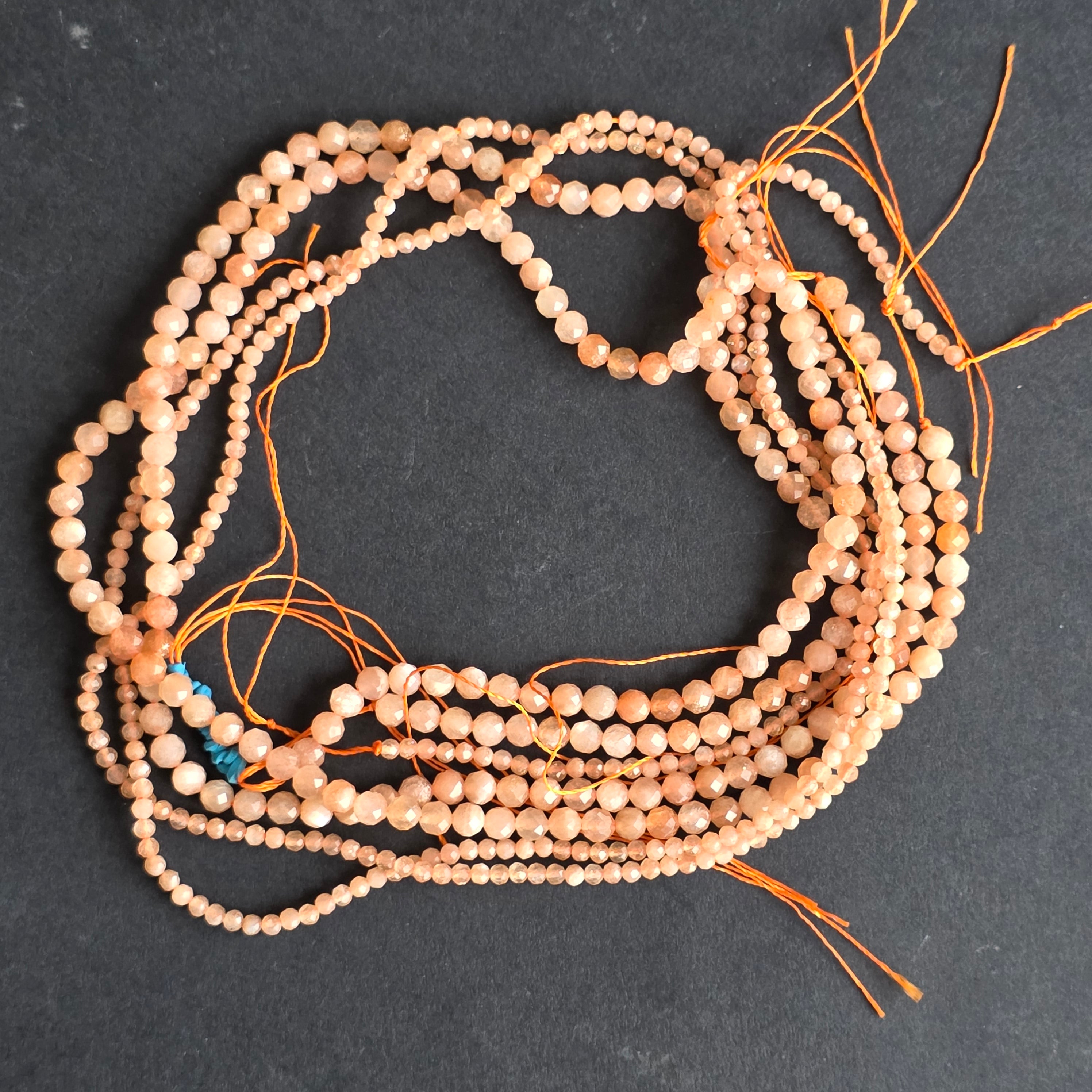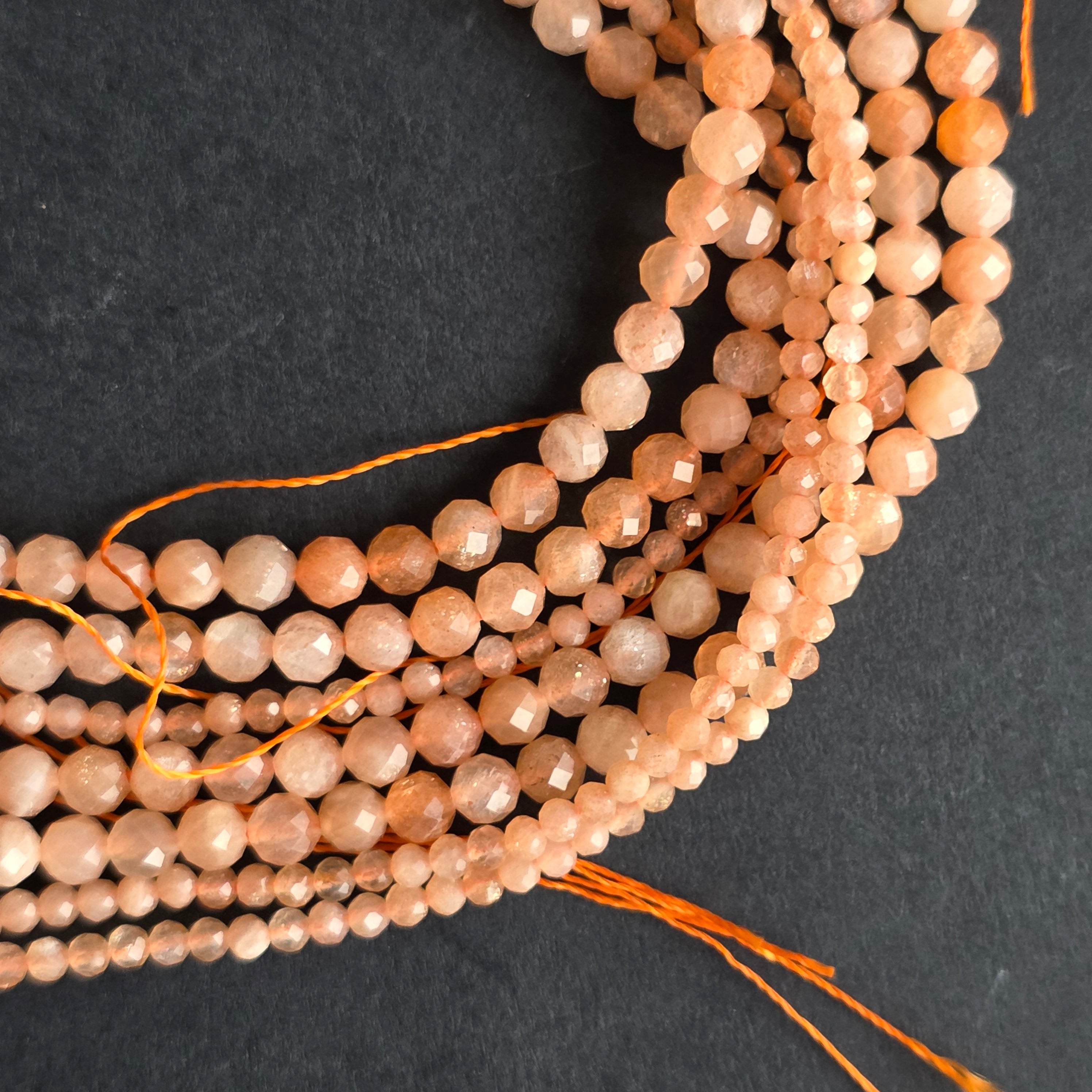 Șirag de PIATRA SOARELUI alcătuit din mărgele fatetate sferice naturale, perfect pentru coliere, brățări sau alte bijuterii handmade.
