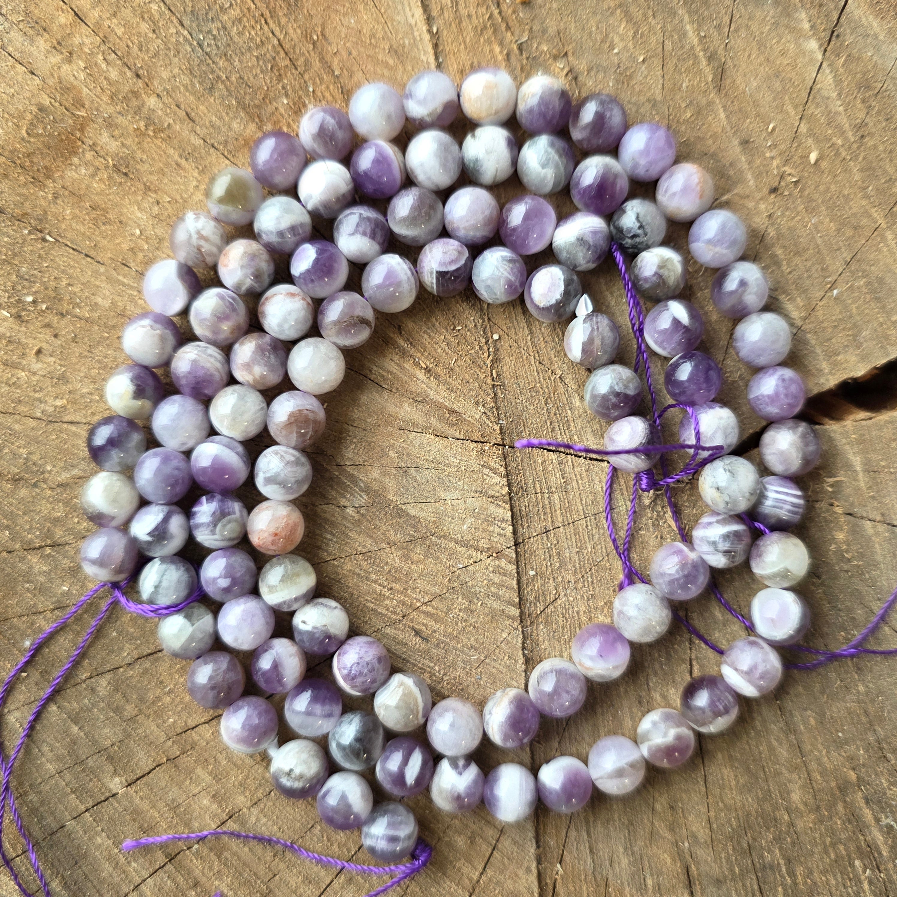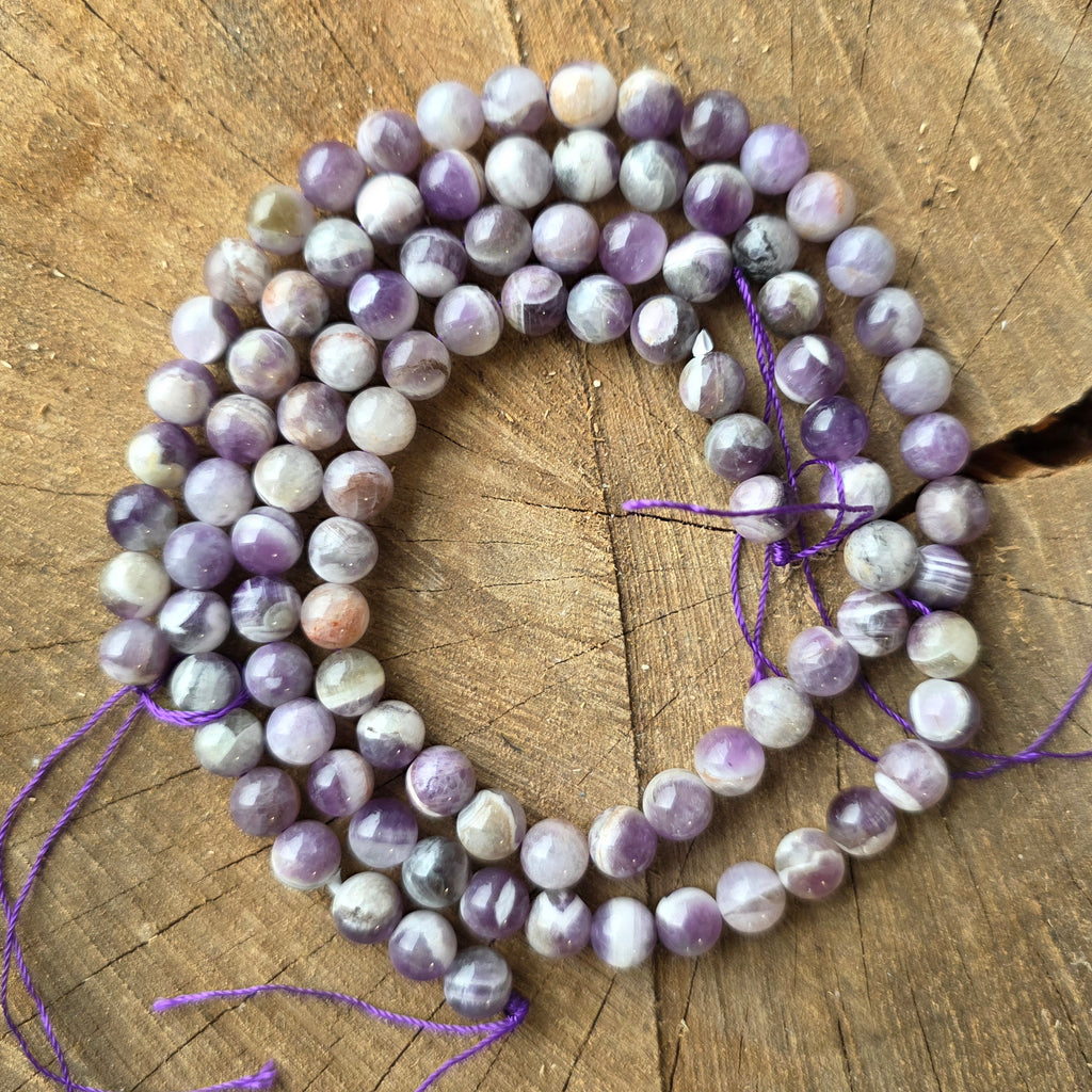 Sirag de AMETIST CHEVRON, alcătuit din mărgele sferice naturale, perfect pentru coliere, brățări sau alte bijuterii handmade.