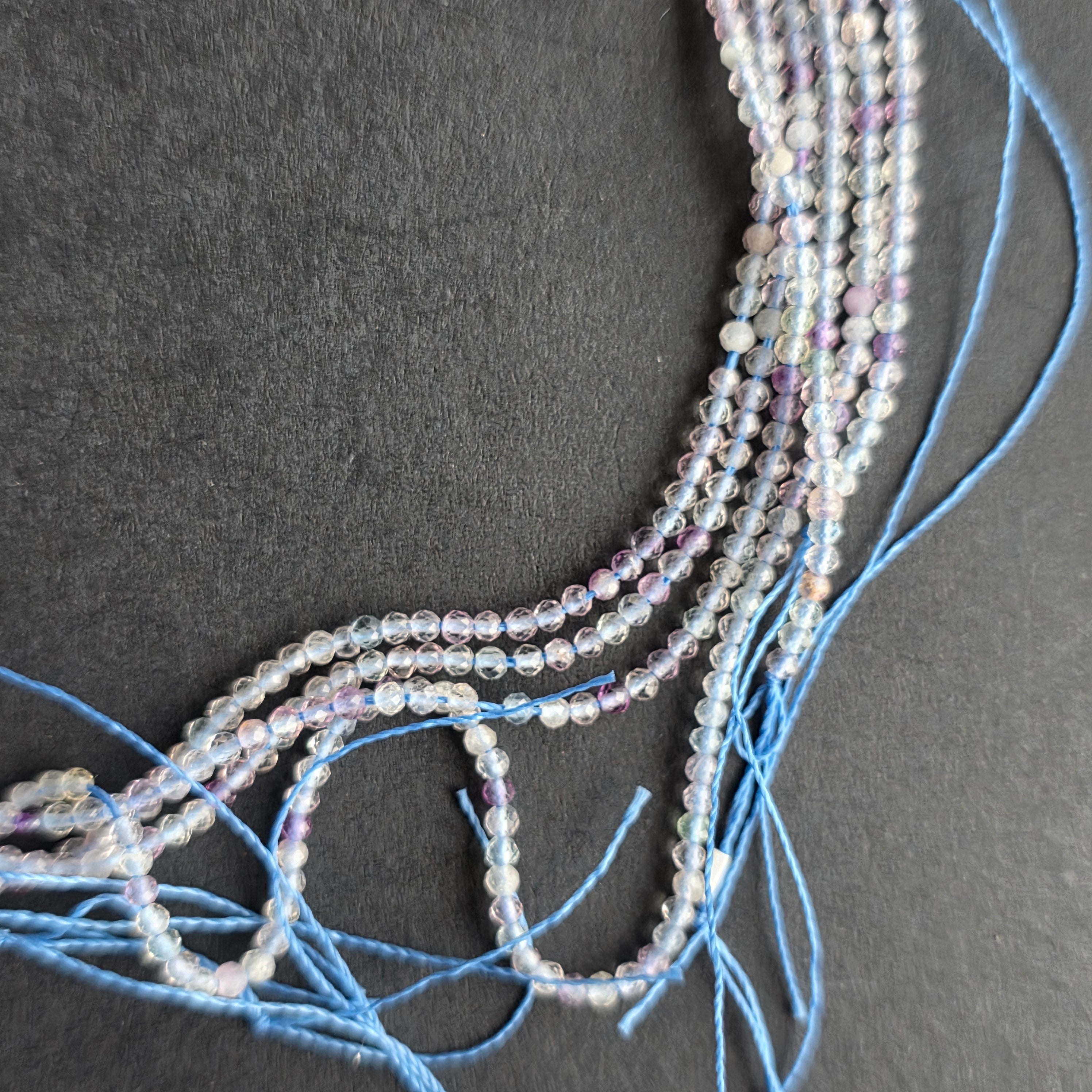 Șirag de FLUORIT, alcătuit din mărgele sferice FAȚETATE naturale, perfect pentru coliere, brățări sau alte bijuterii handmade.