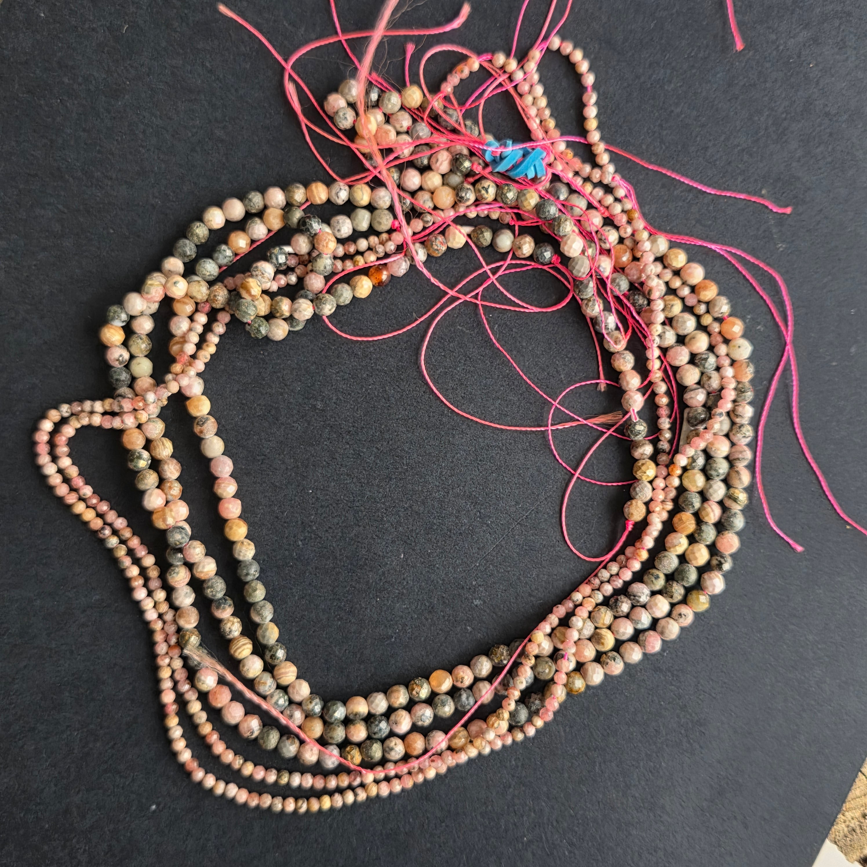 Sirag de RODOCROZIT, alcătuit din mărgele sferice fatetate naturale, perfect pentru coliere, brățări sau alte bijuterii handmade.