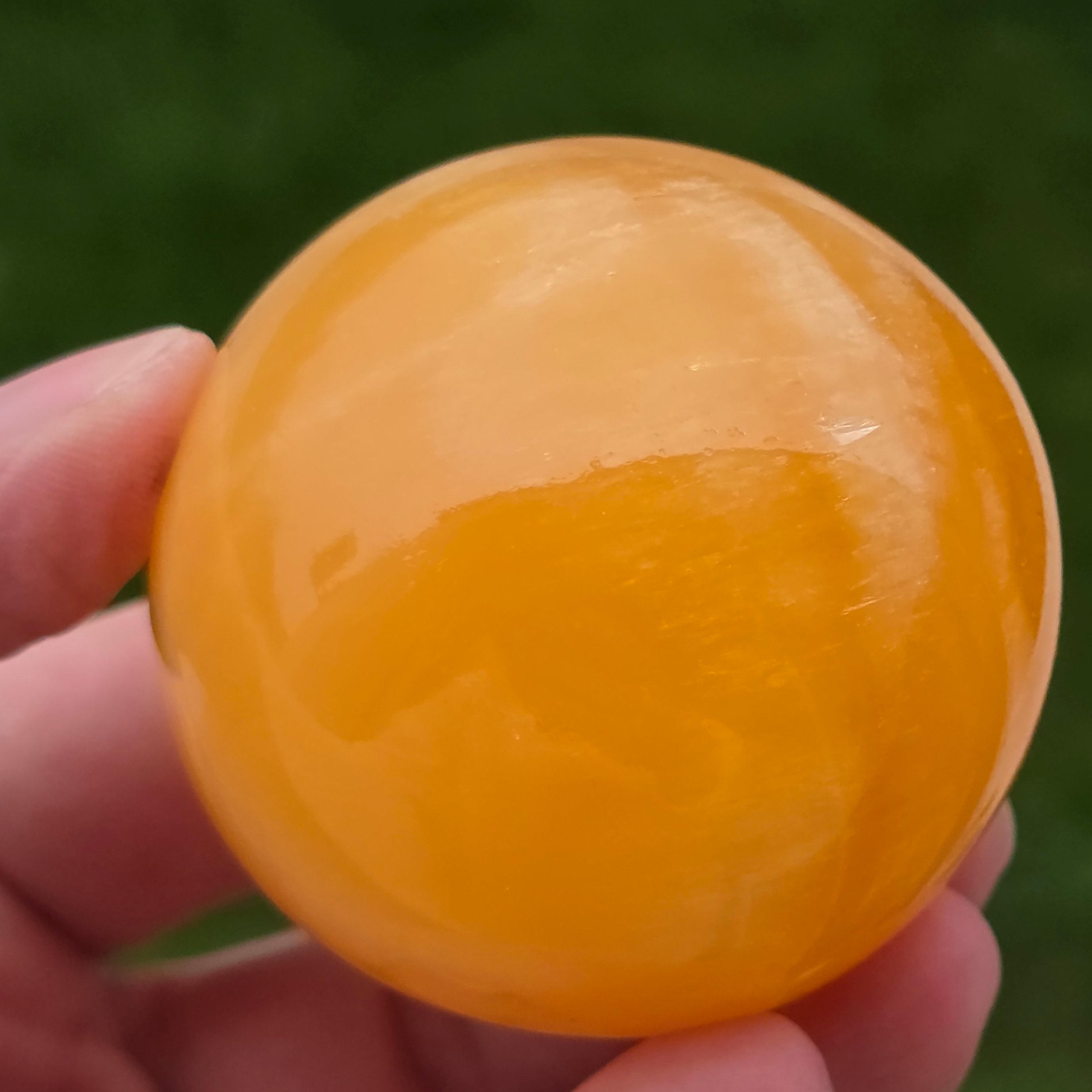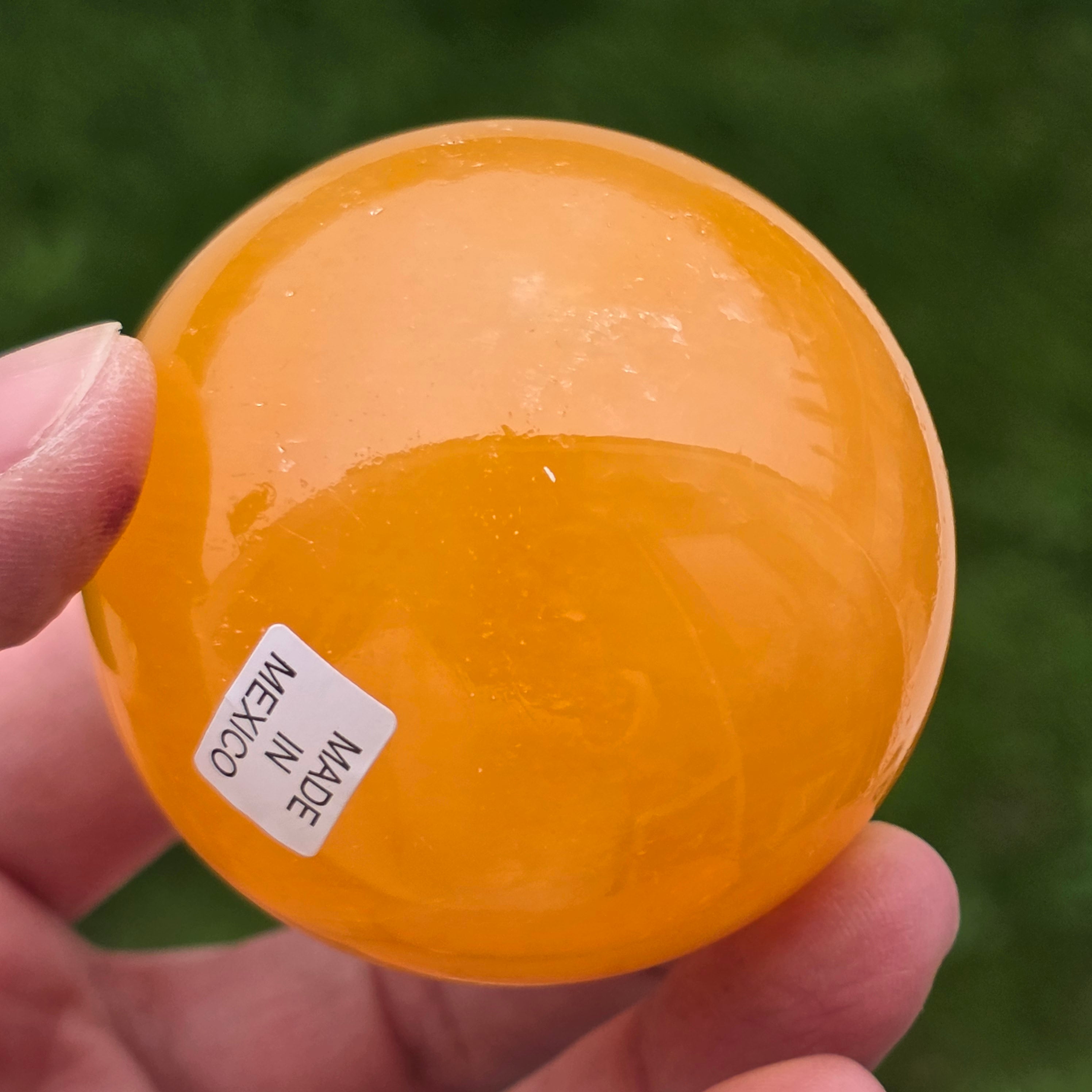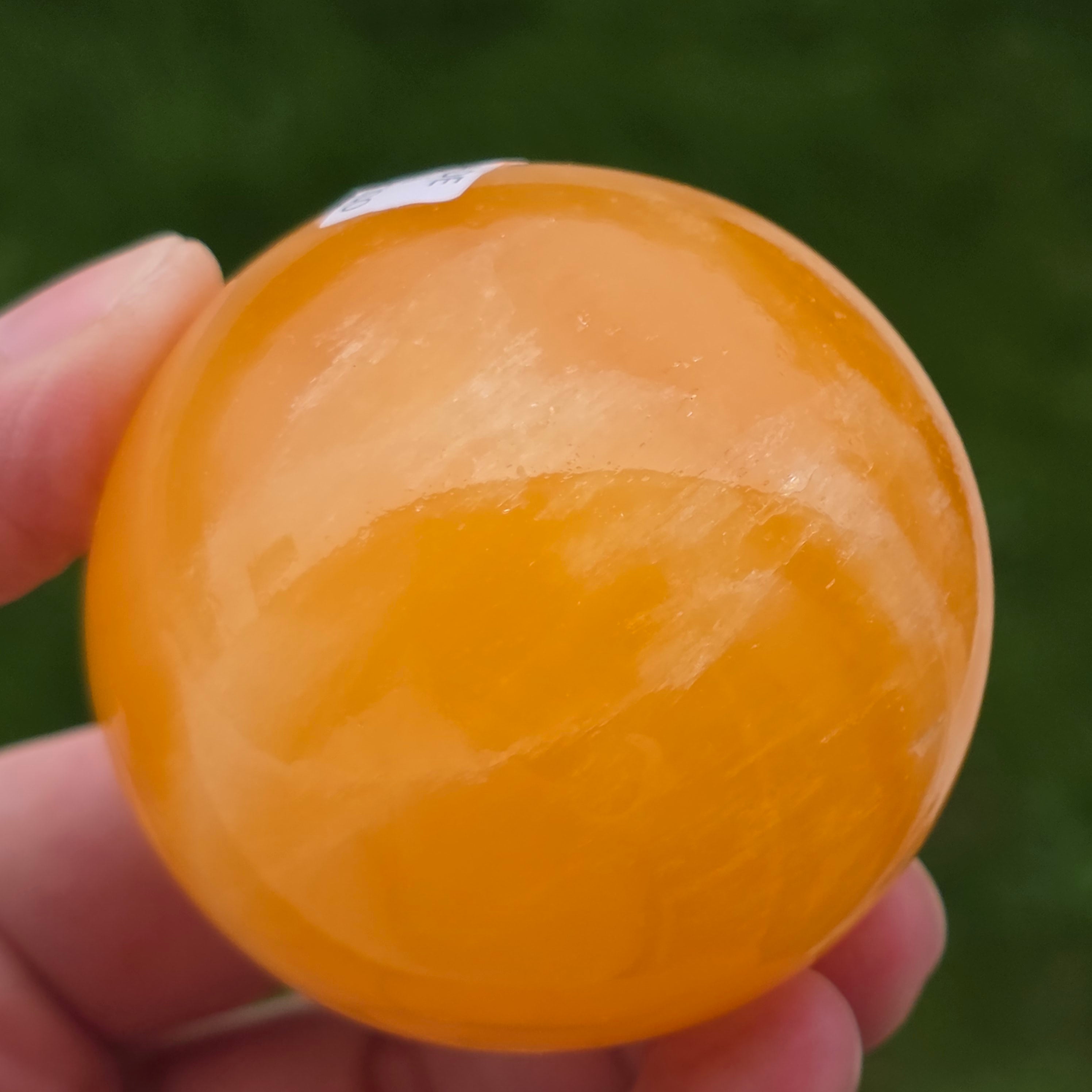 Sphère en calcite zèbre orange modèle 2, taille : 7,8 cm