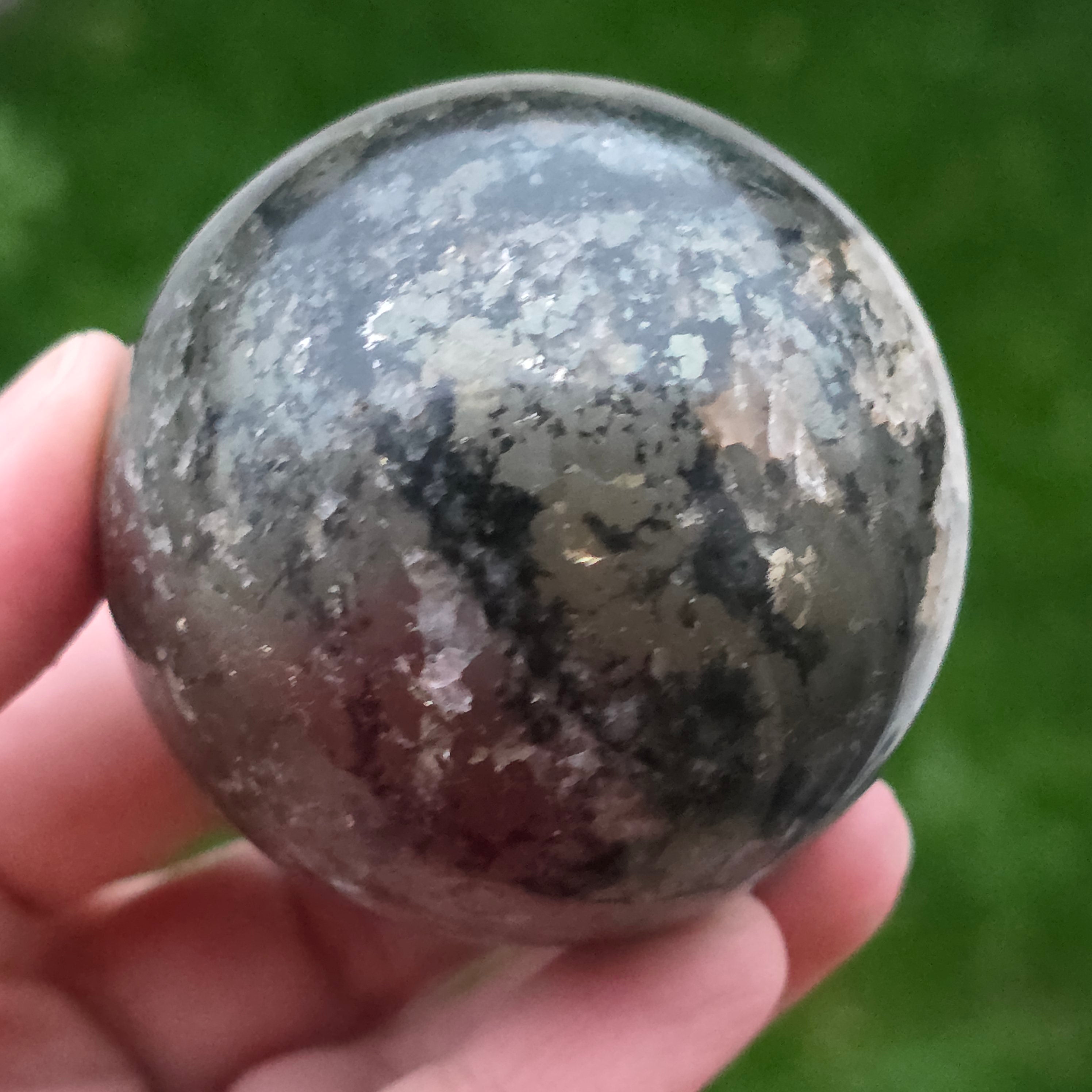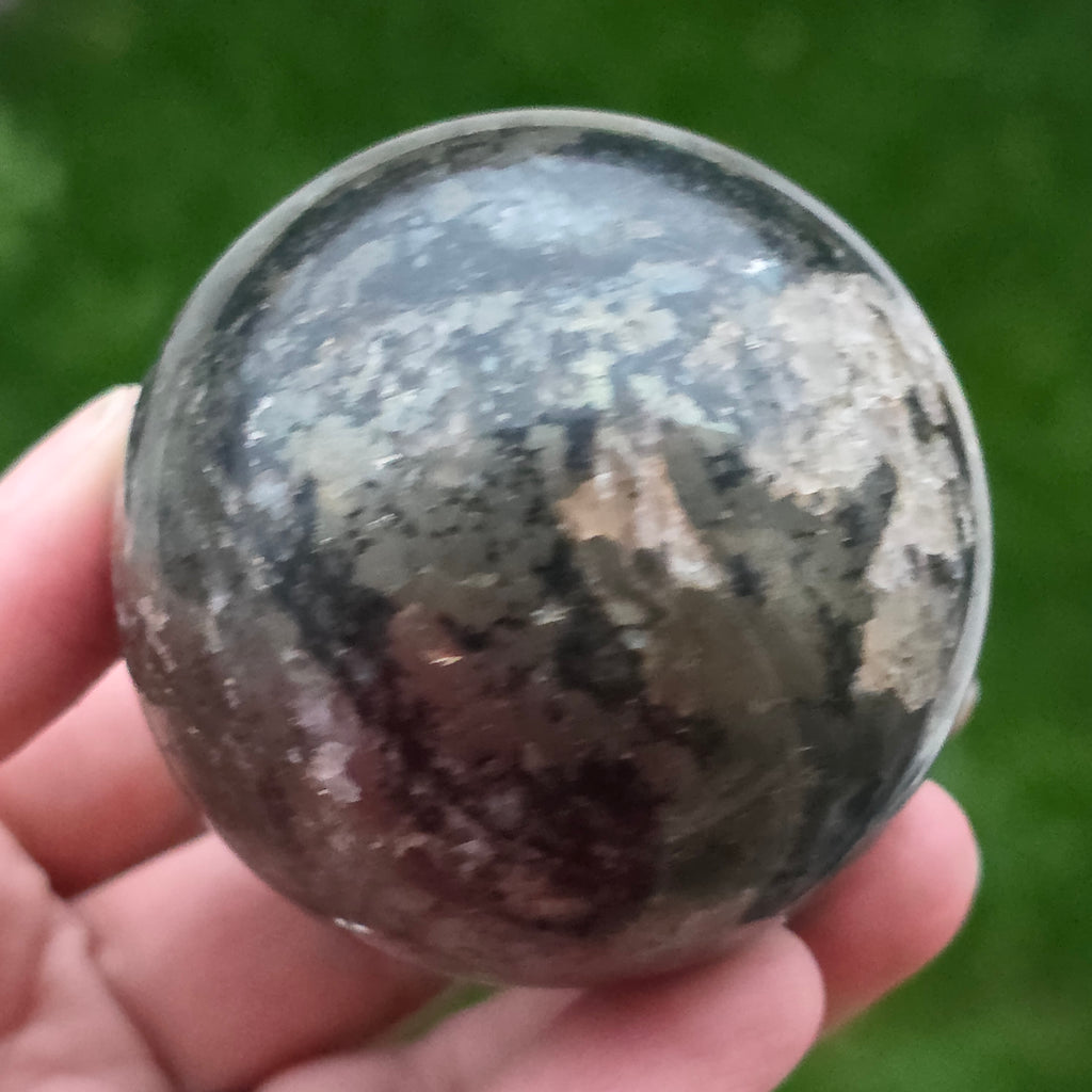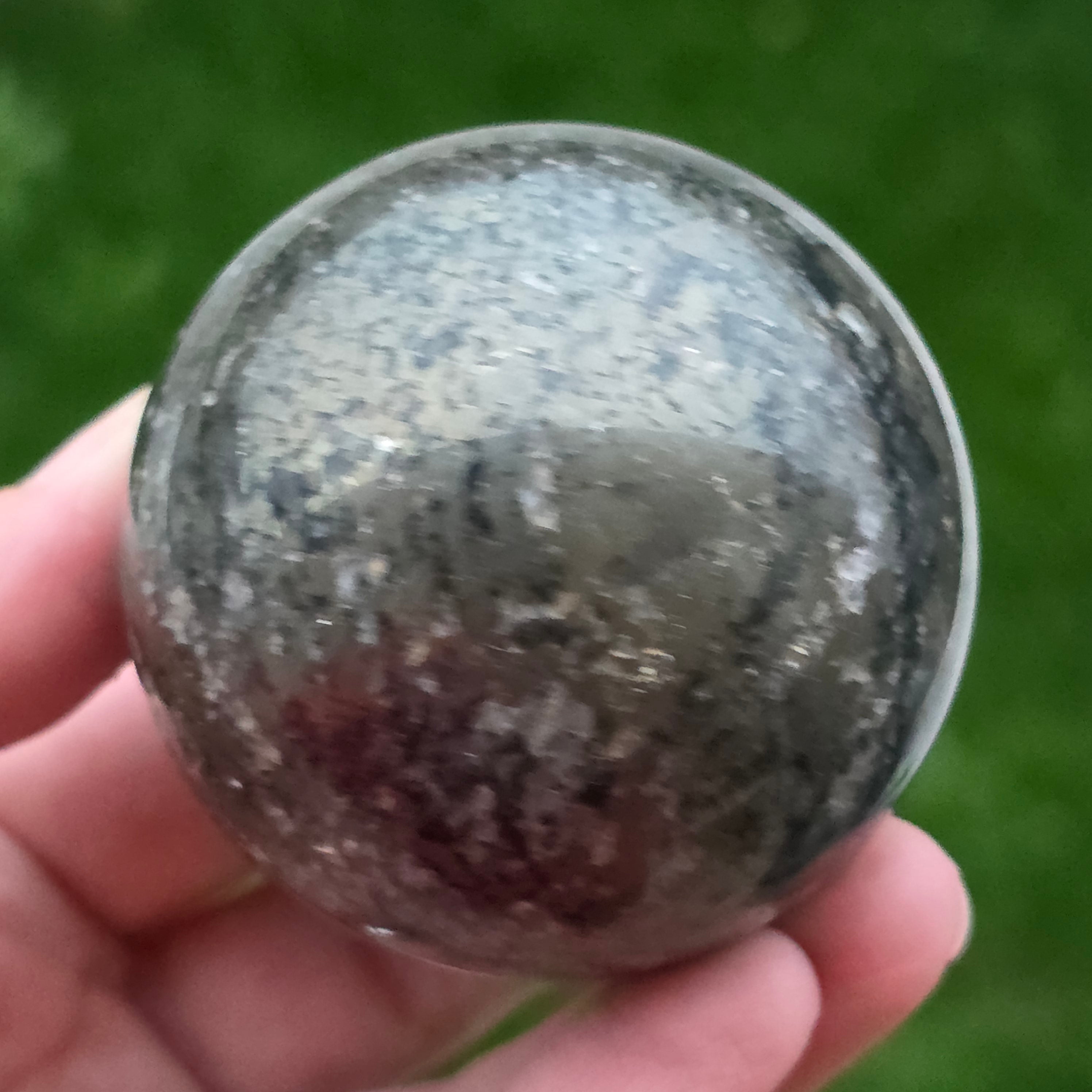 Sphère en pyrite modèle 3, taille : 5,5 cm
