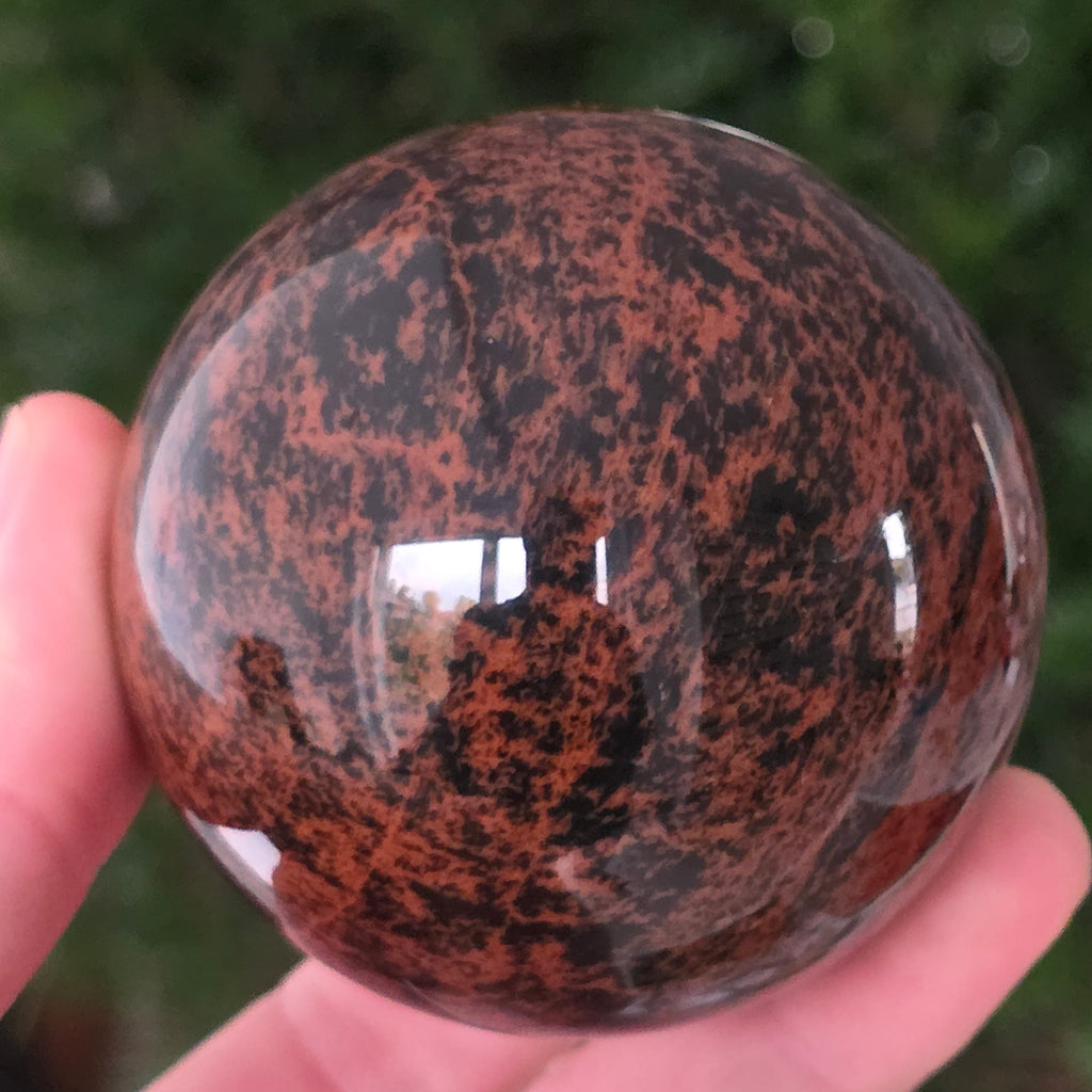 Celui-ci sphère d'obsidienne en acajou c'est une incarnation de la force primordiale de la Terre – une pierre d'enracinement, de sécurité et de transformation intérieure.