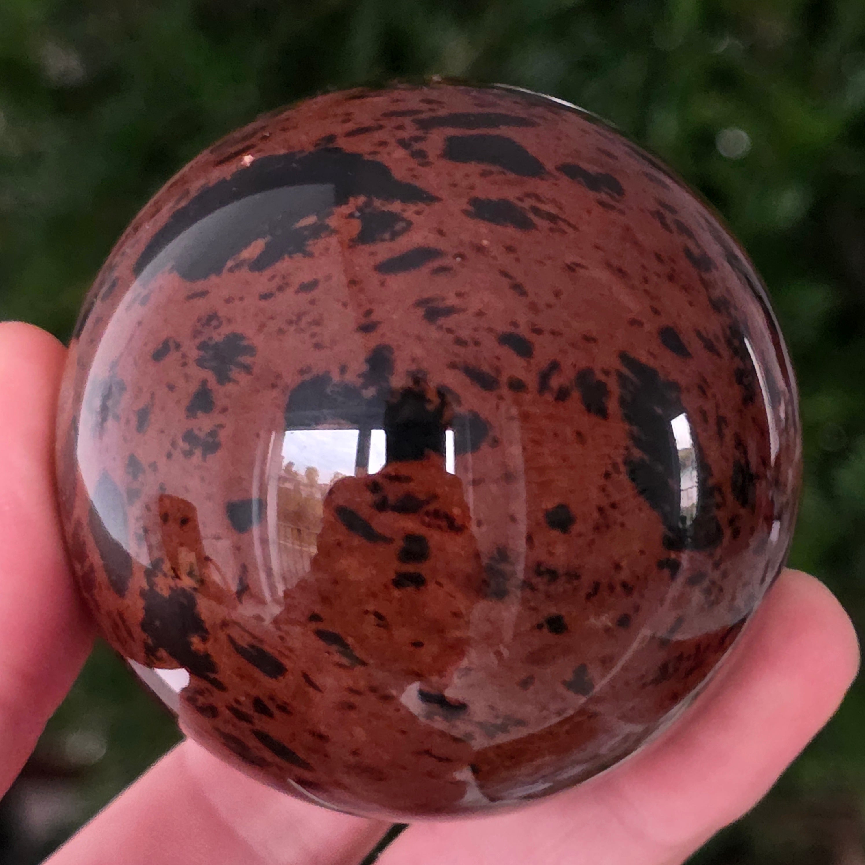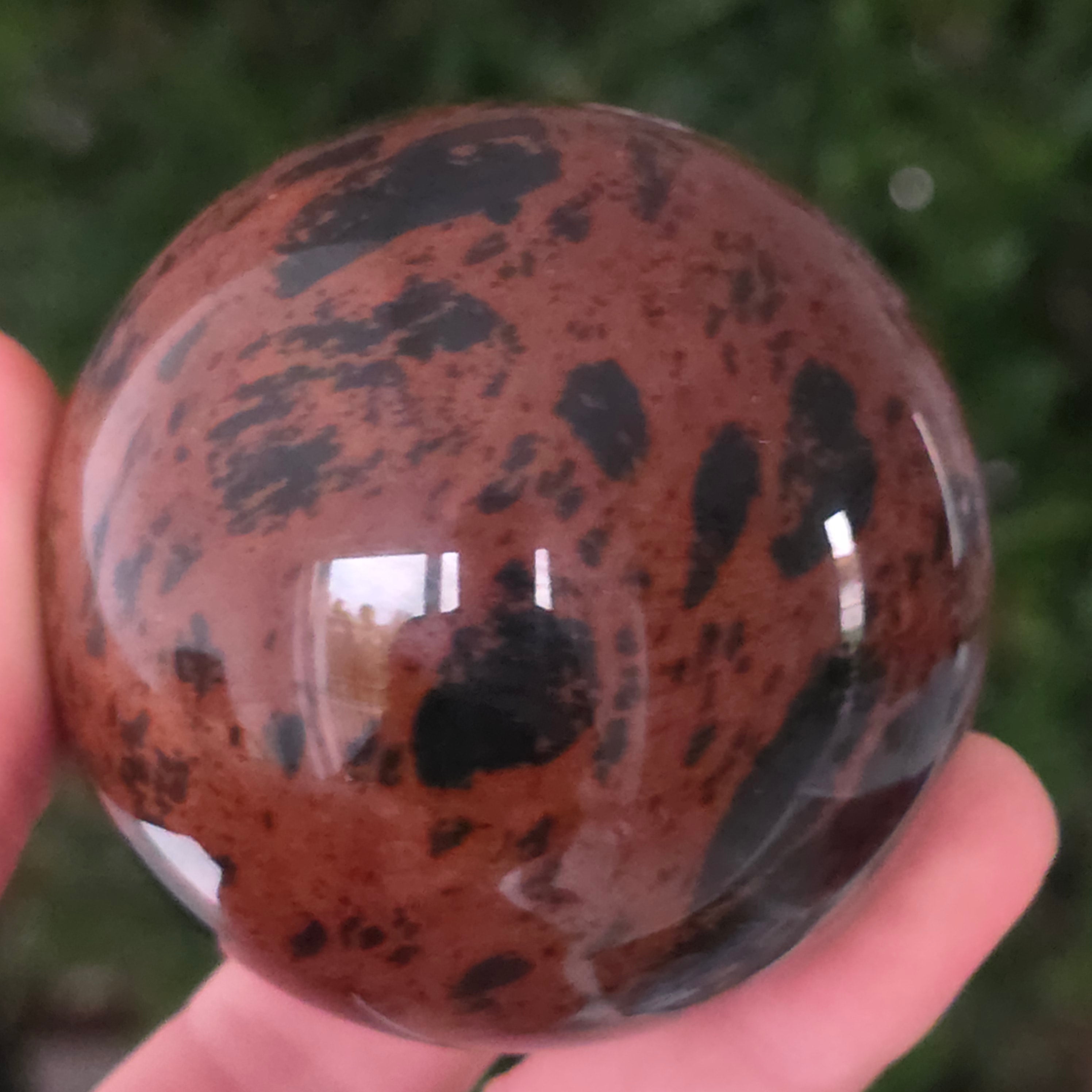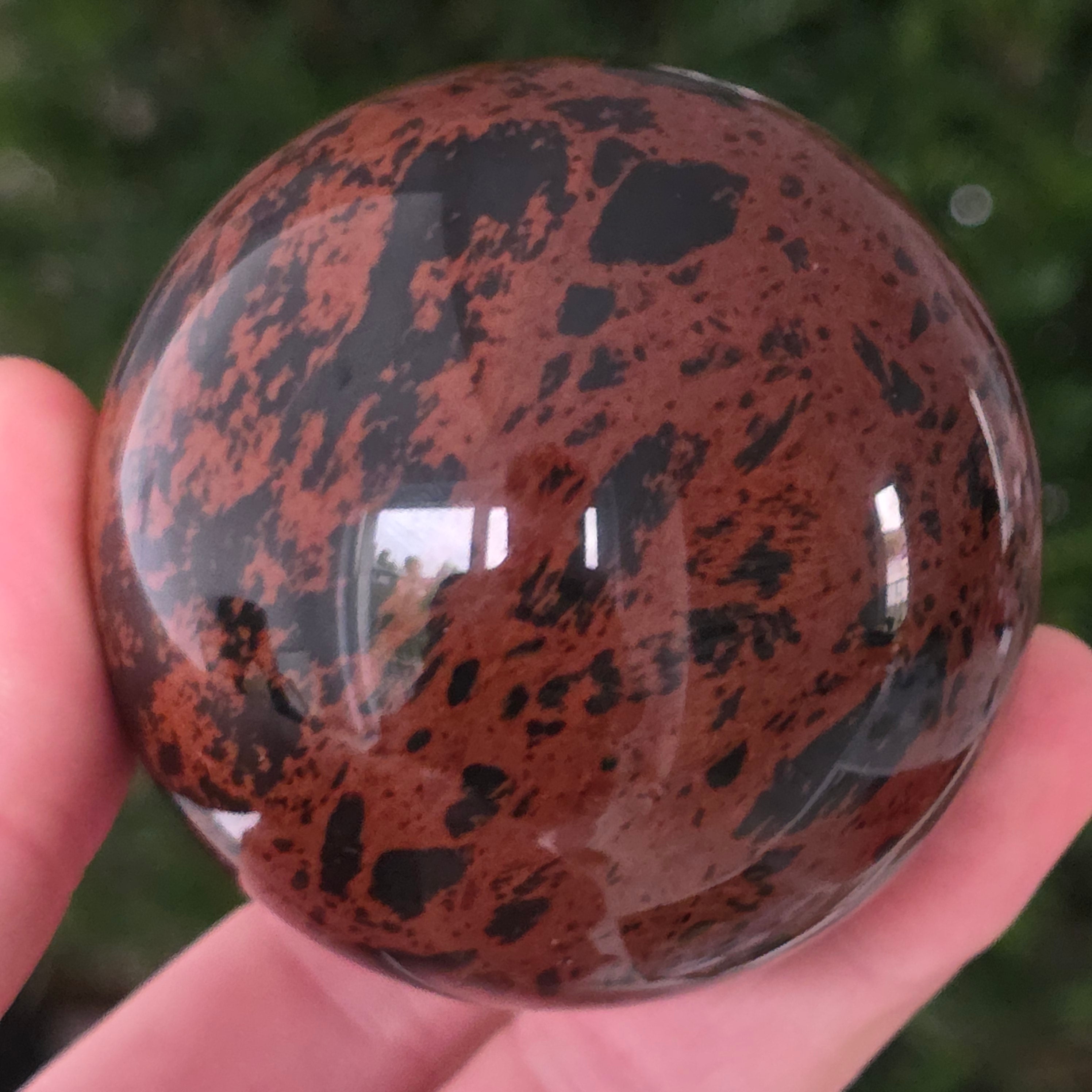 Celui-ci sphère d'obsidienne en acajou c'est une incarnation de la force primordiale de la Terre – une pierre d'enracinement, de sécurité et de transformation intérieure.
