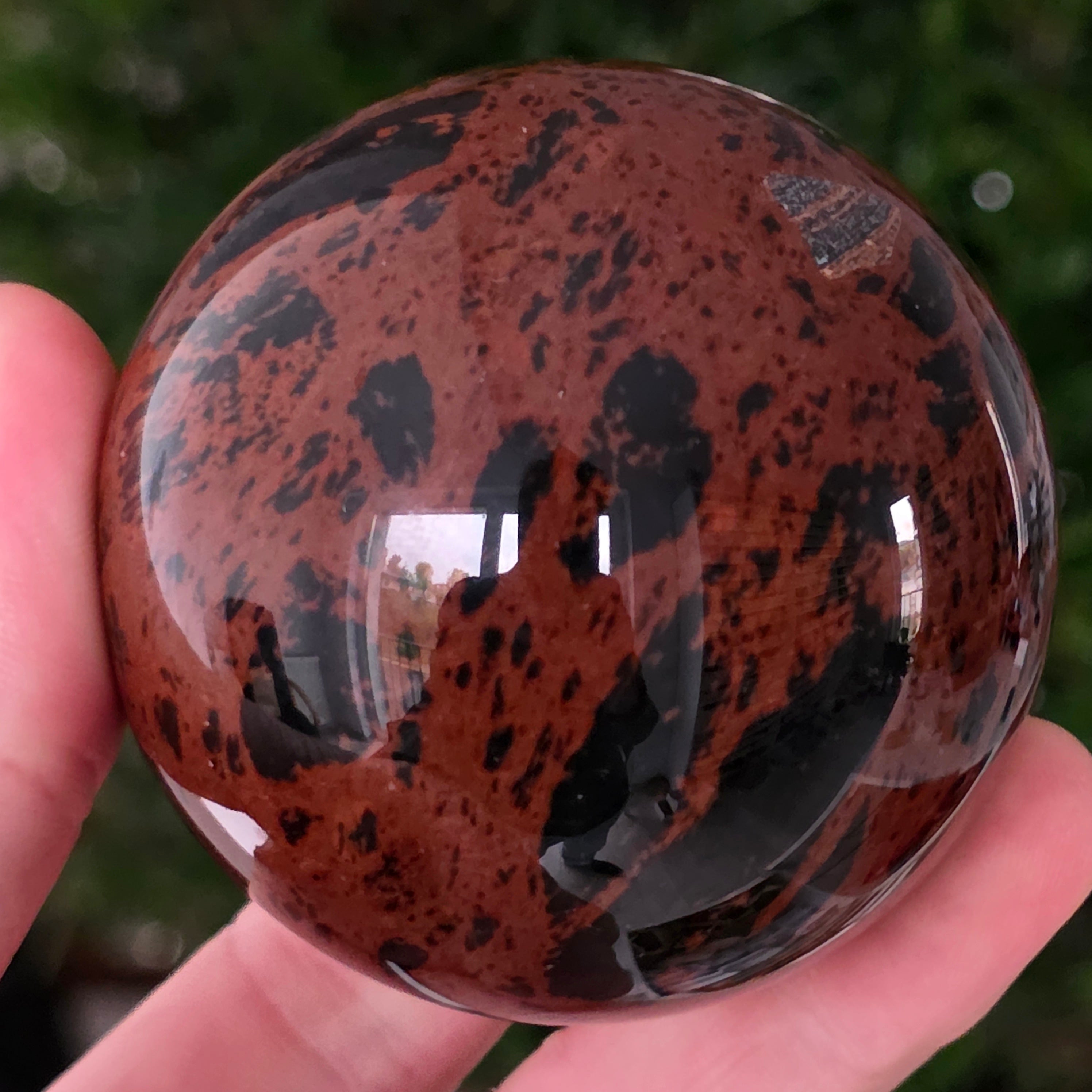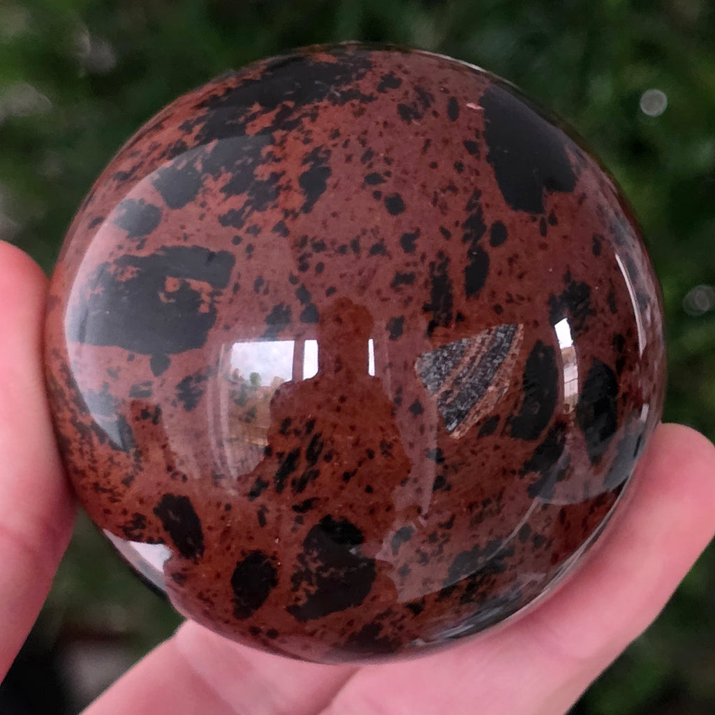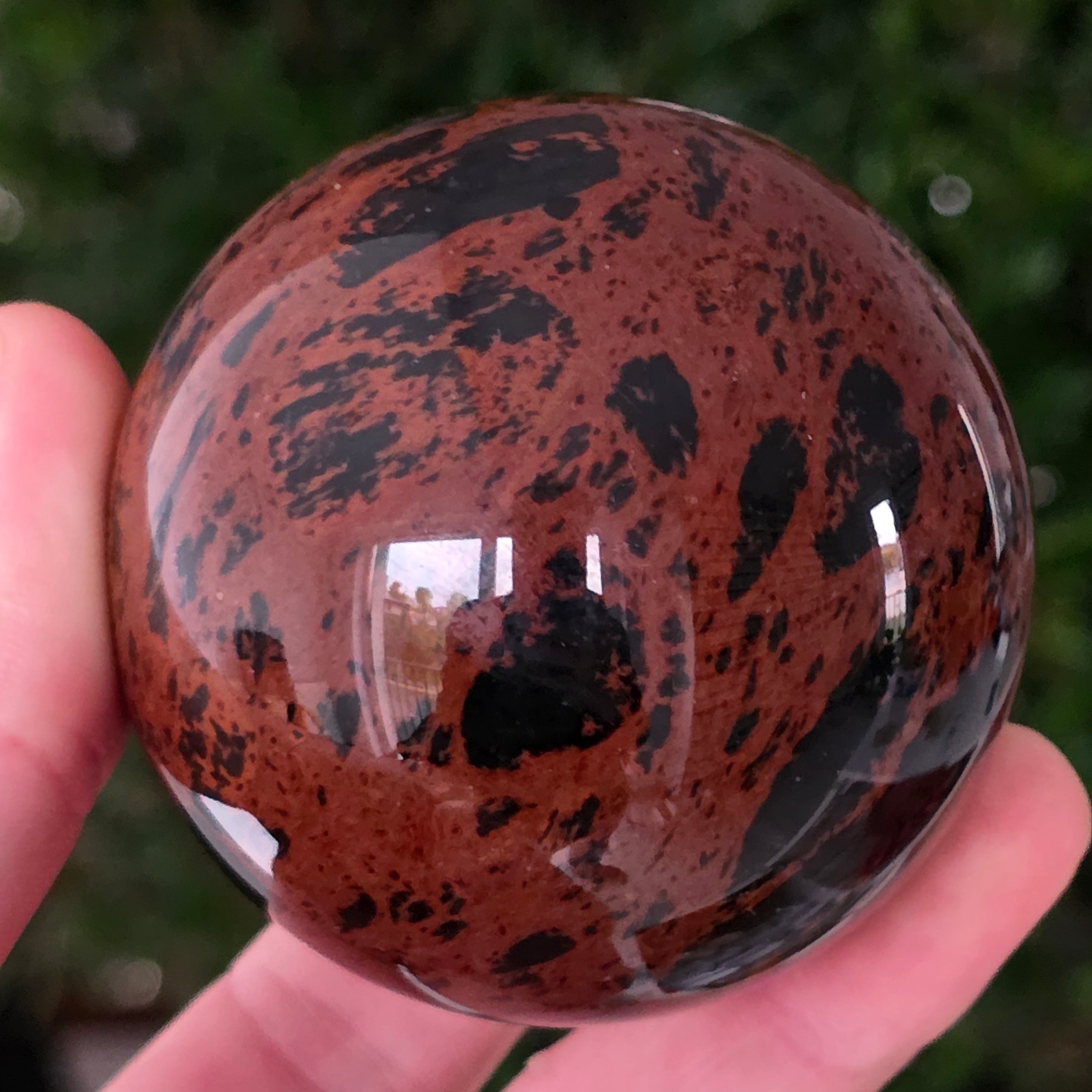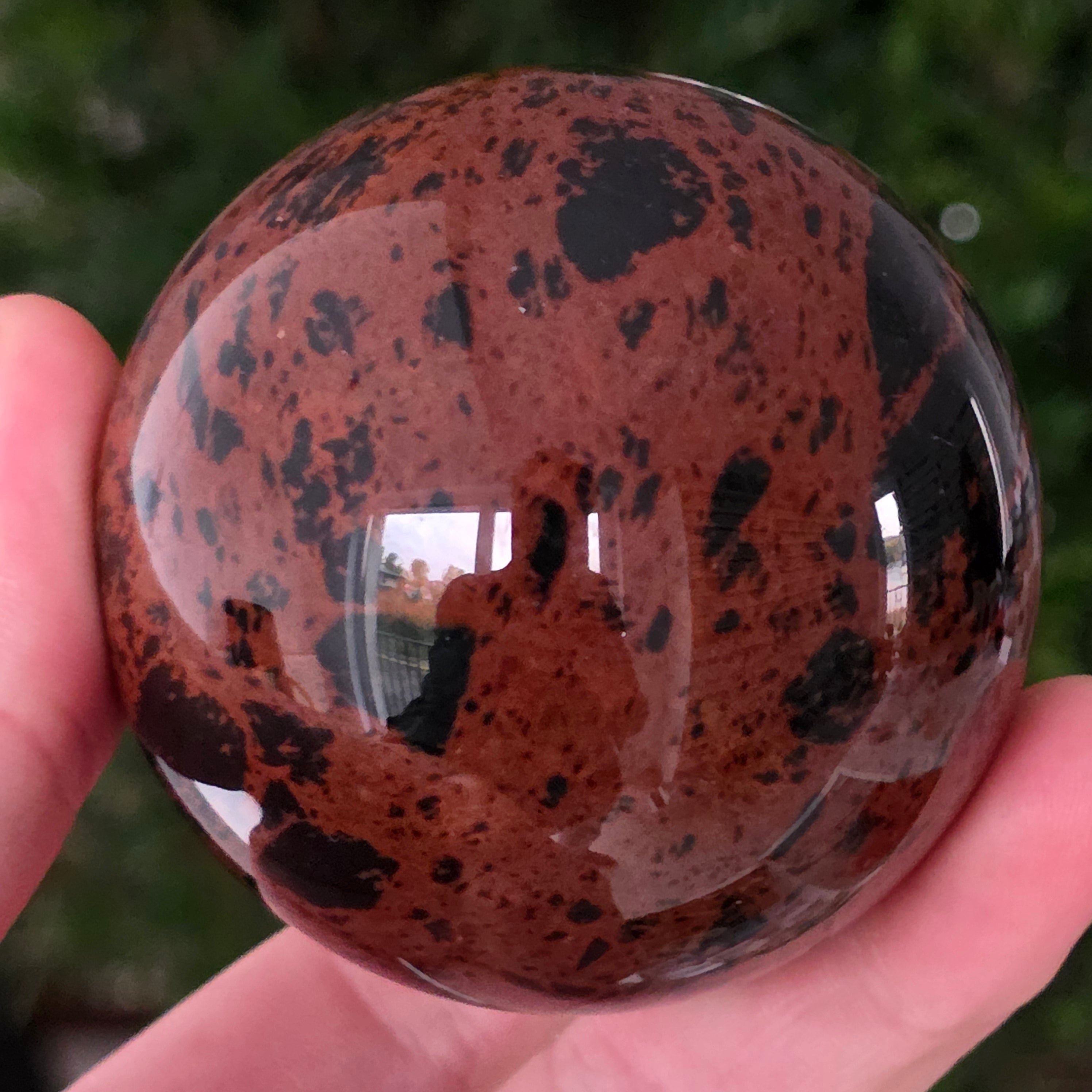 Celui-ci sphère d'obsidienne en acajou c'est une incarnation de la force primordiale de la Terre – une pierre d'enracinement, de sécurité et de transformation intérieure.