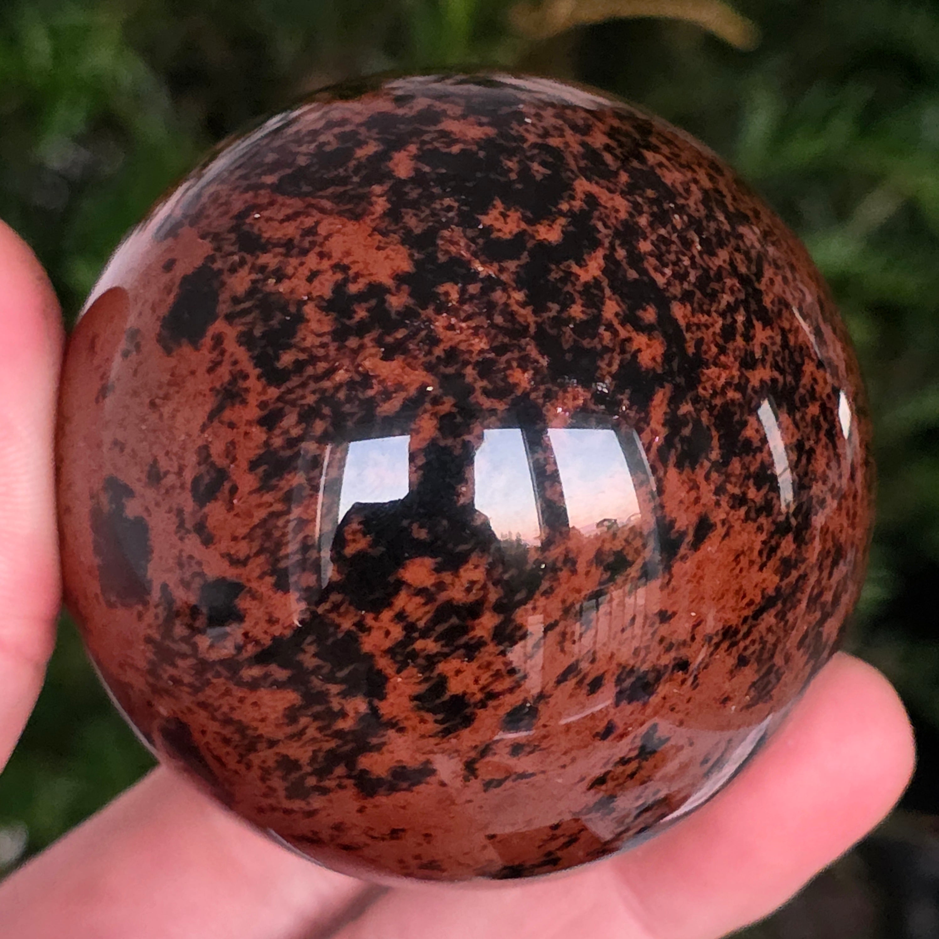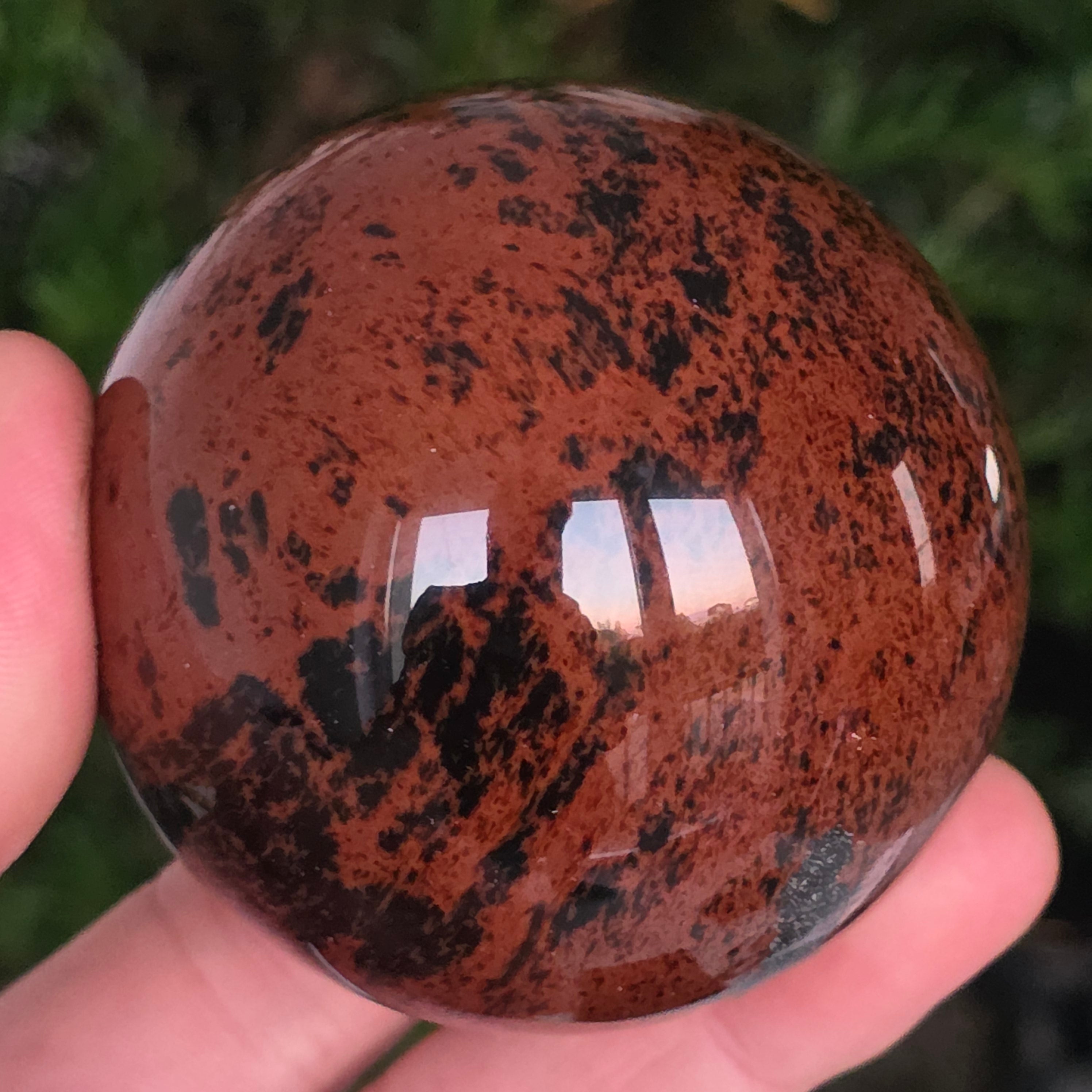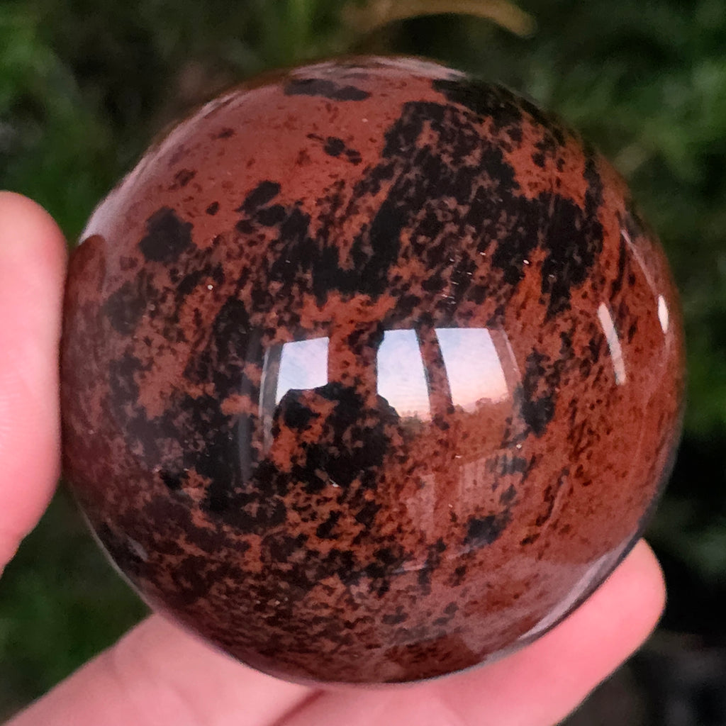 Celui-ci sphère d'obsidienne en acajou c'est une incarnation de la force primordiale de la Terre – une pierre d'enracinement, de sécurité et de transformation intérieure.