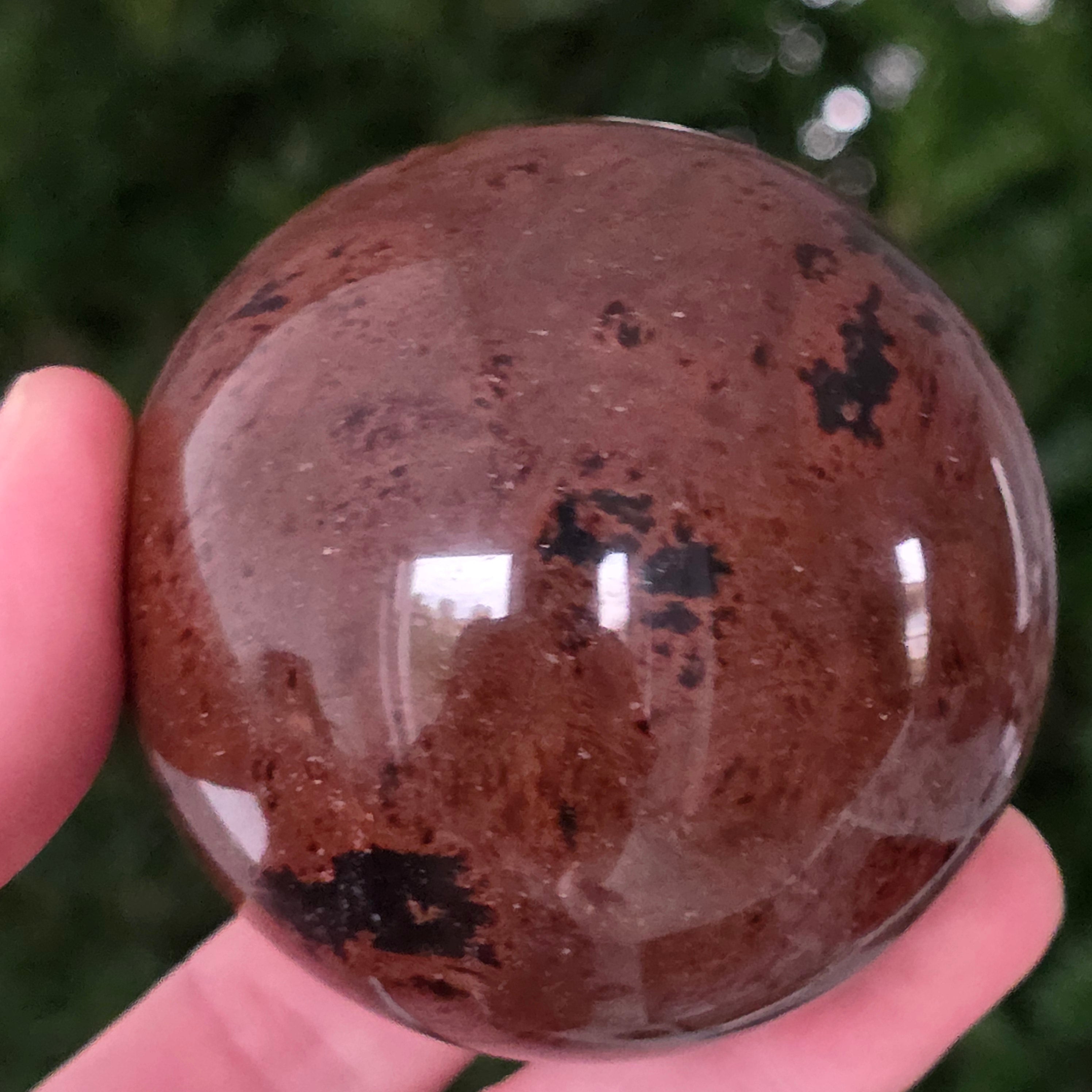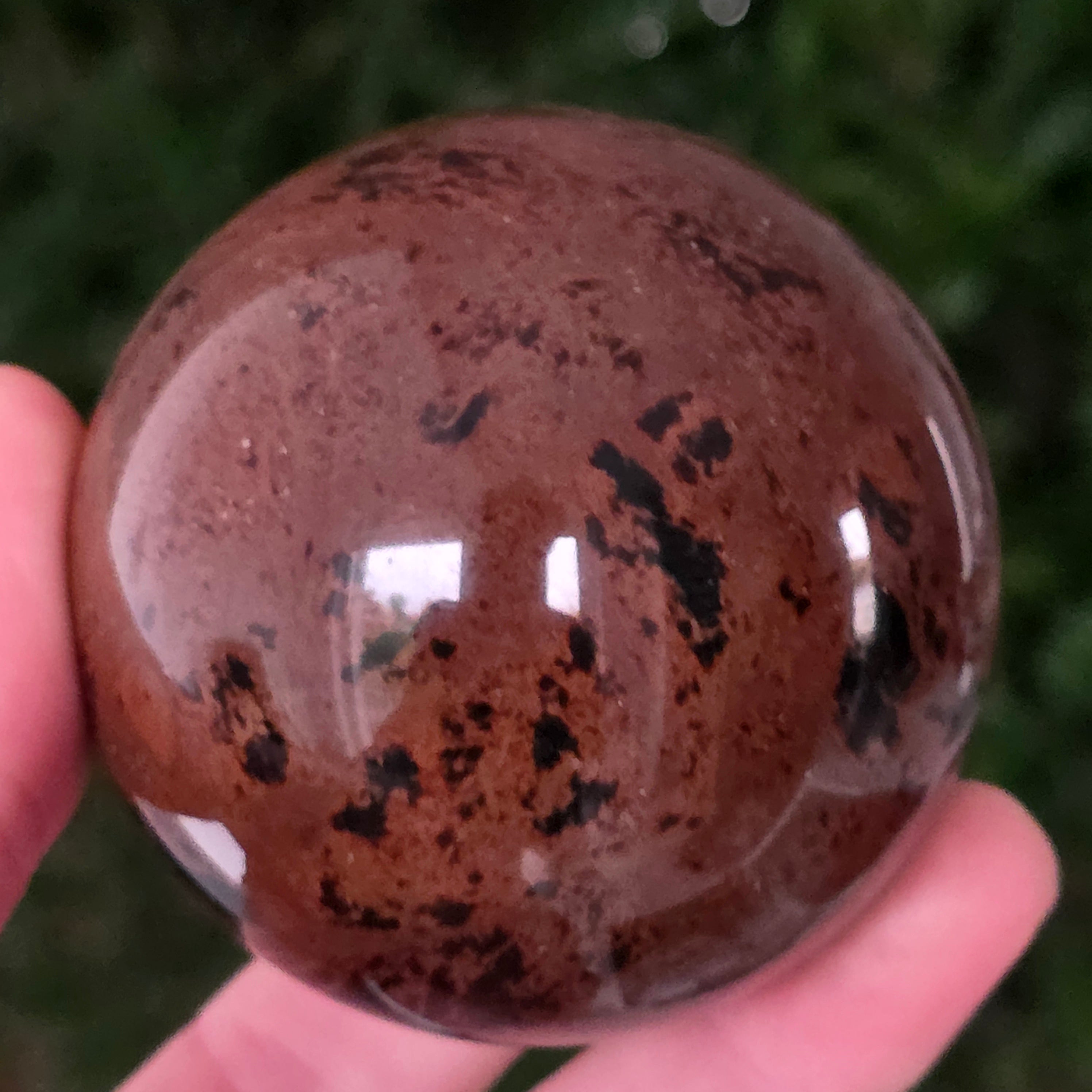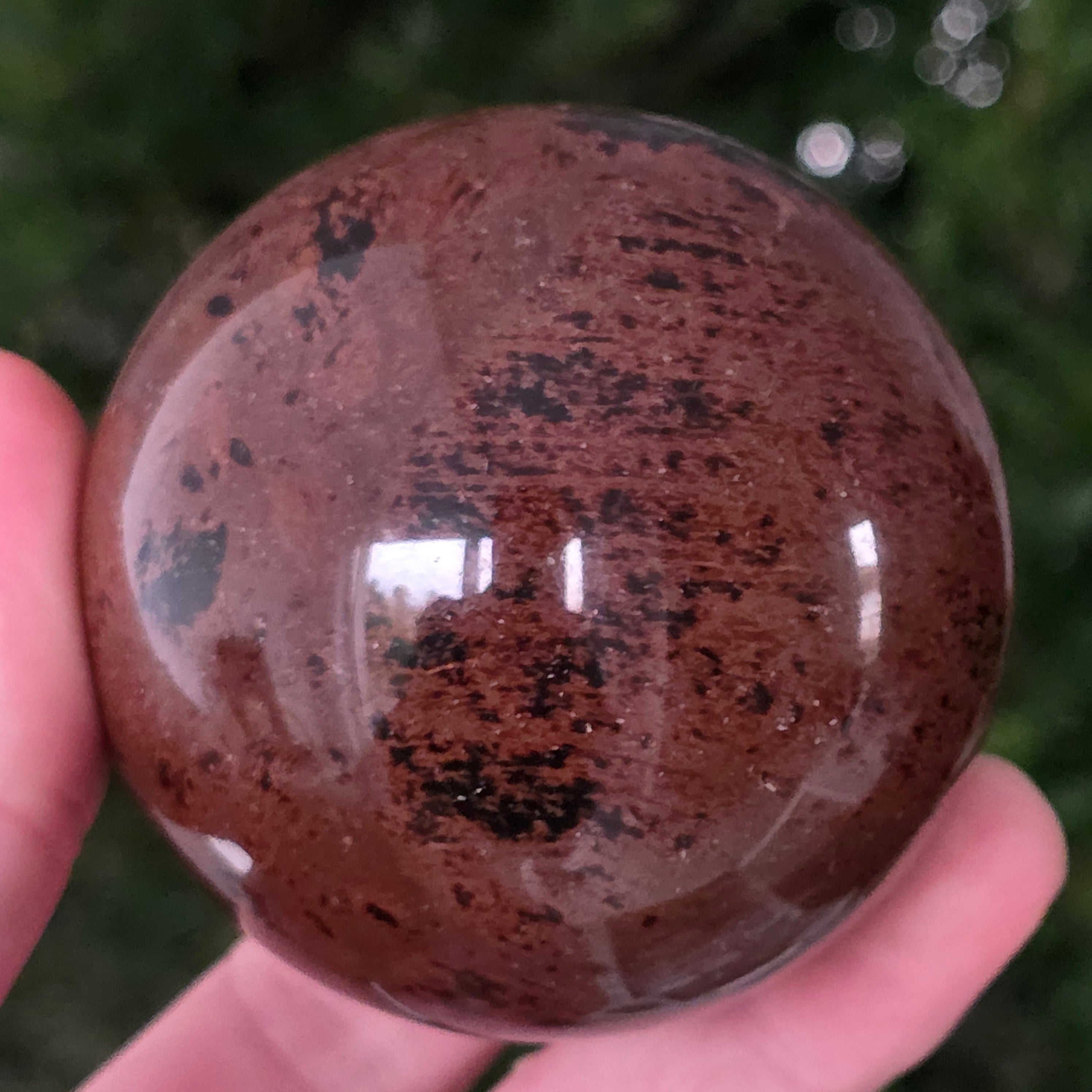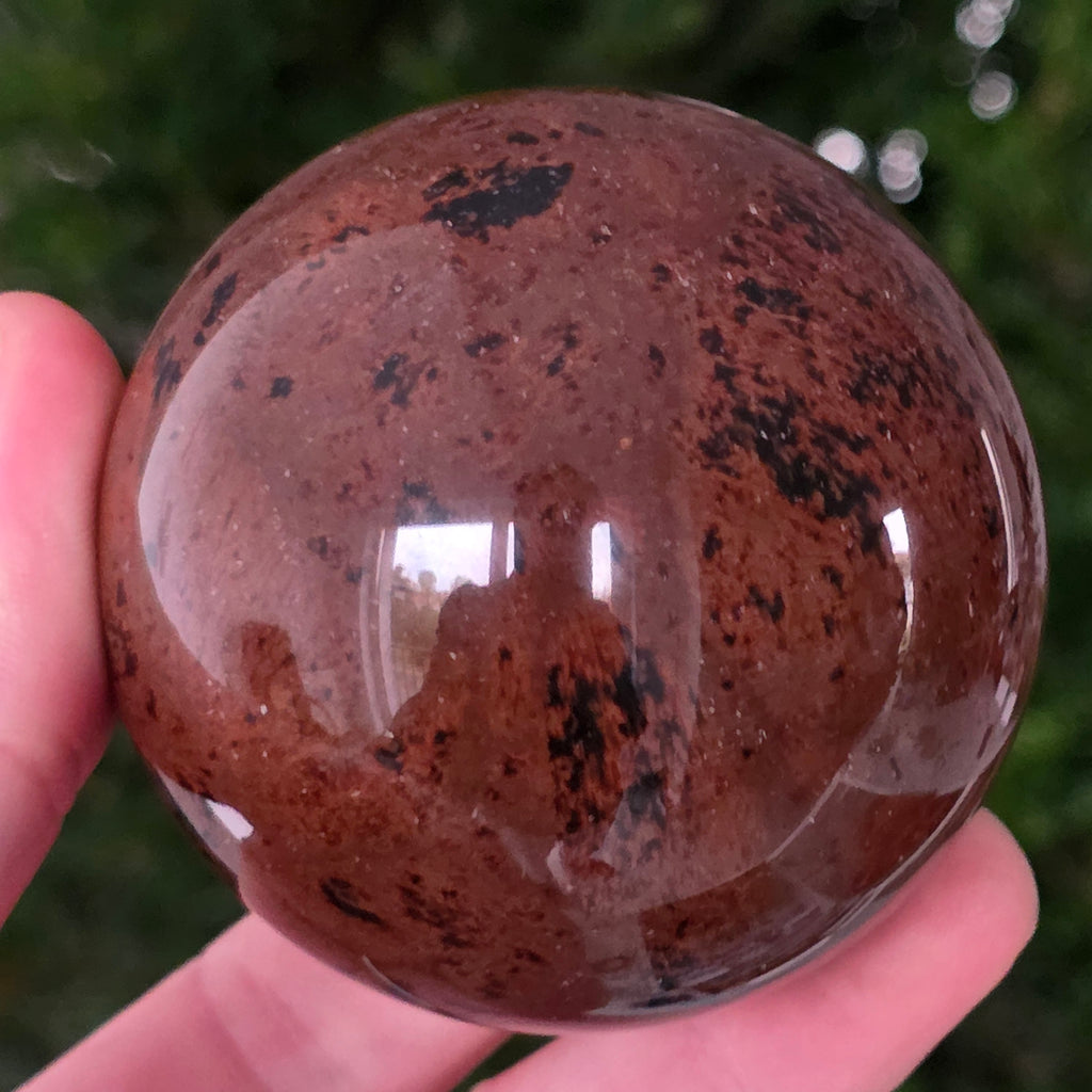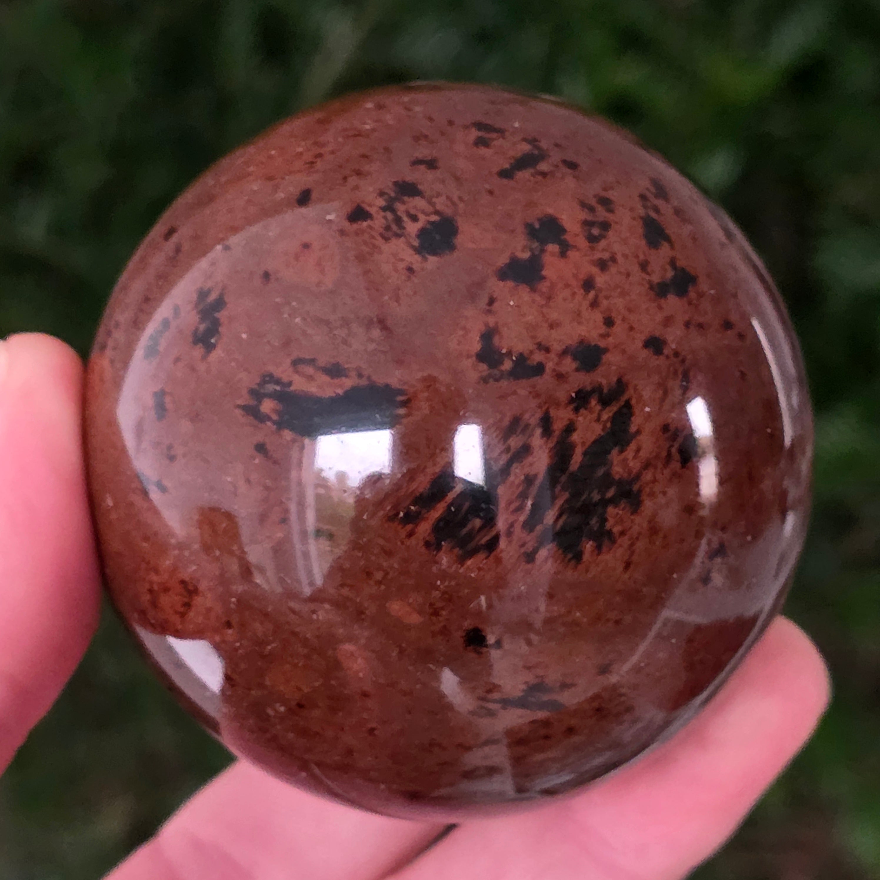 Celui-ci sphère d'obsidienne en acajou c'est une incarnation de la force primordiale de la Terre – une pierre d'enracinement, de sécurité et de transformation intérieure.