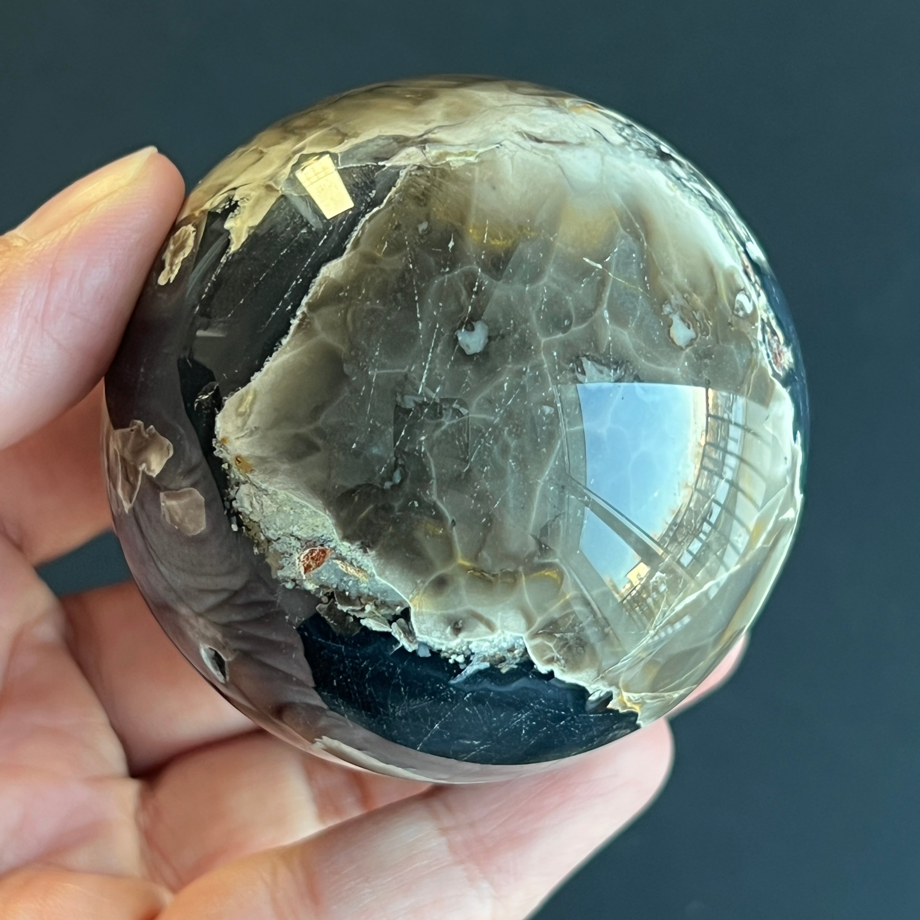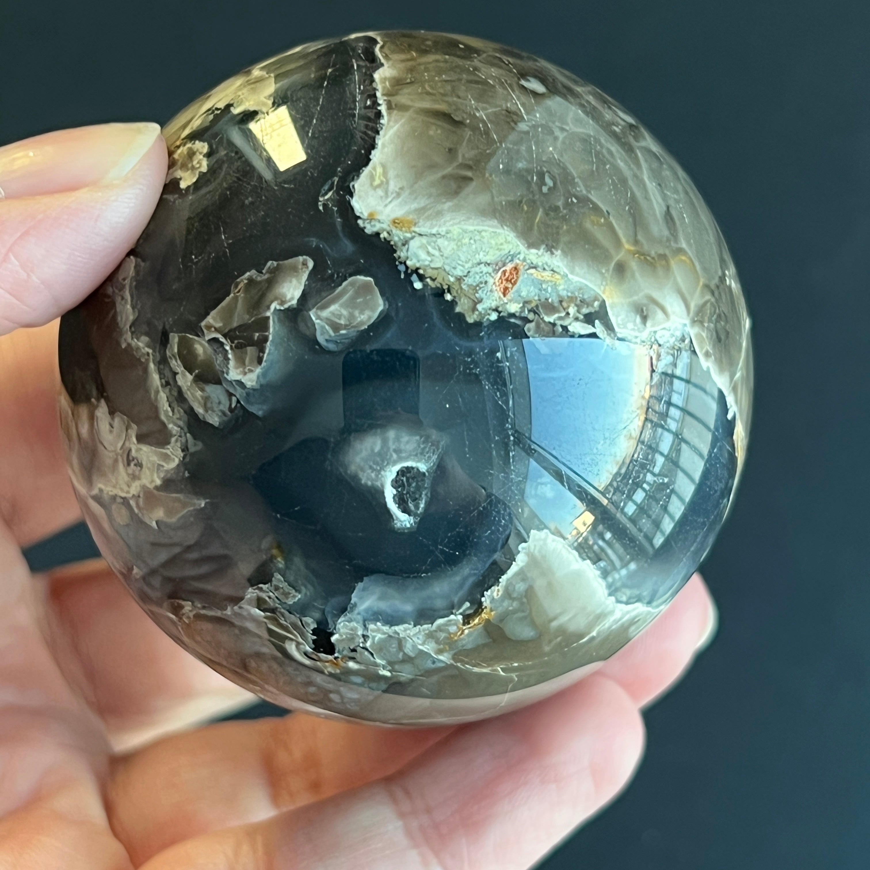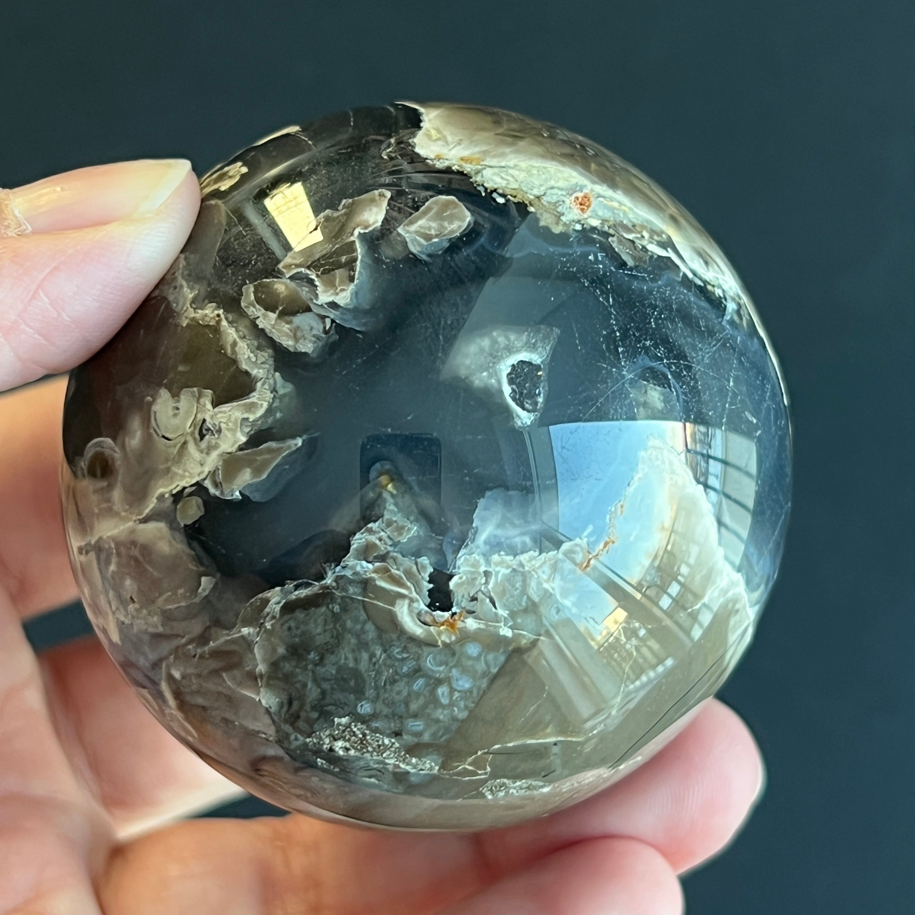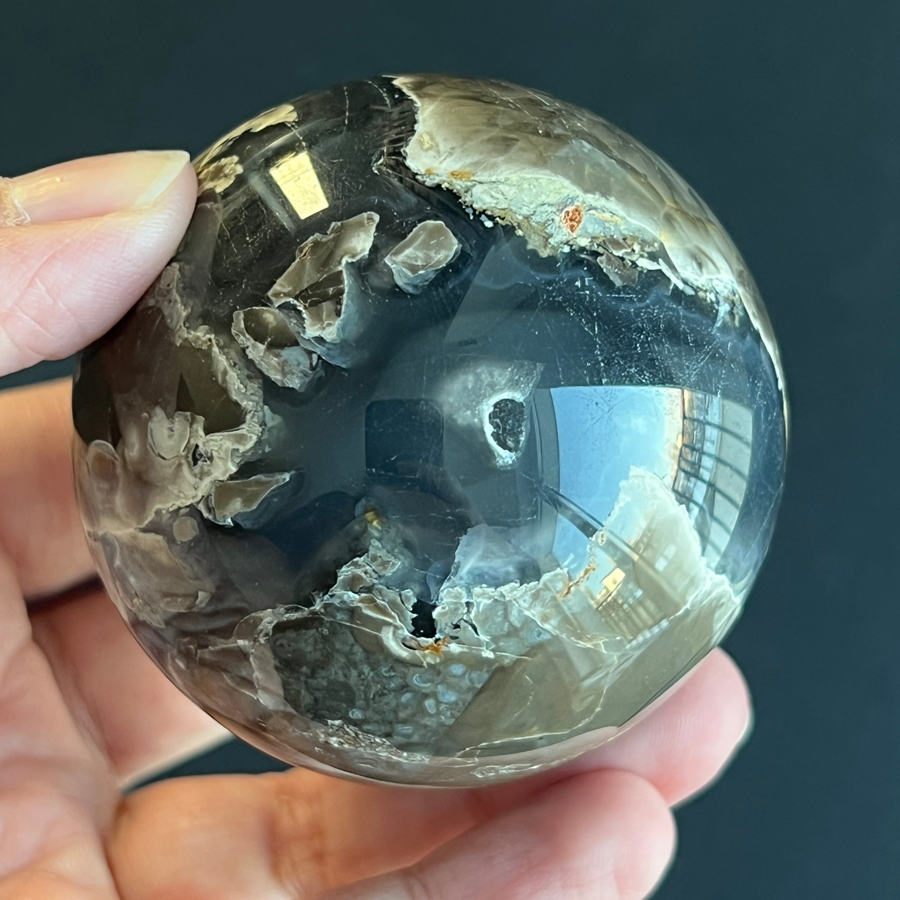 • Pierre : agate noire naturelle – sphère entièrement polie