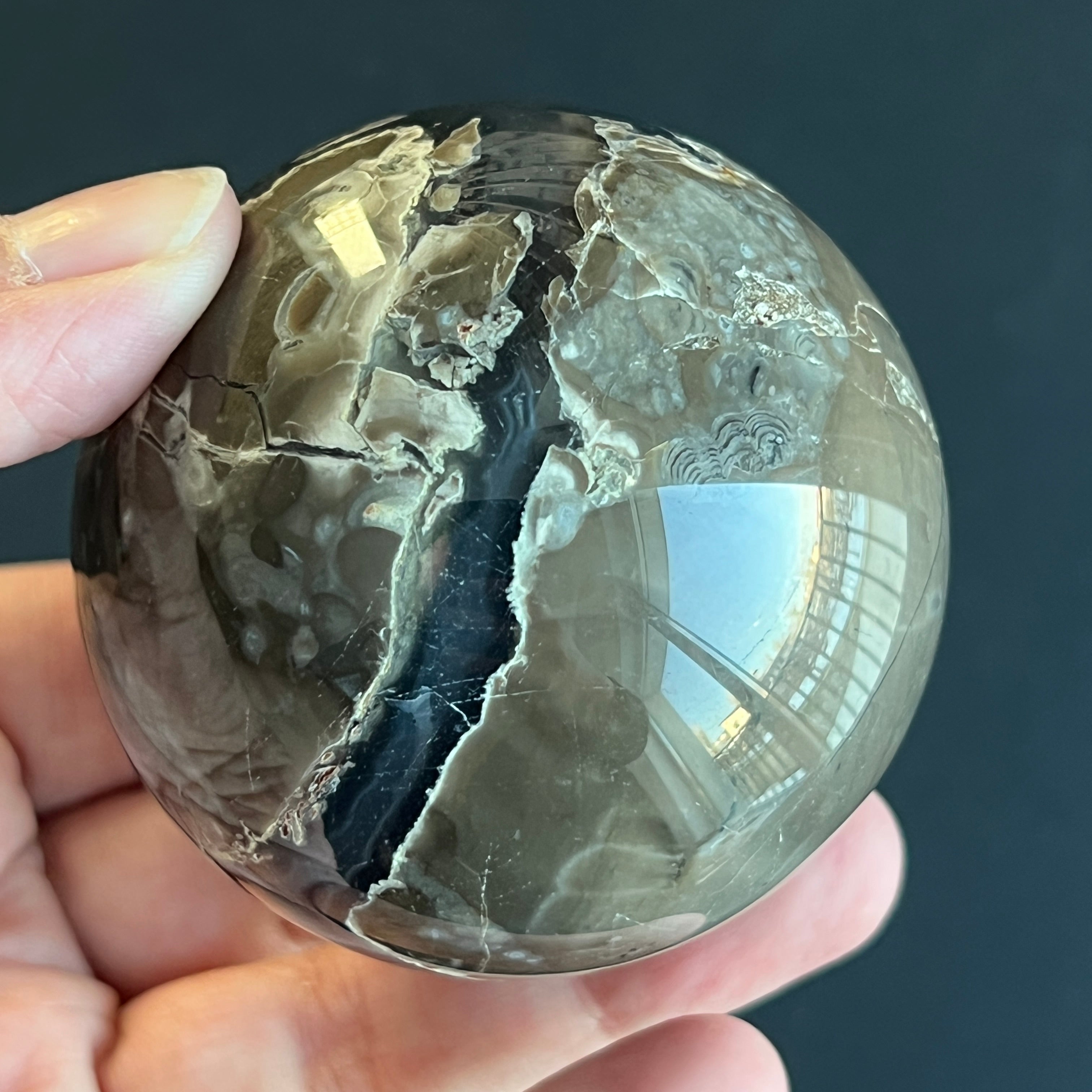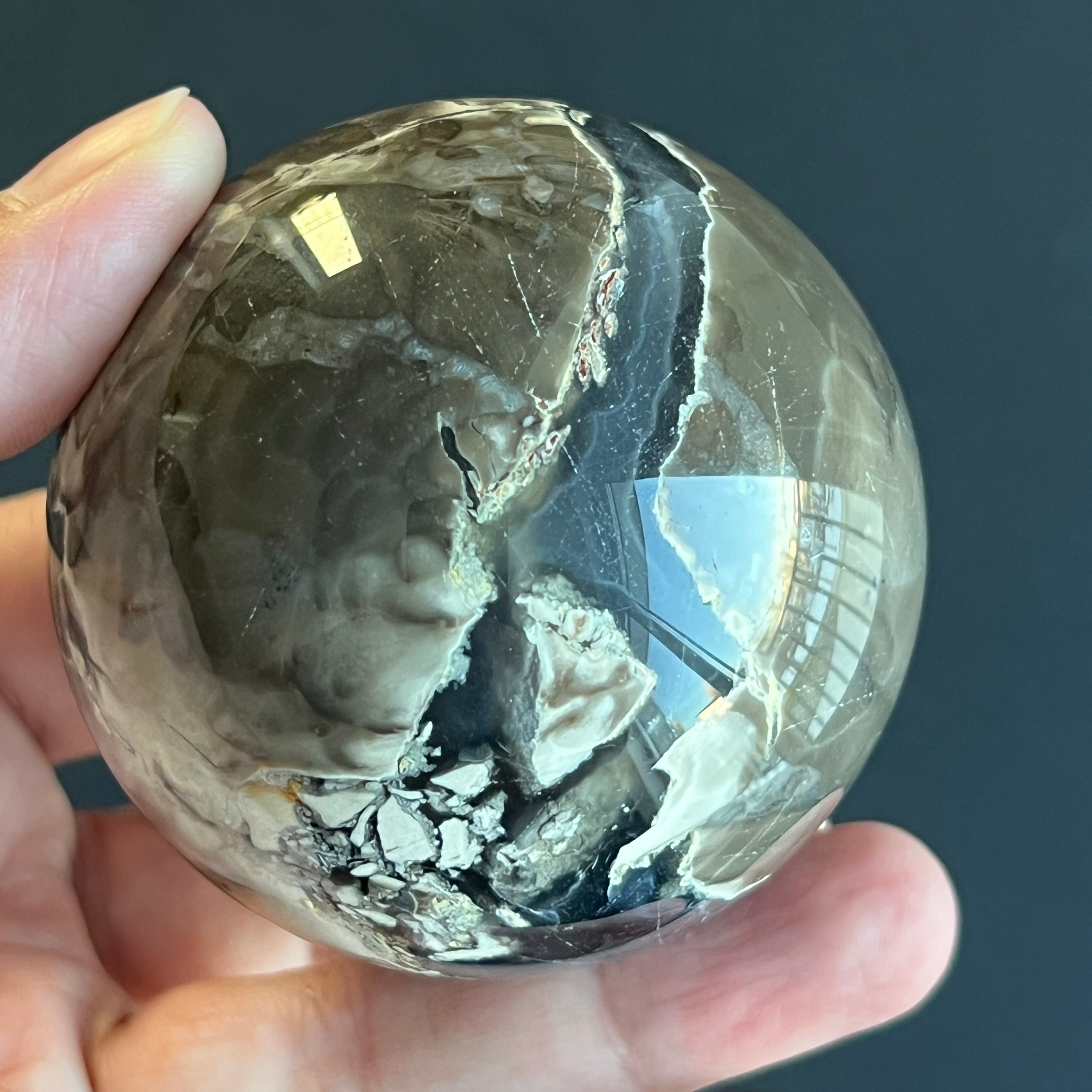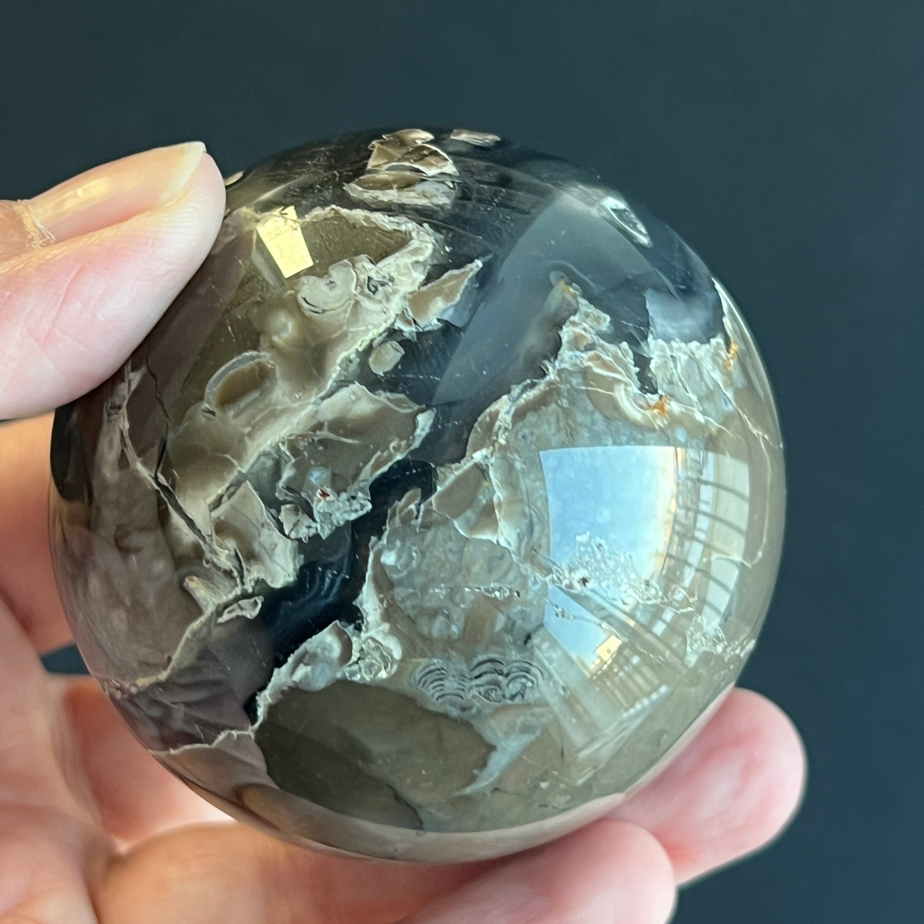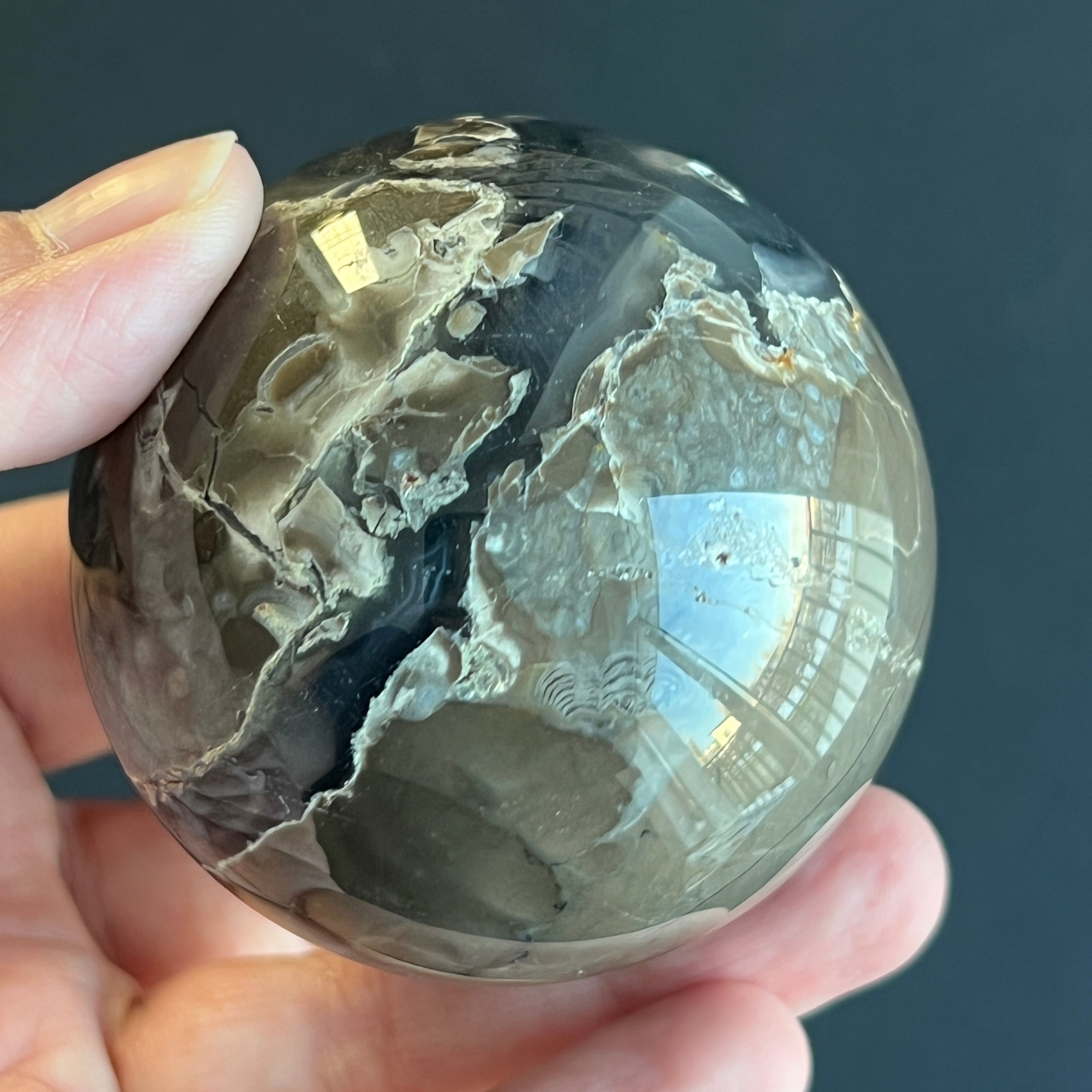 • Pierre : agate noire naturelle – sphère entièrement polie