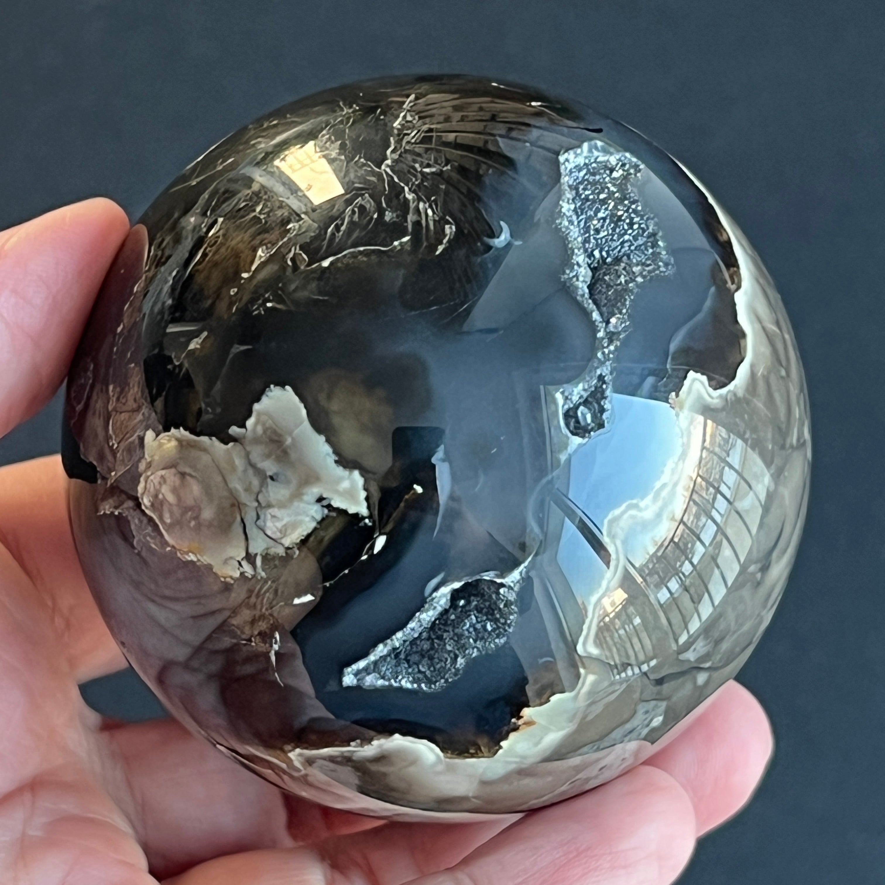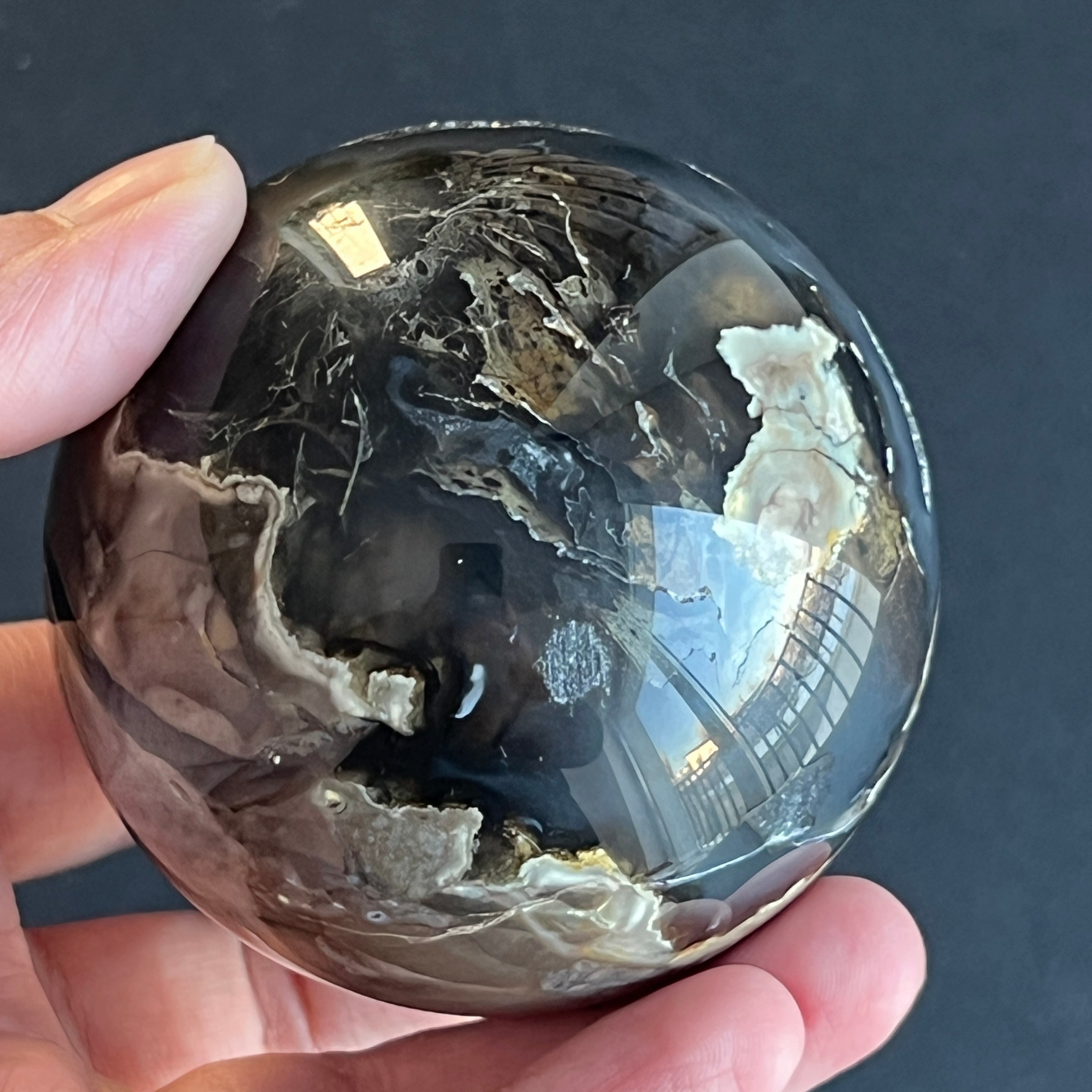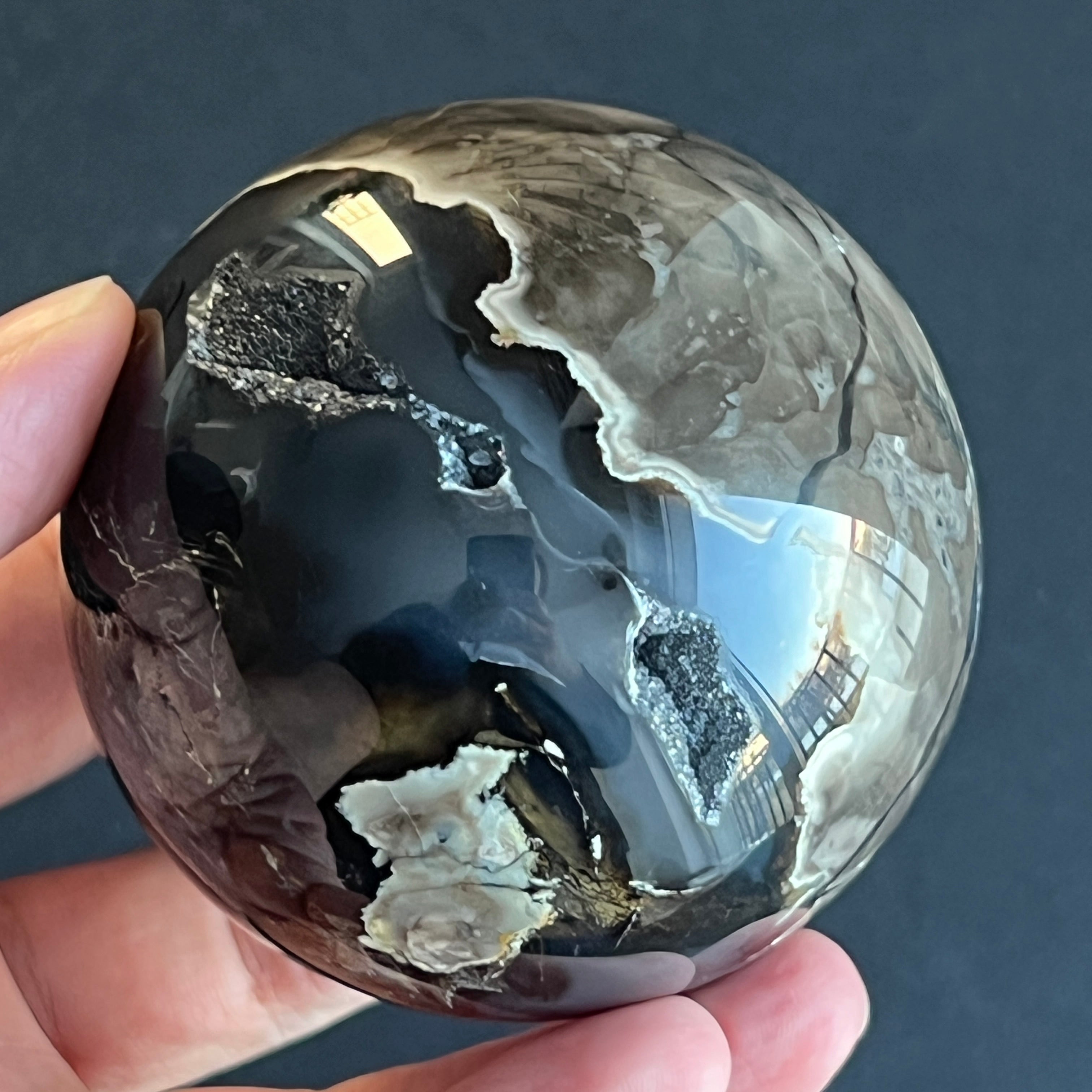 • Pierre : agate noire naturelle – sphère entièrement polie