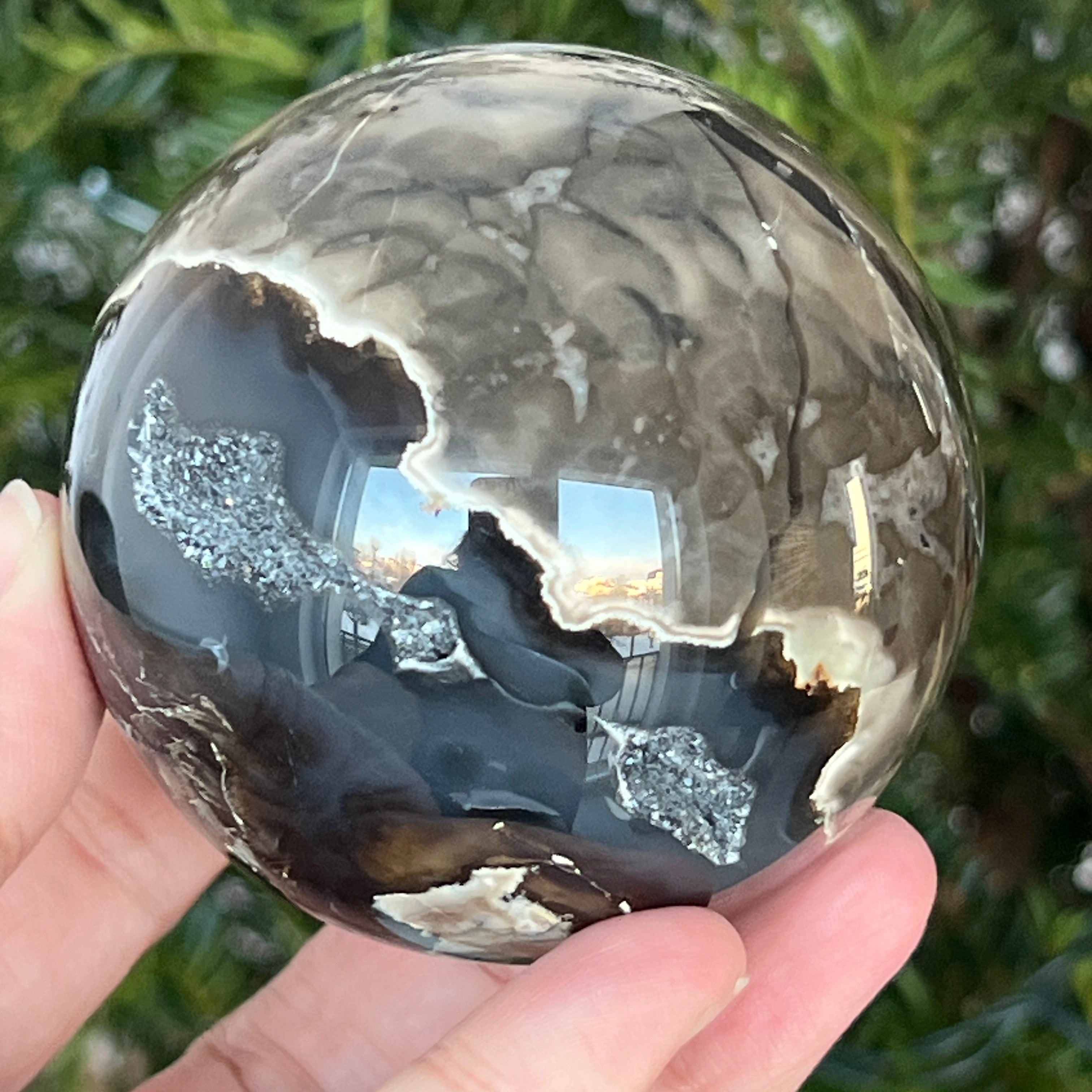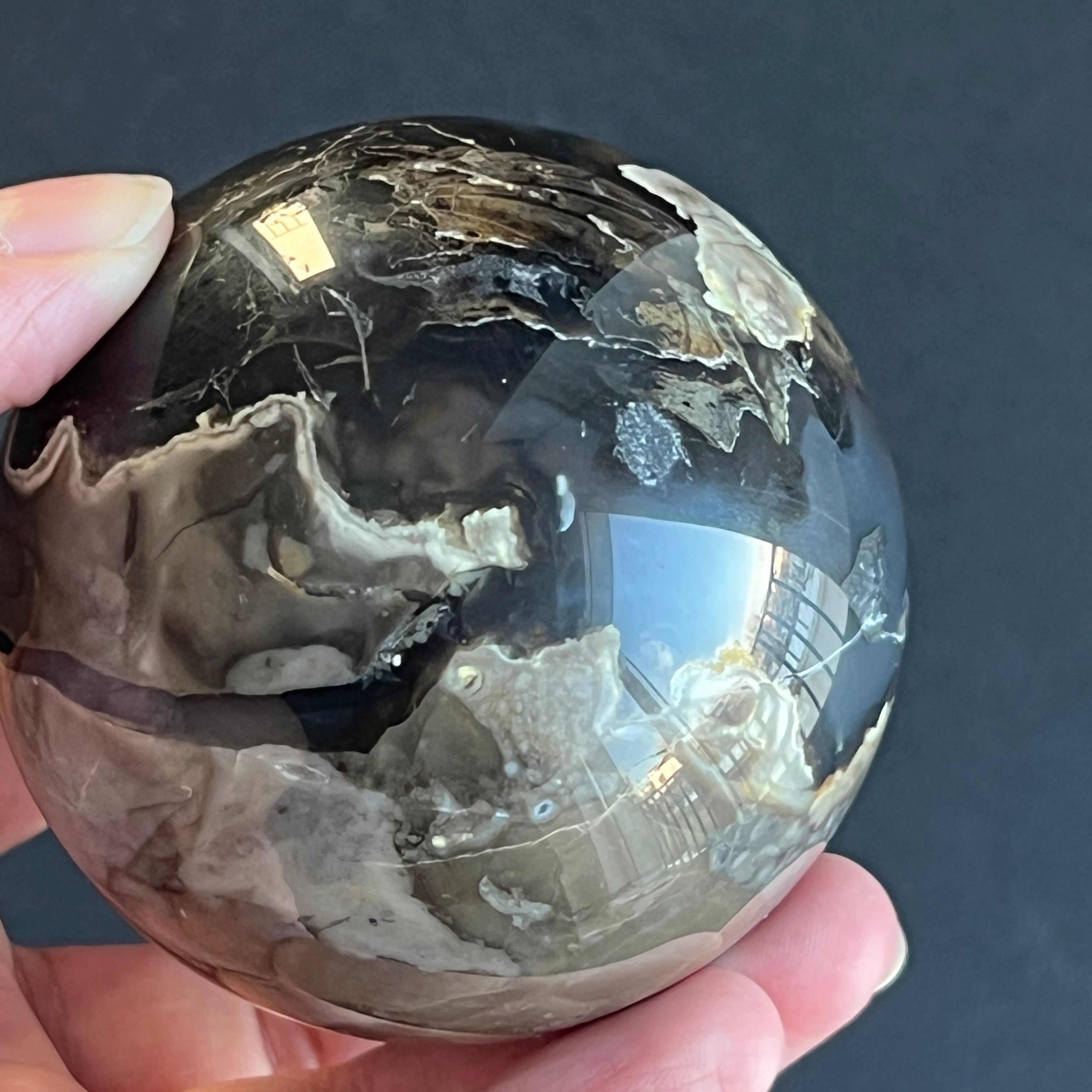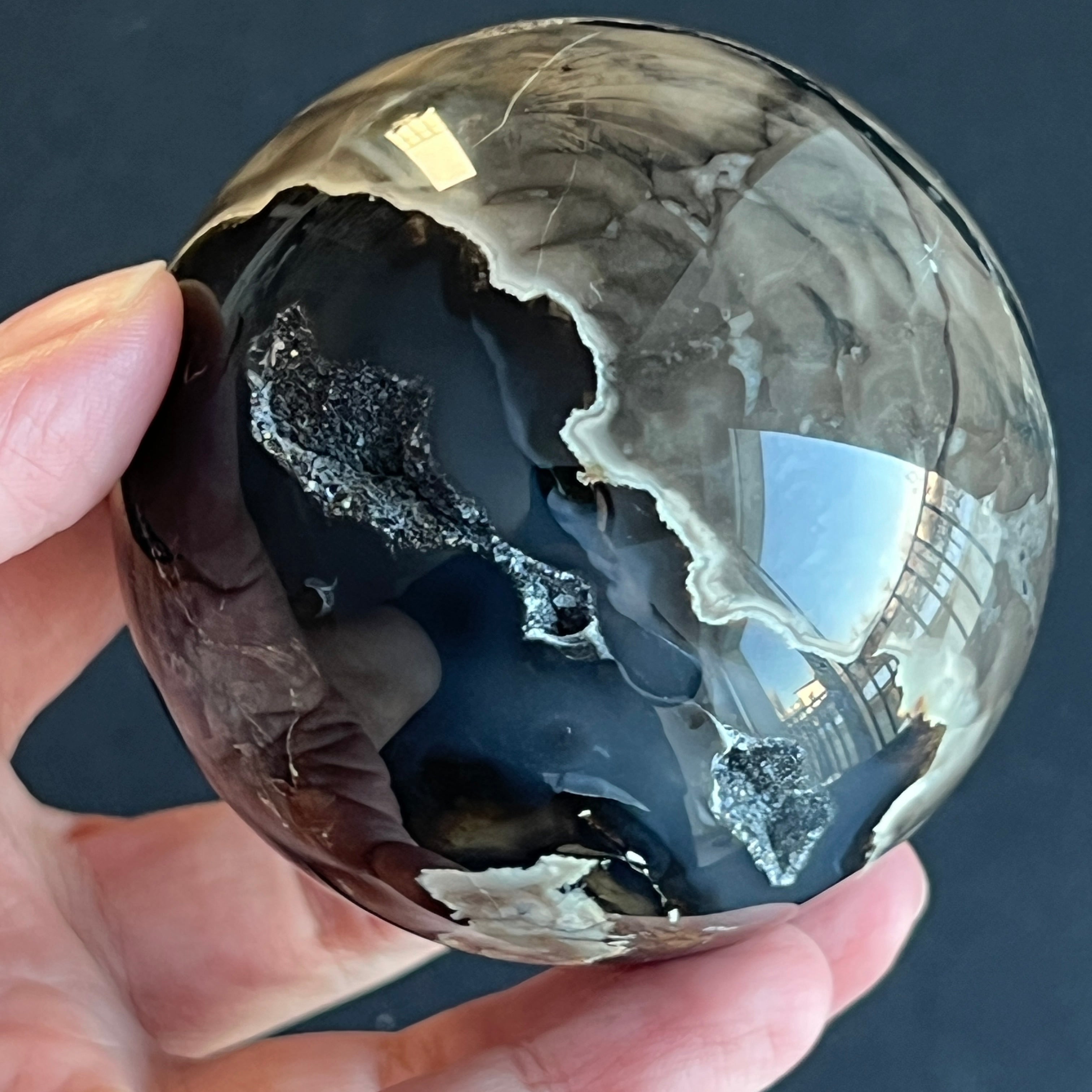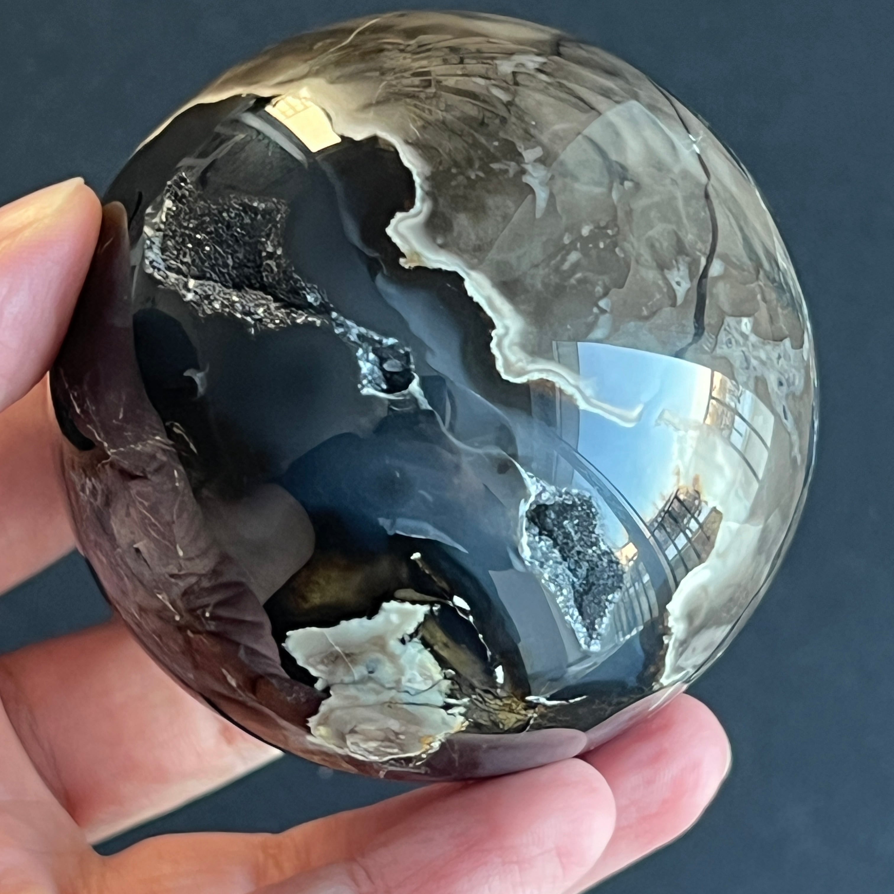 • Pierre : agate noire naturelle – sphère entièrement polie