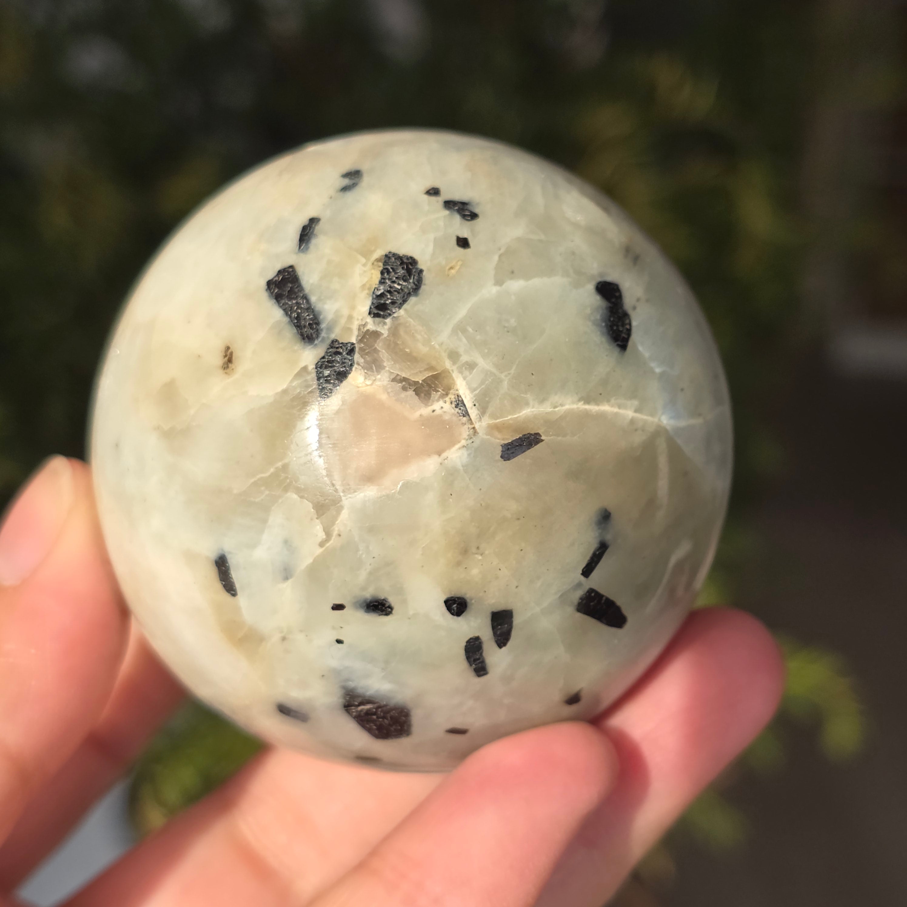 Sphère en pierre de lune avec garnierite | Modèle 4