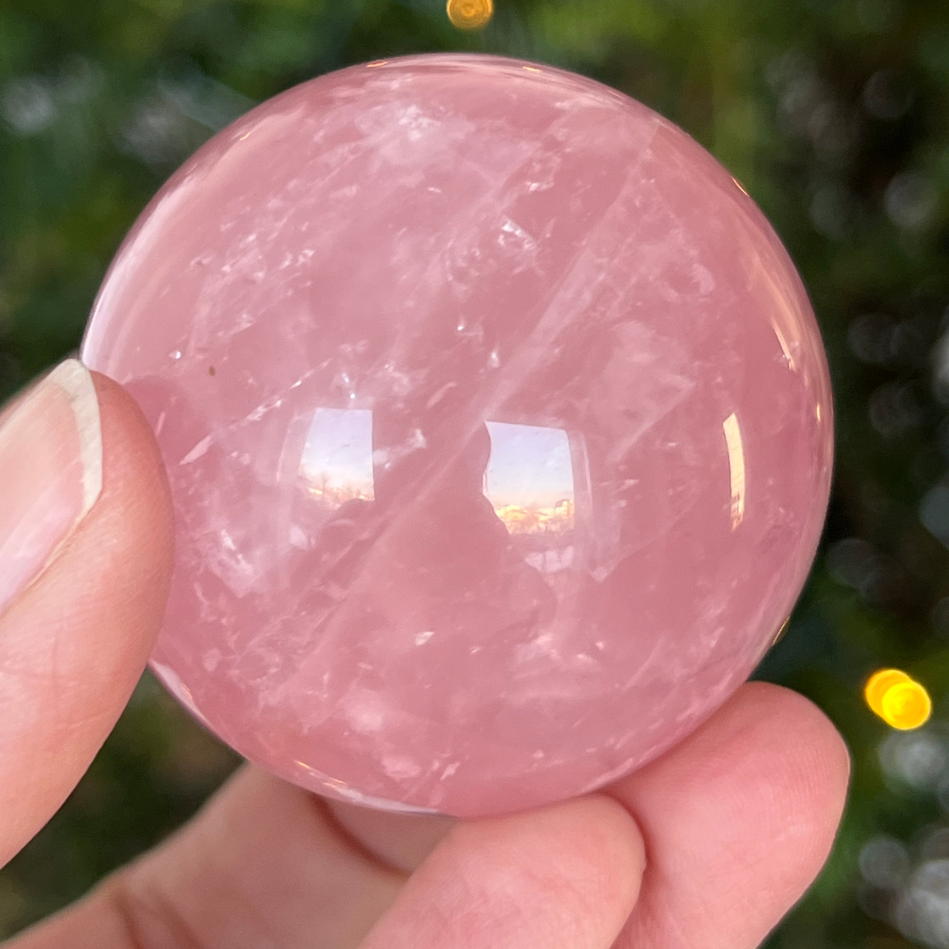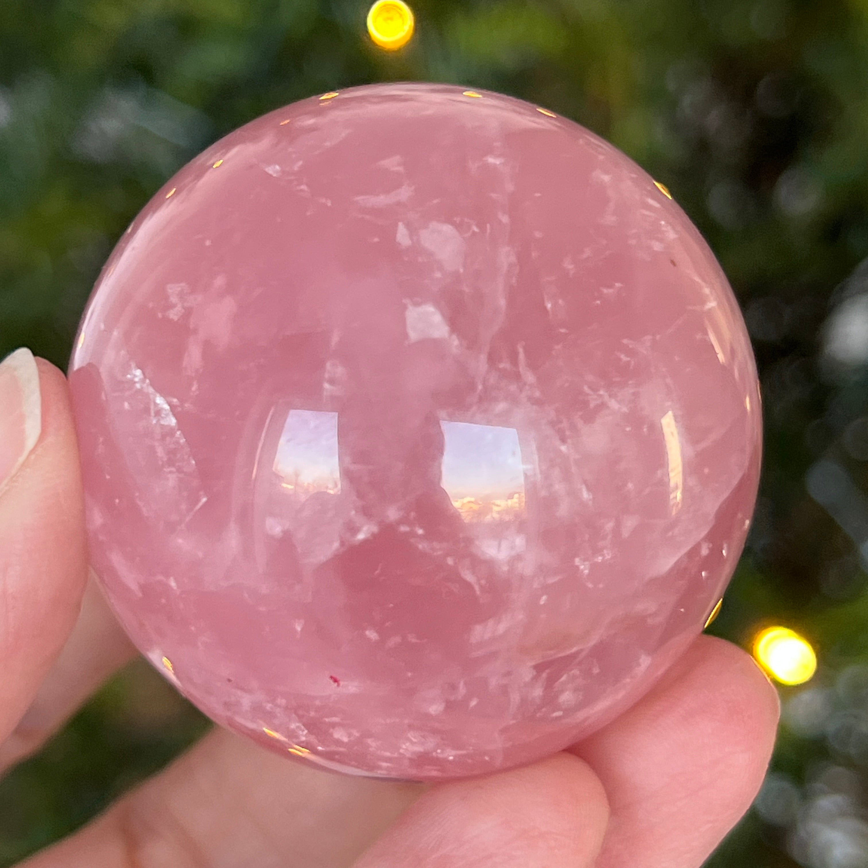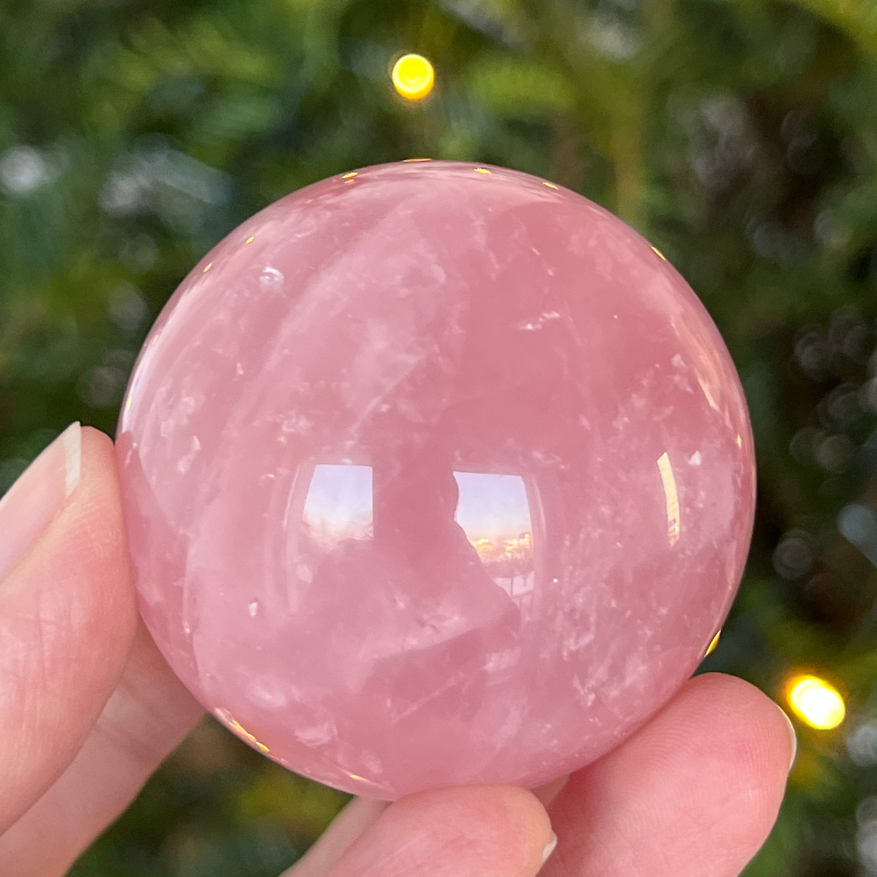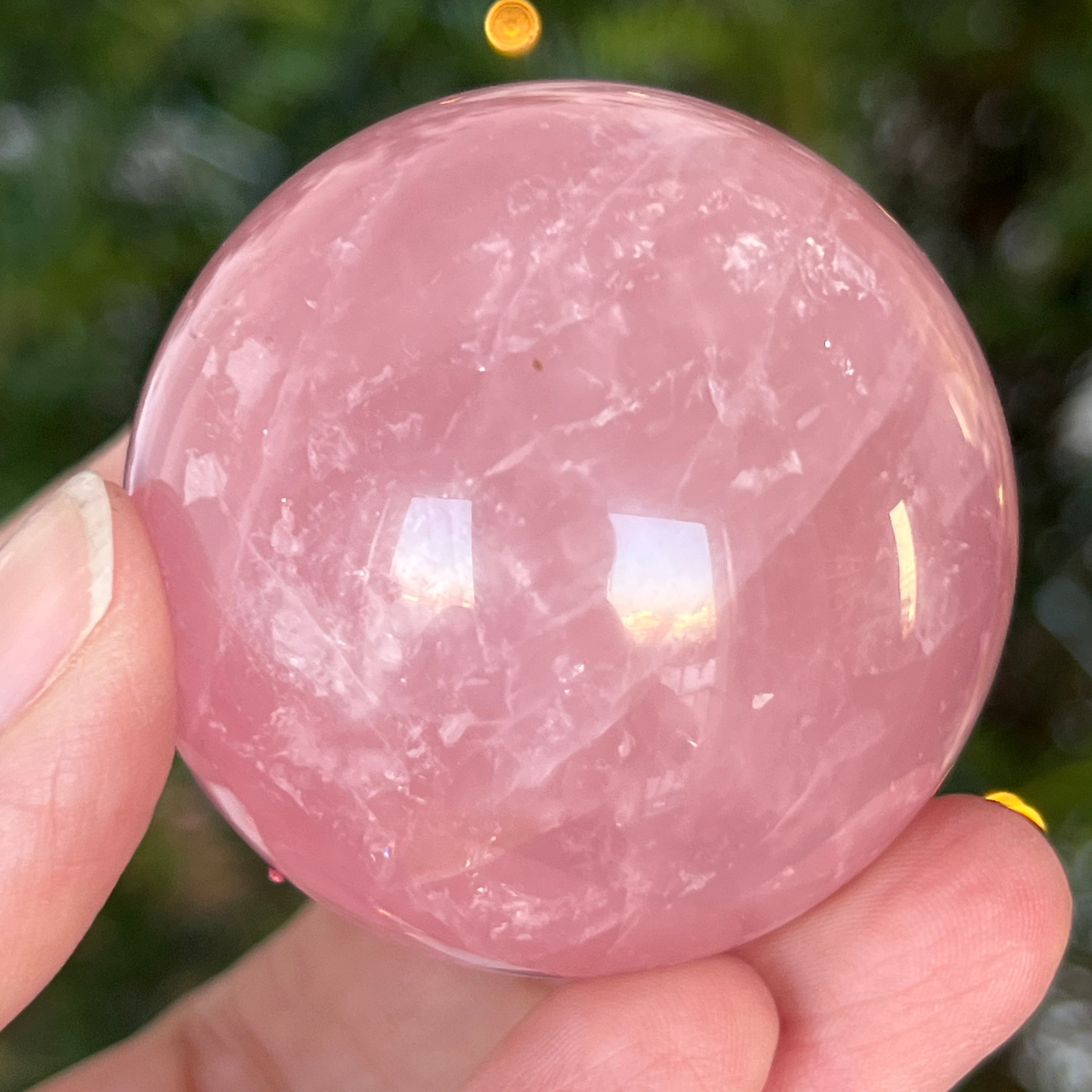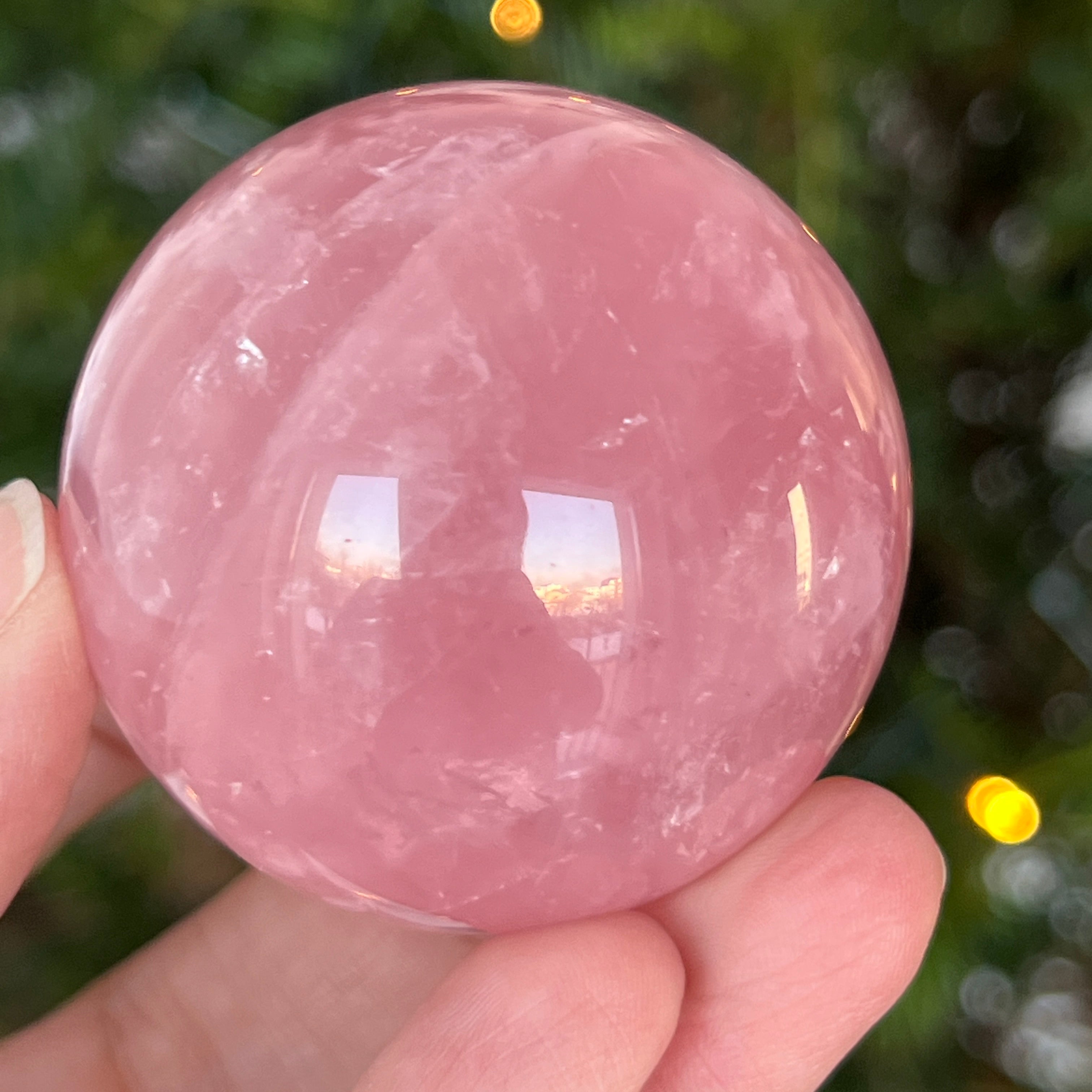 • Pierre : quartz rose naturel avec astérisme – sphère entièrement polie