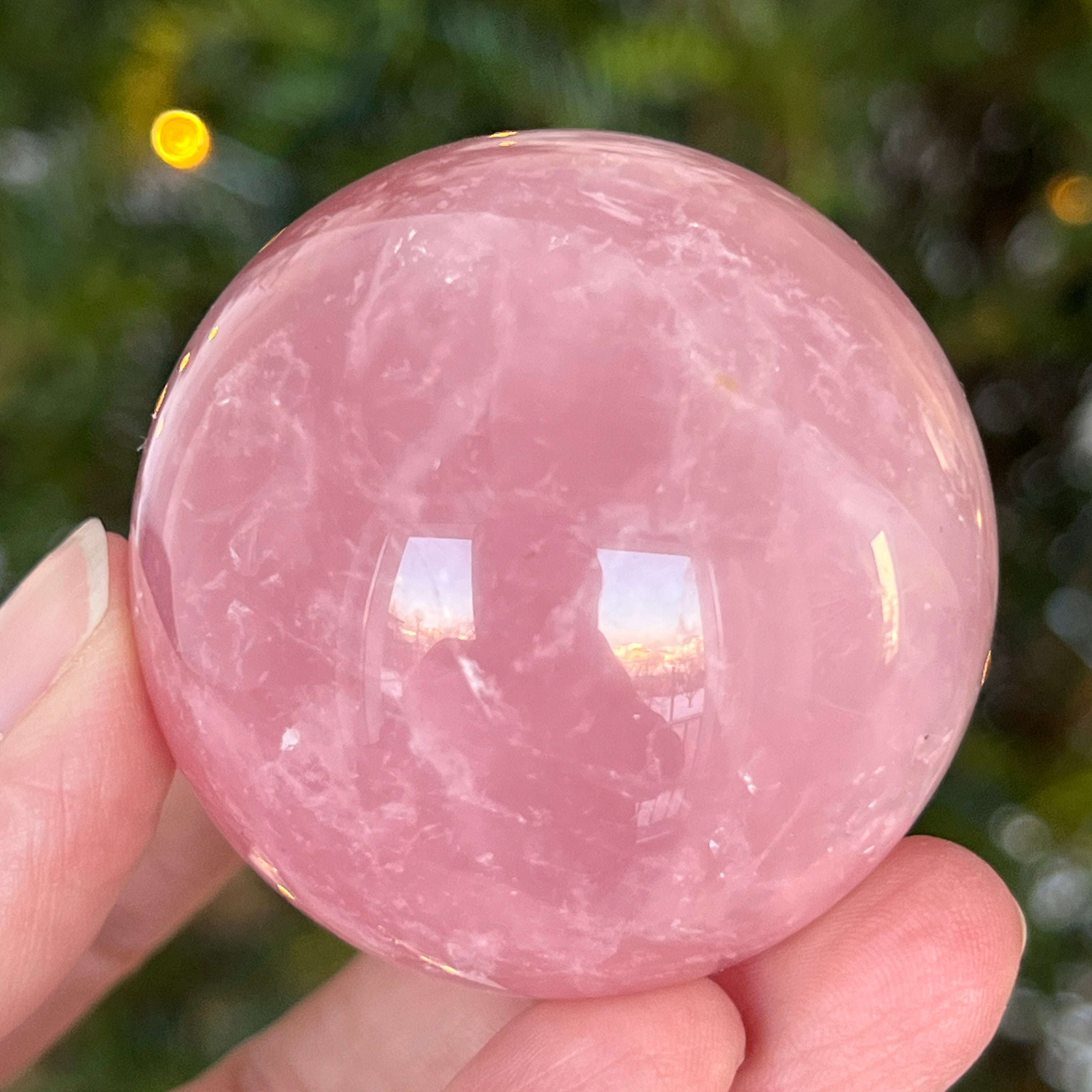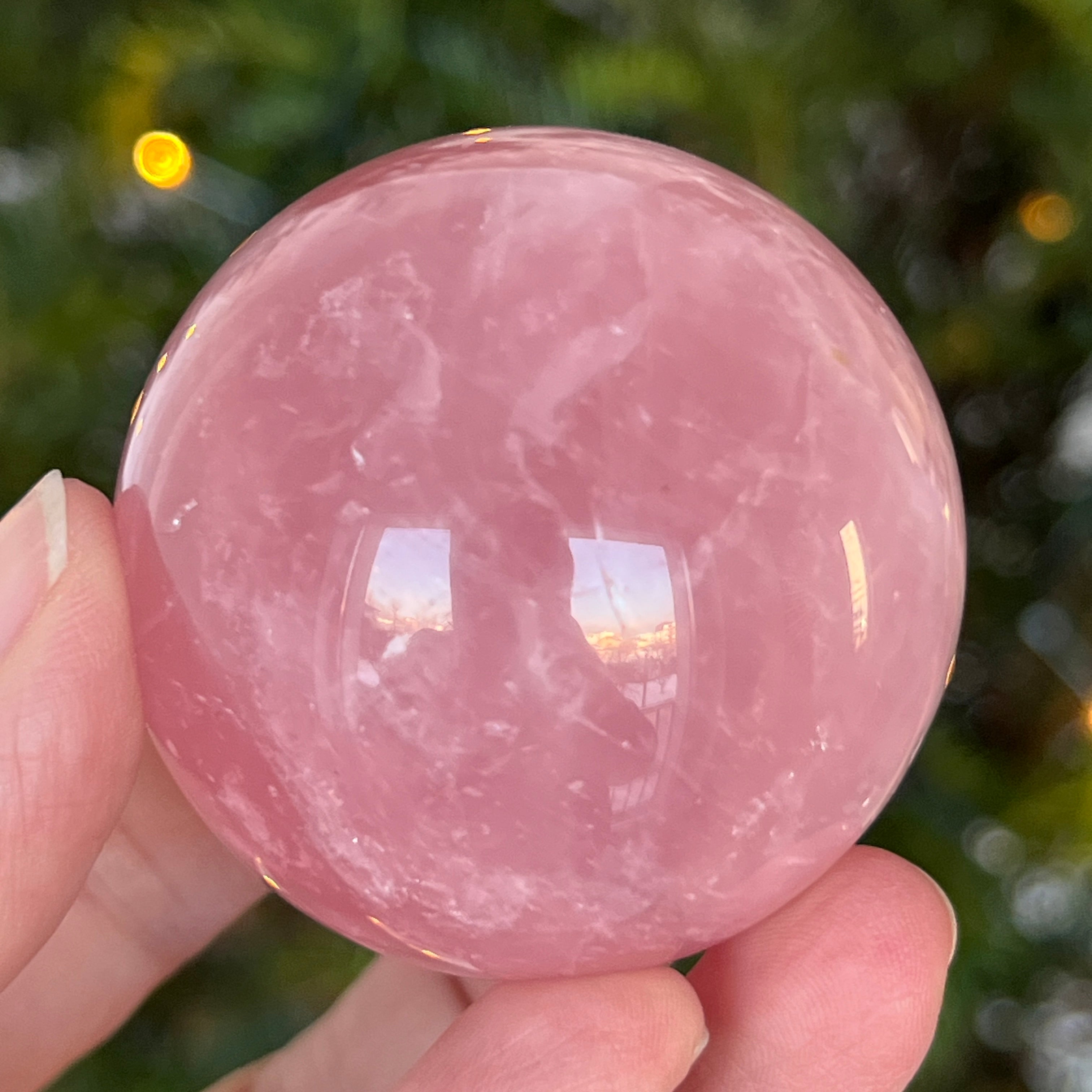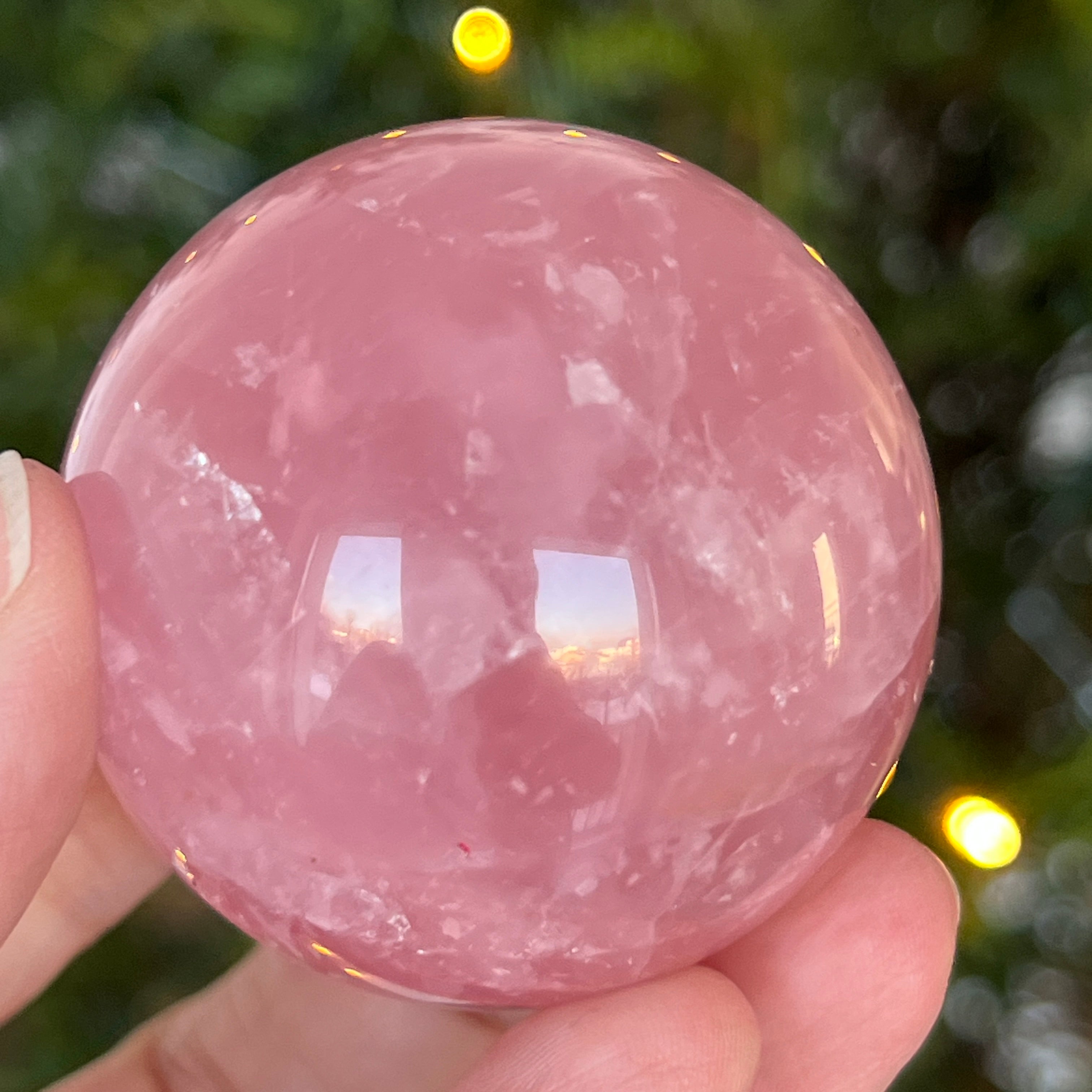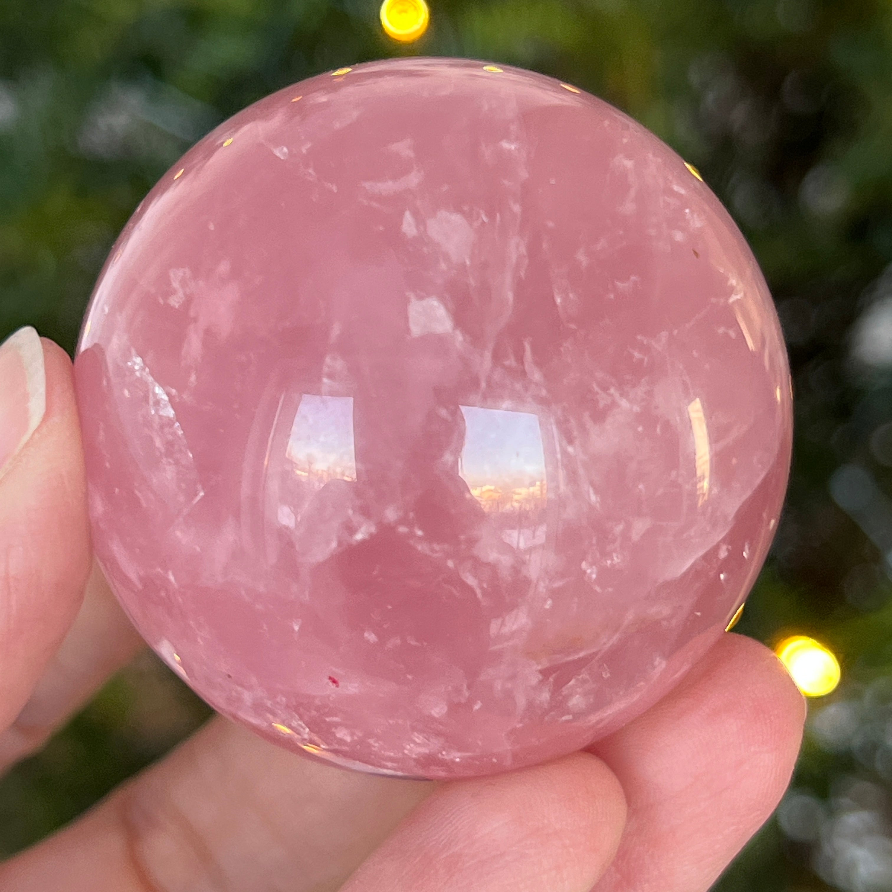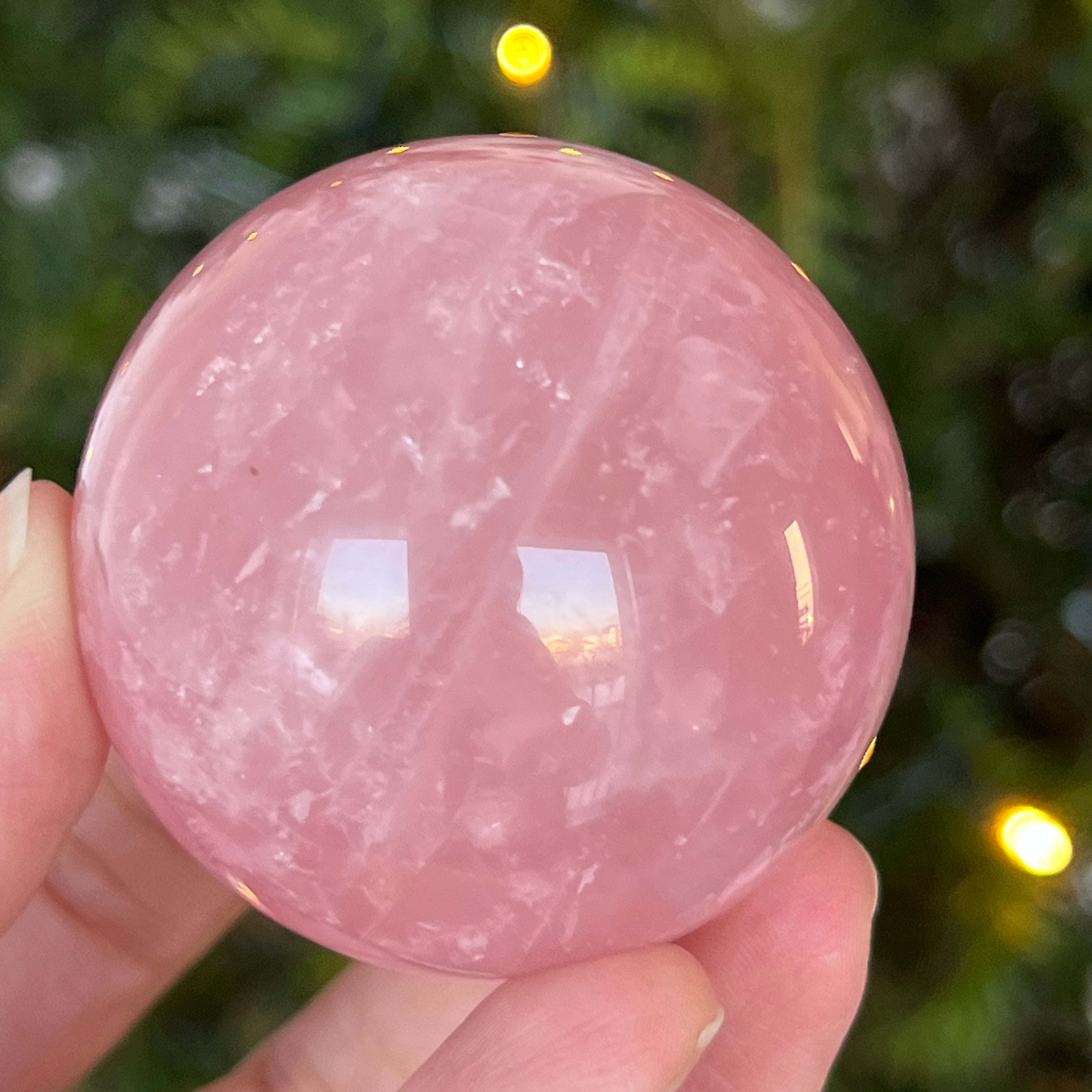 • Pierre : quartz rose naturel avec astérisme – sphère entièrement polie