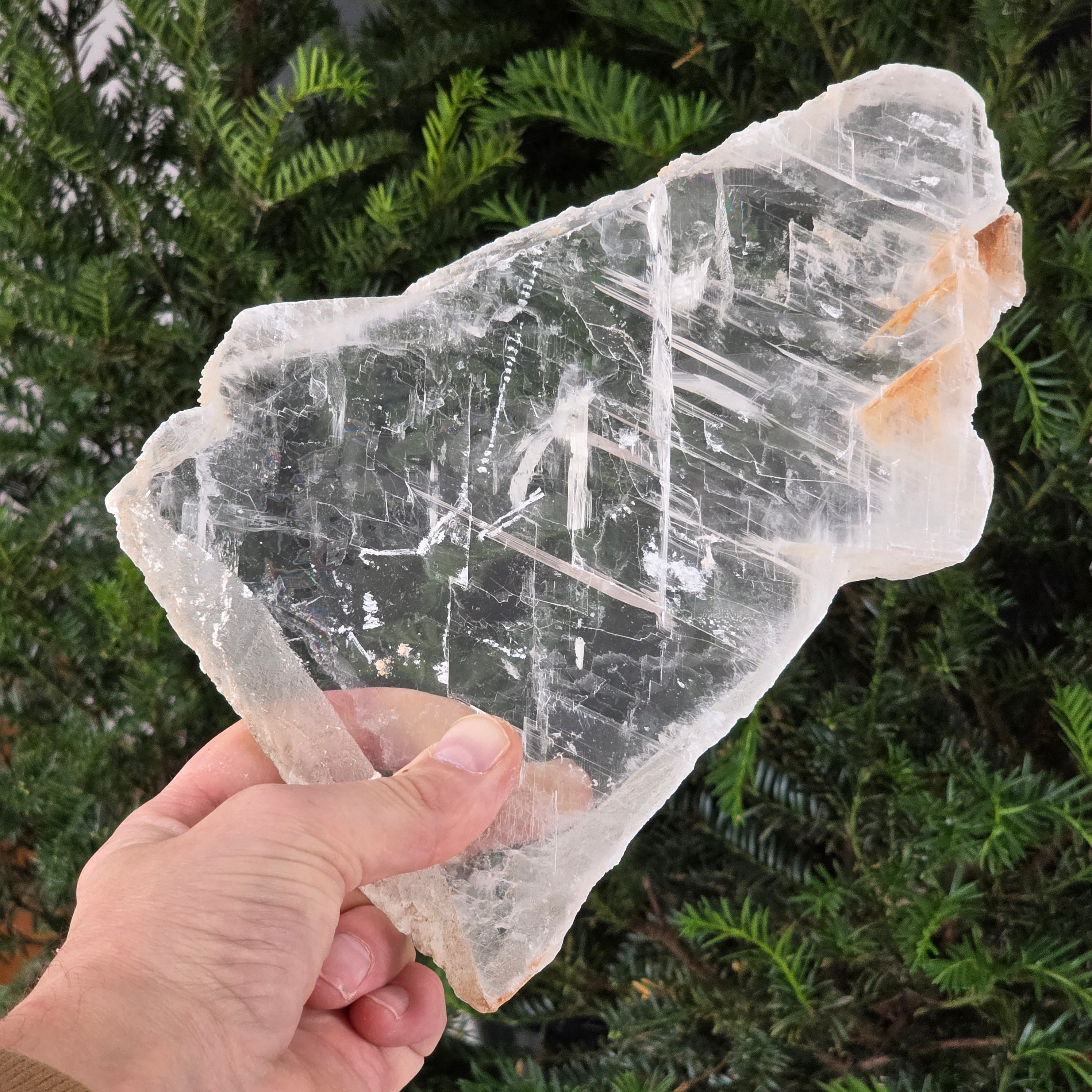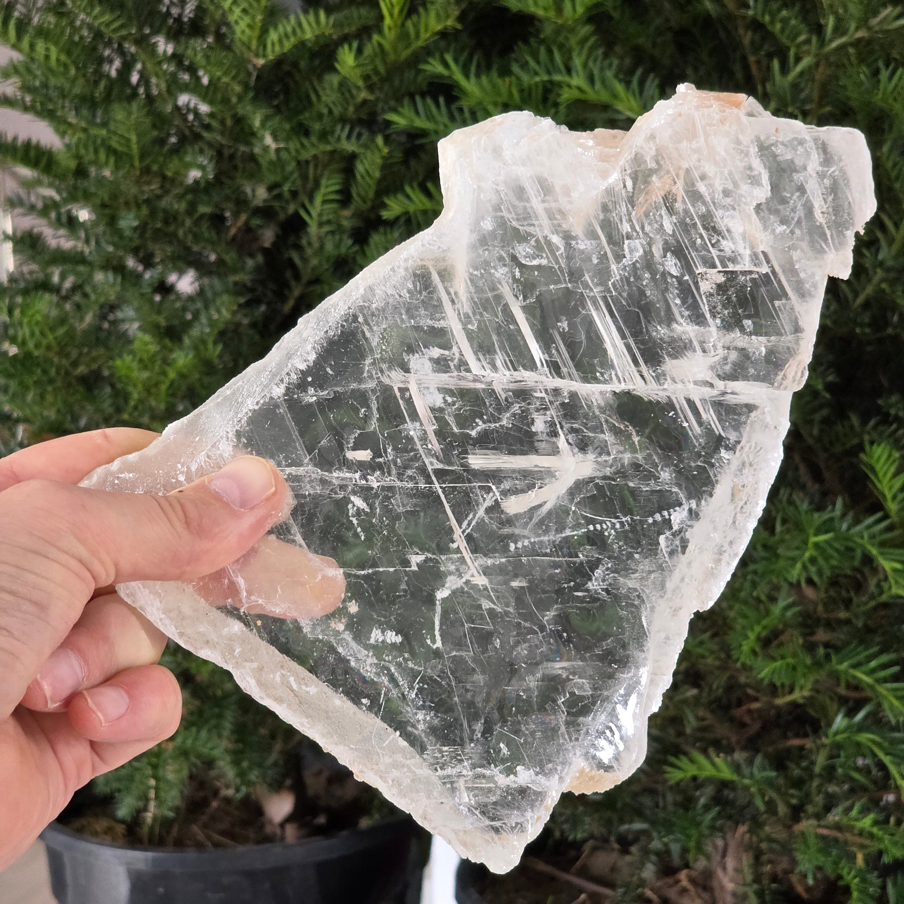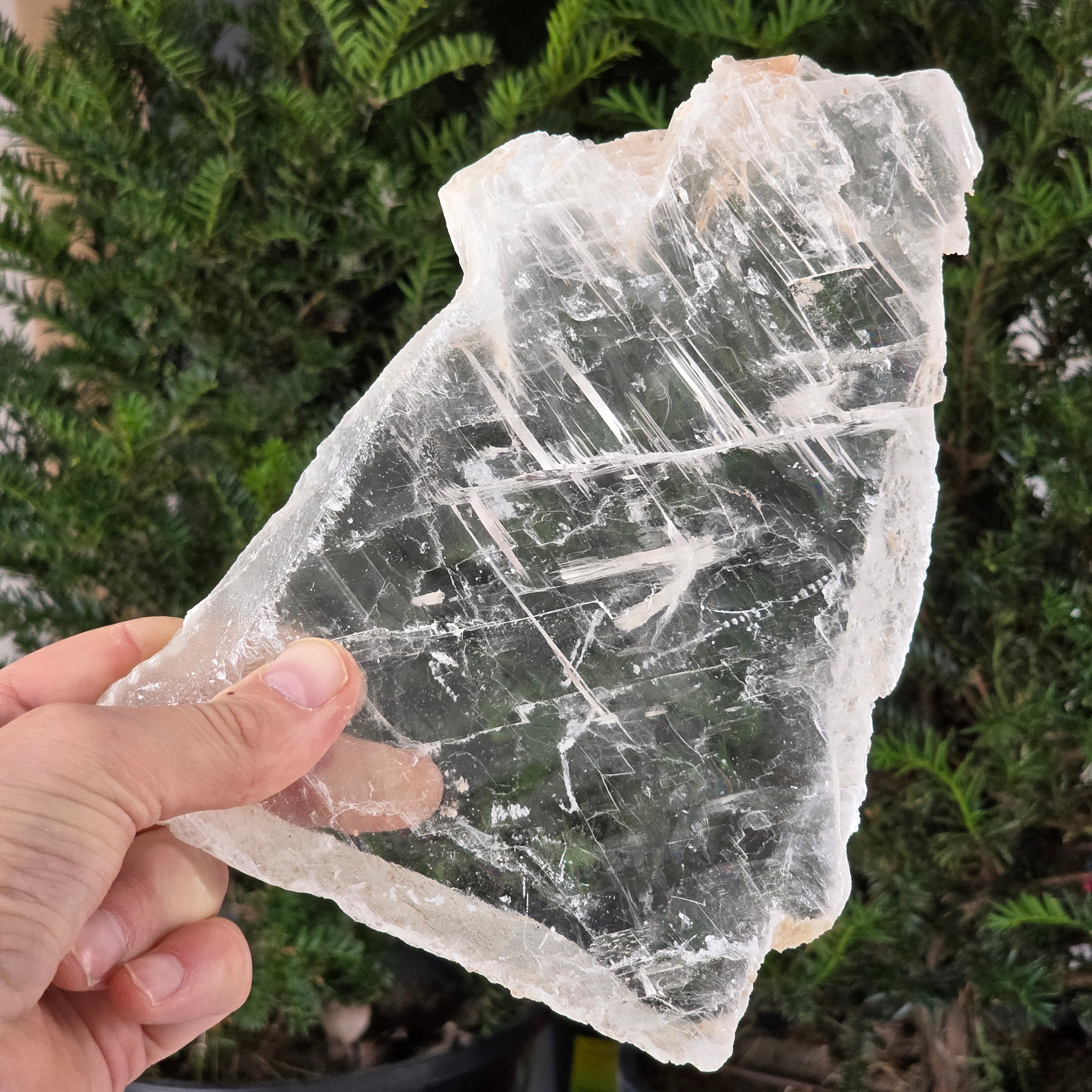 Această piatră brută de selenit sticlos pare desprinsă dintr-un fragment de lumină solidificată. Straturile sale translucide și reflexele diafane captează lumina într-un dans subtil, aducând senzația de puritate și pace.