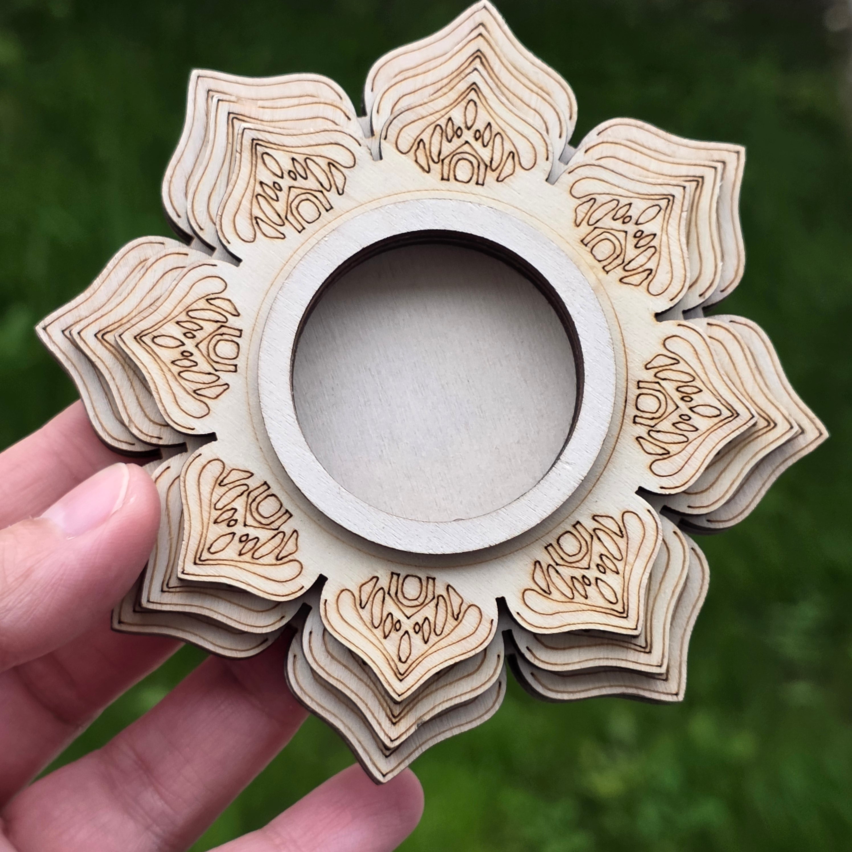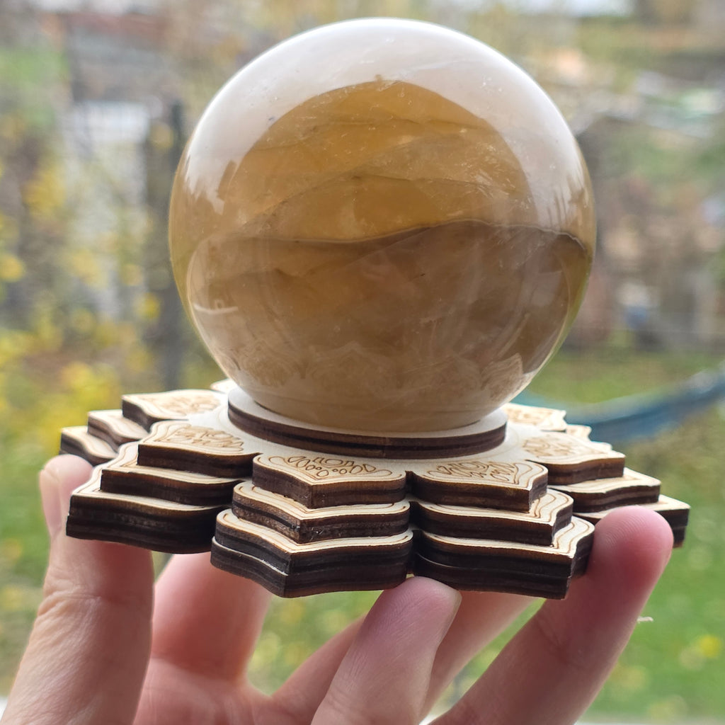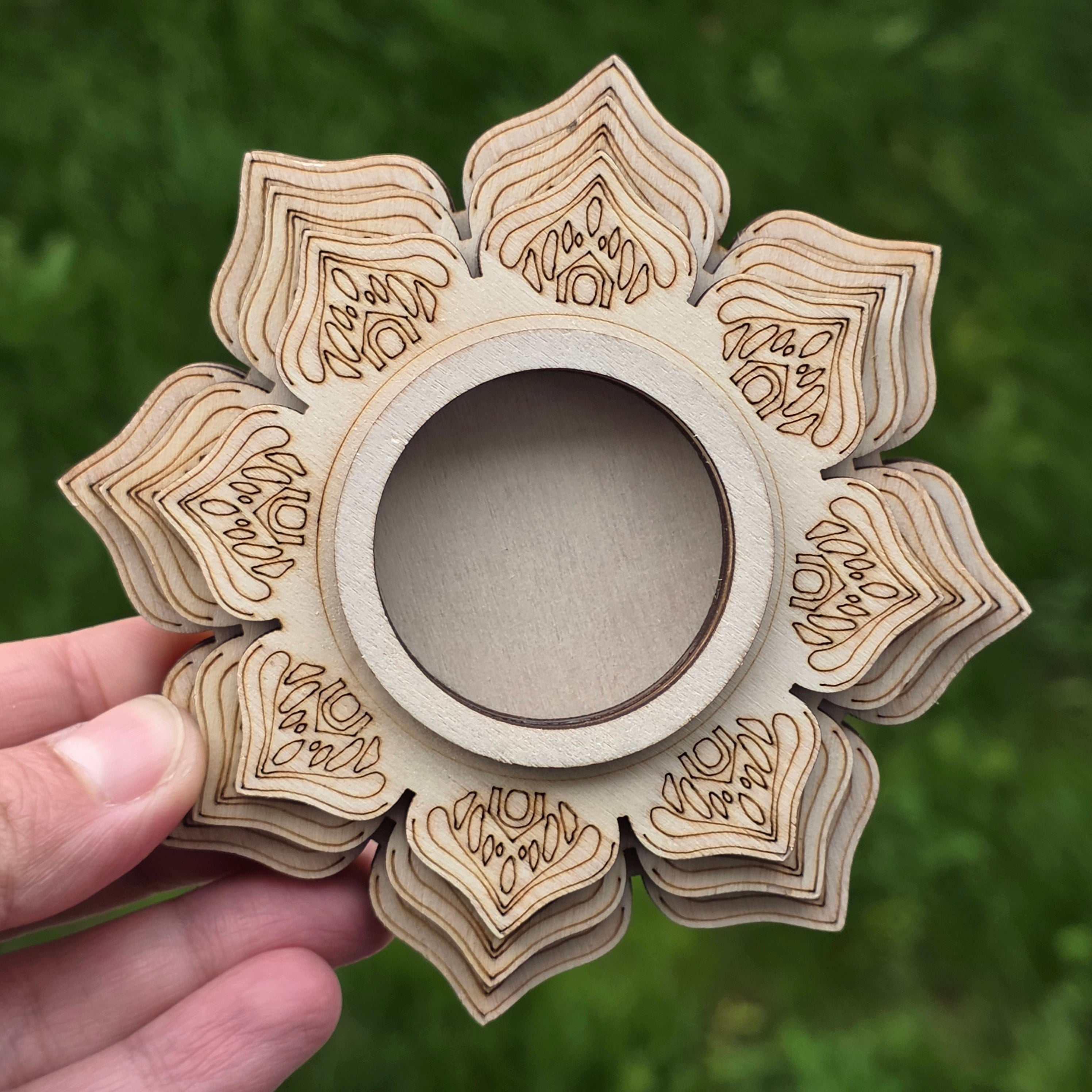 Suport din lemn Mandala pentru cristale și sfere